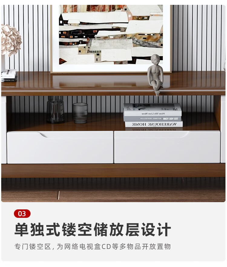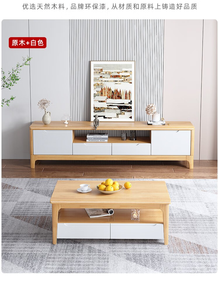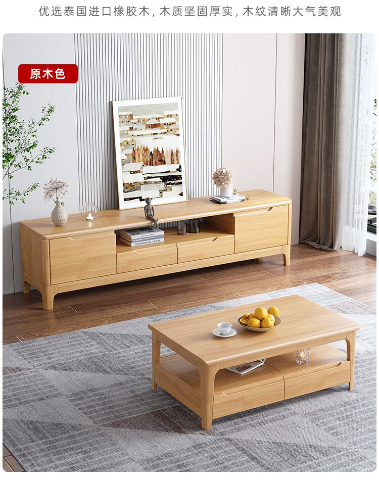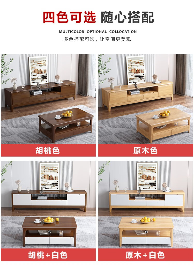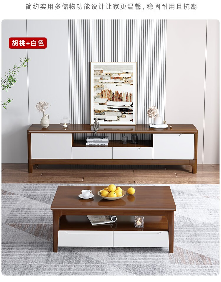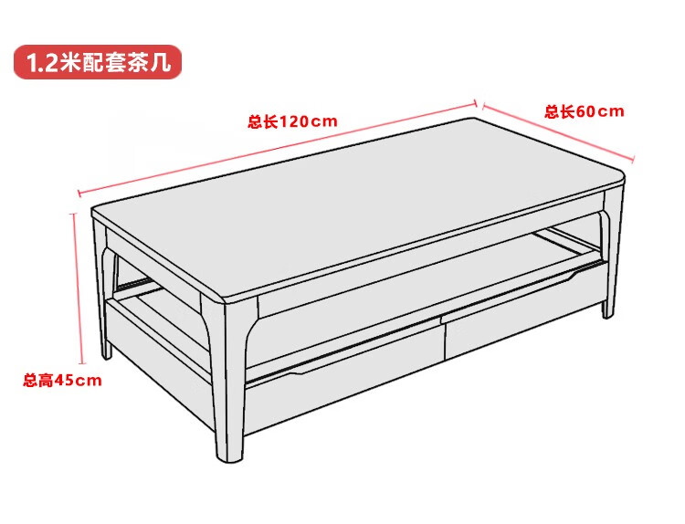 木尔雅全实木茶几电视柜客厅现代简约家用原木茶几带抽屉长方形小户型 全实木加厚120*60*45CM【四抽】胡桃色 【送货上门】专业师傅安装