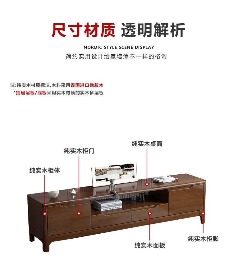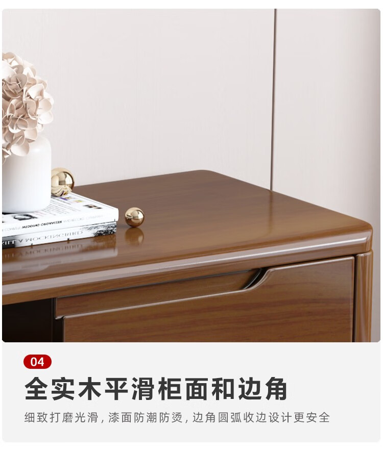 木尔雅全实木茶几电视柜客厅现代简约家用原木茶几带抽屉长方形小户型 全实木加厚100*50*45CM【四抽】胡桃色 【送货上门】自行安装