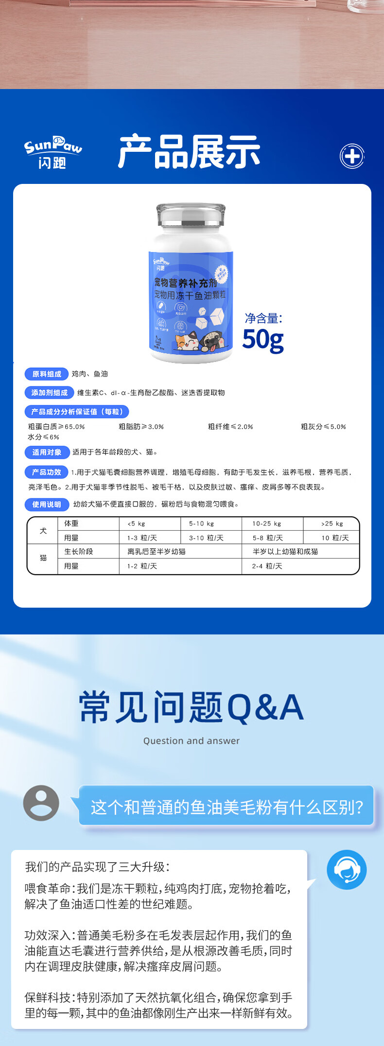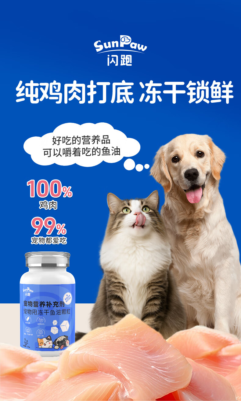 SunPaw冻干鱼油颗粒美毛护肤纯鸡肉适口性好猫狗通用营养补充剂 鱼油1+益生菌1+钙1(随机送1袋)