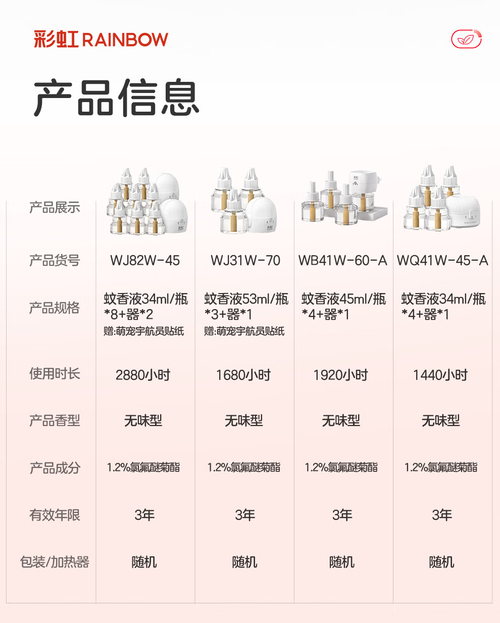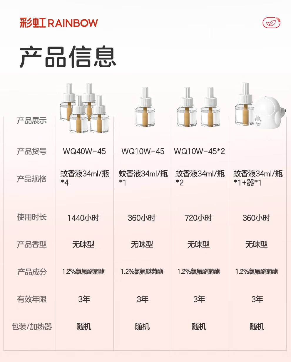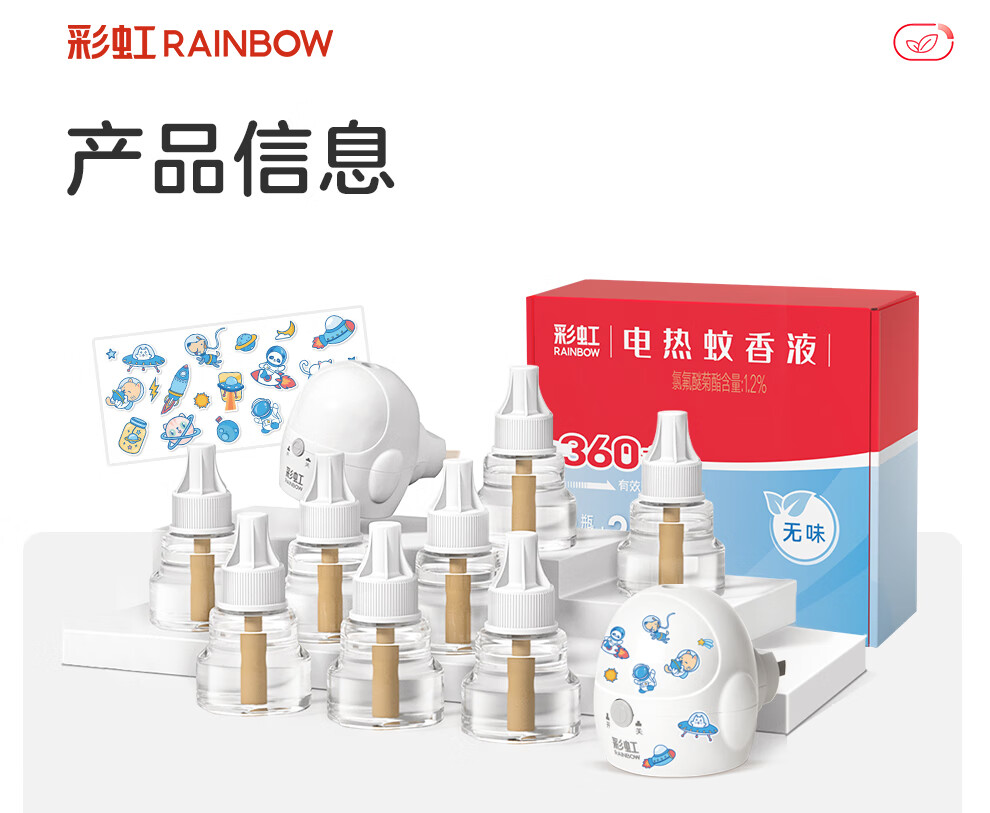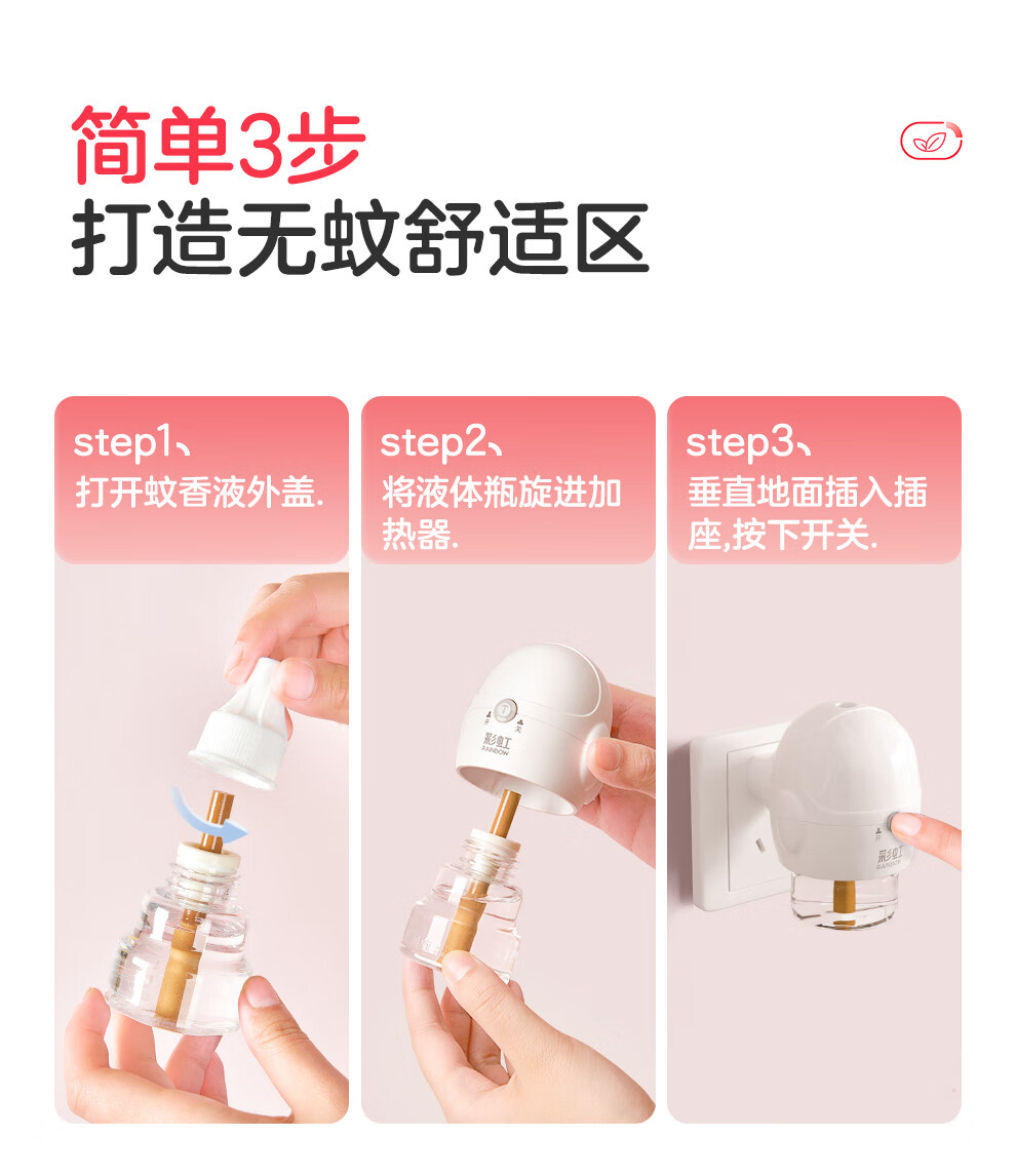 彩虹电热蚊香液(灭蚊液)套装无味驱蚊电蚊香液家用温和(灭蚊器) 34ml*4瓶+1器【可用180晚】
