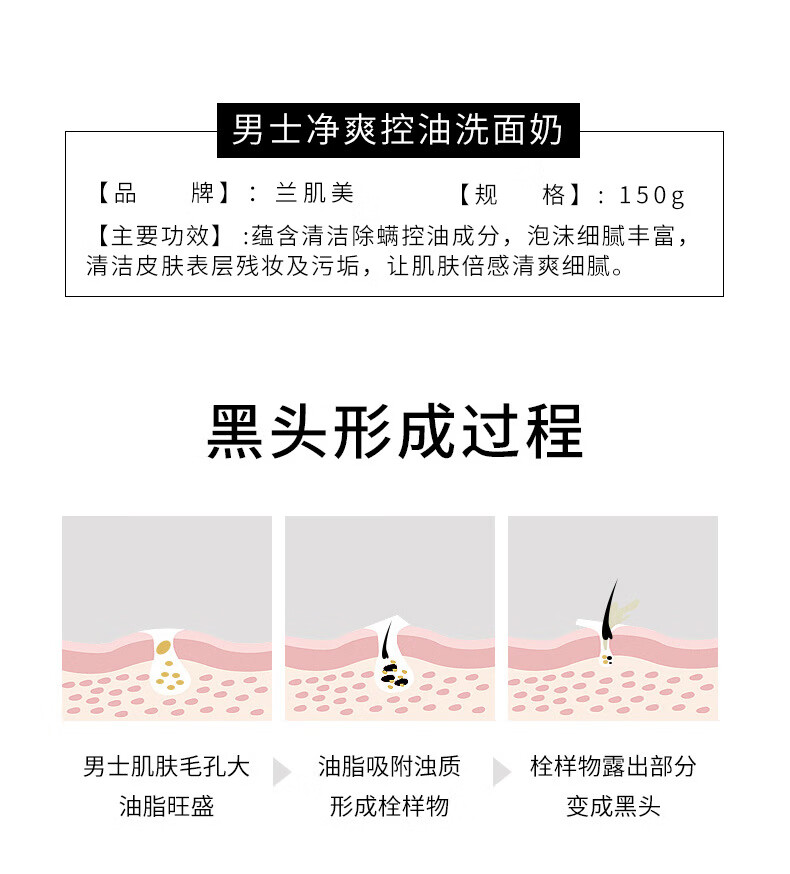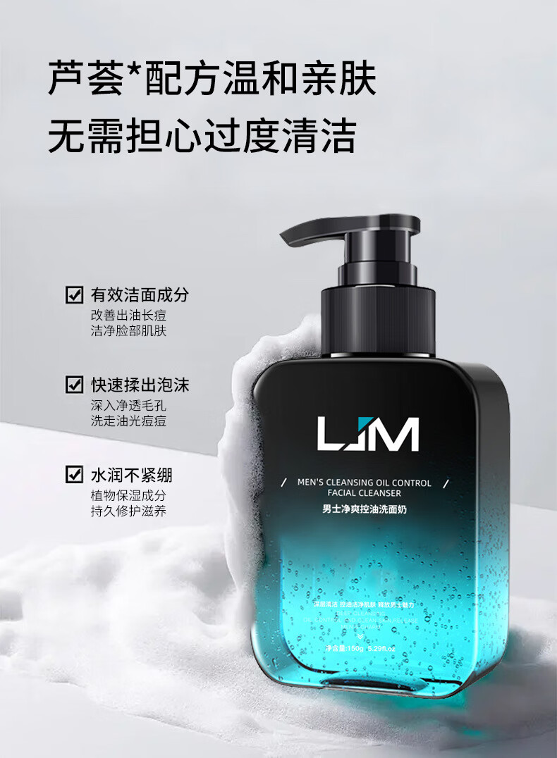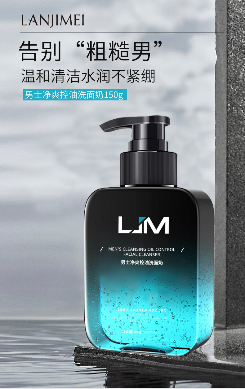 兰肌美48小时现货发支持密文清爽男士洗面奶清洁保湿洁面乳 男士净爽控油洗面奶 150g