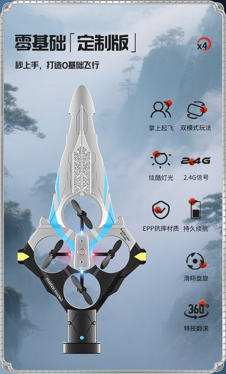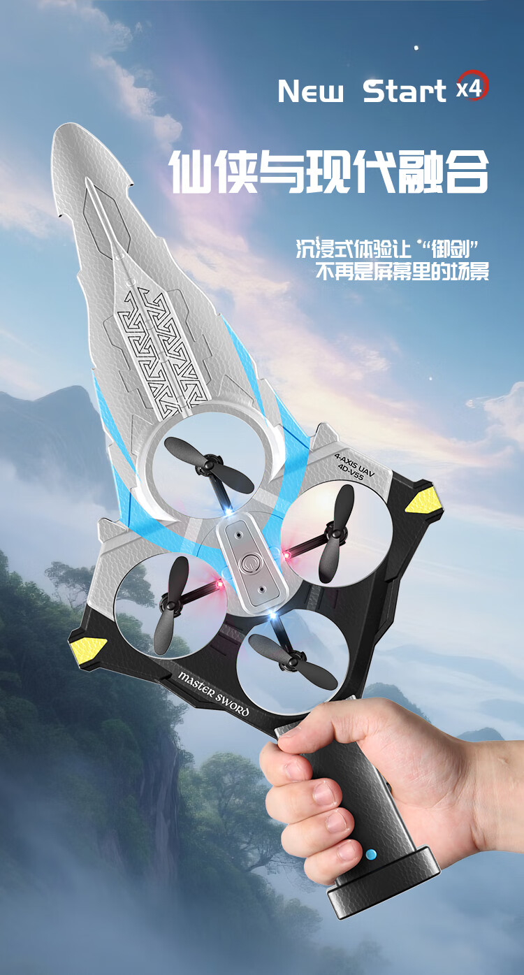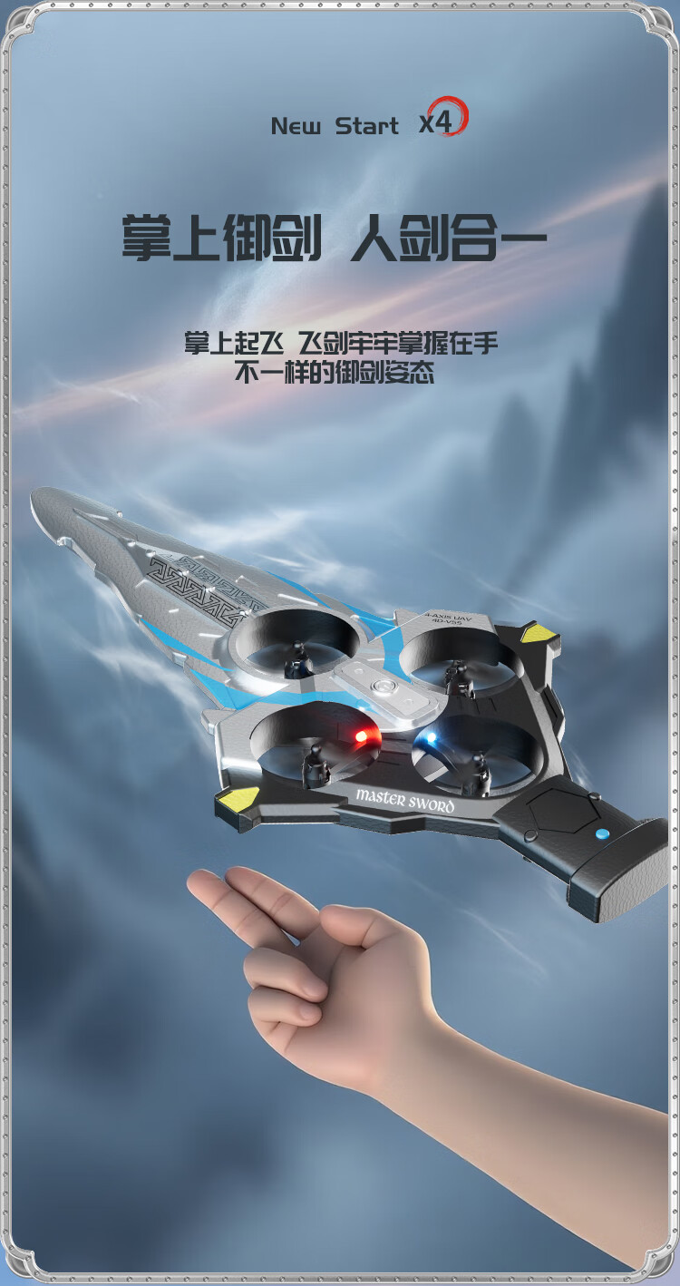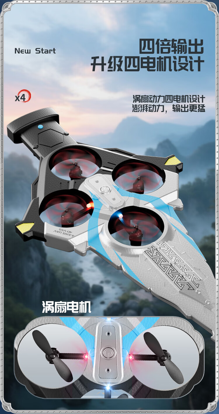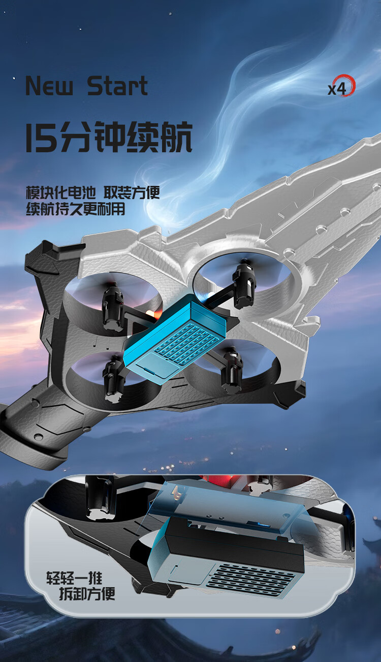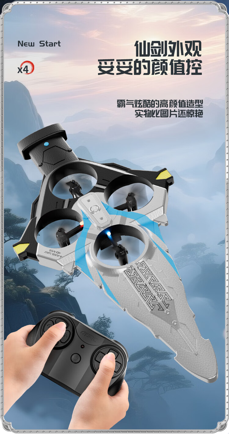 4DRC耐摔遥控飞机飞剑航模飞行器四旋翼电机无人机男孩飞行生日礼物 御剑飞行-蓝【双电】