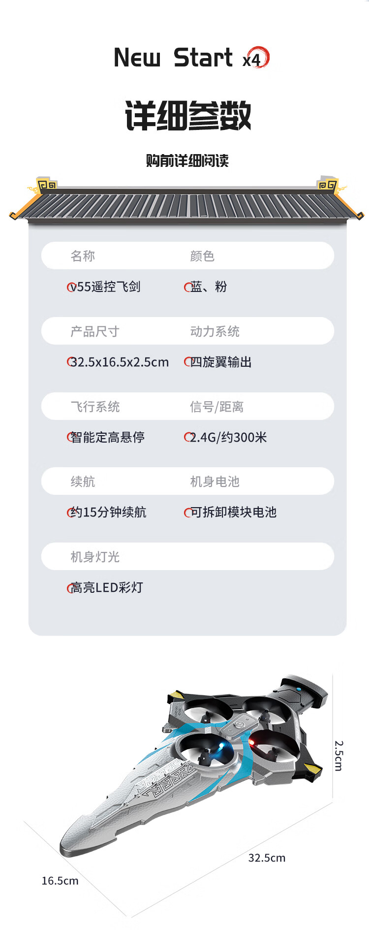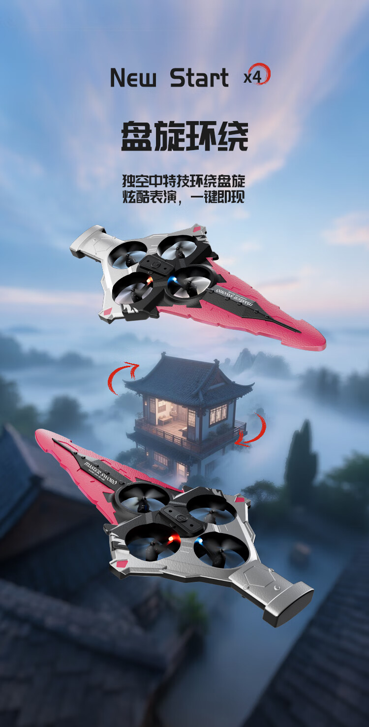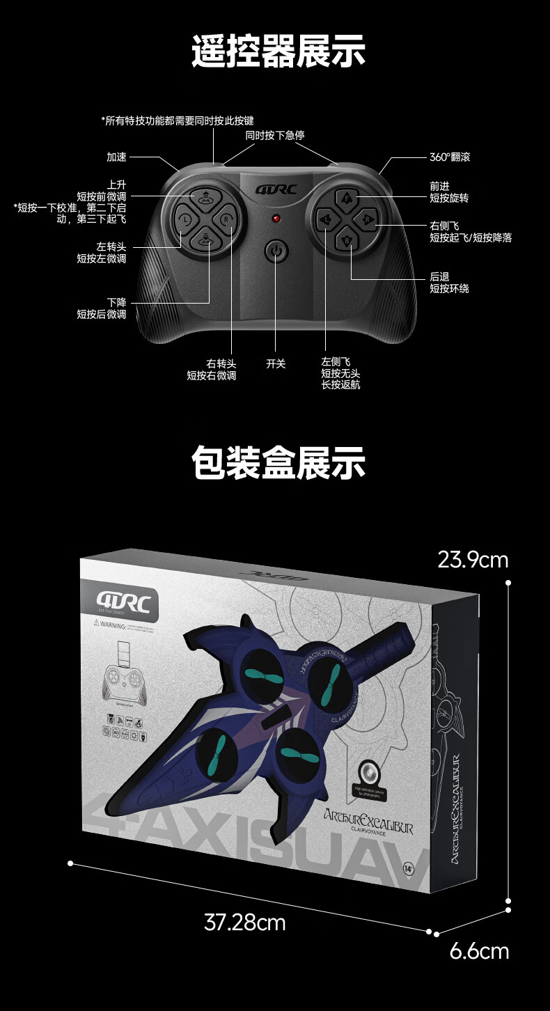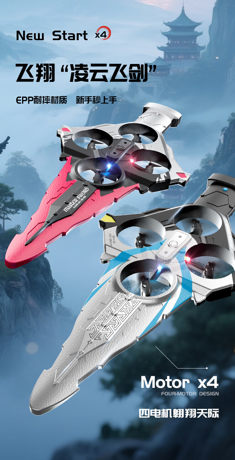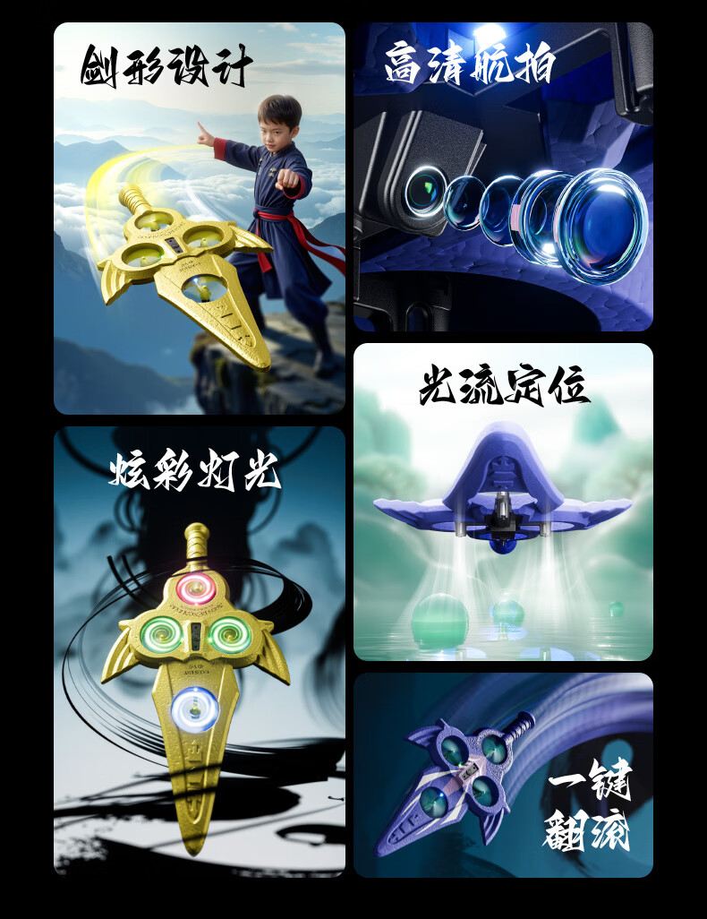 4DRC耐摔遥控飞机飞剑航模飞行器四旋翼电机无人机男孩飞行生日礼物 御剑飞行-蓝【双电】