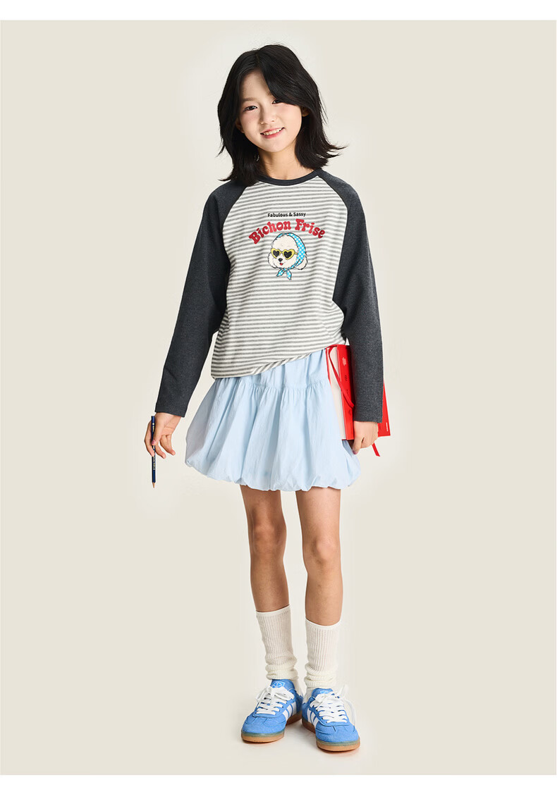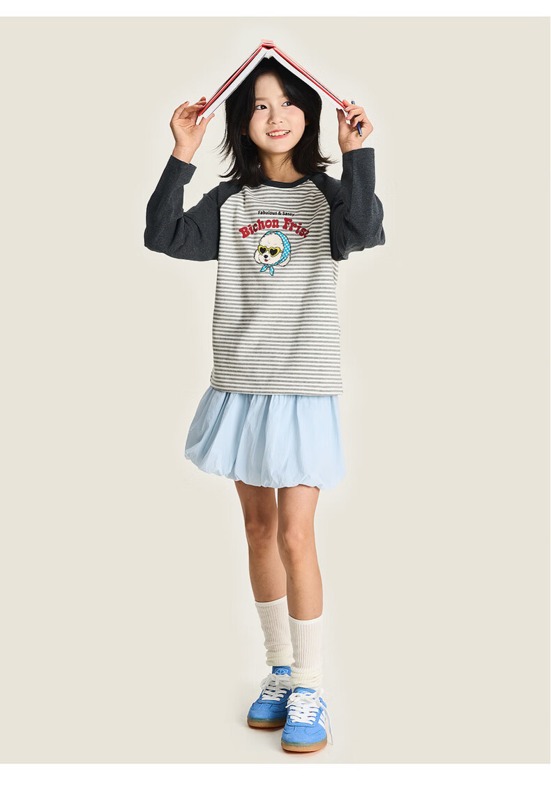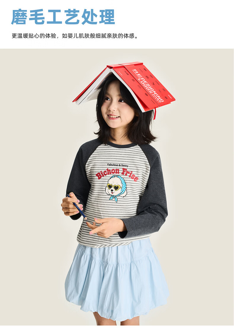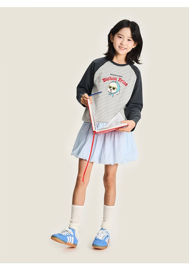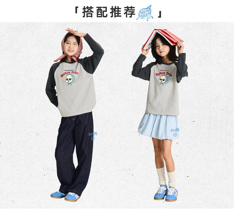 棉叔叔【新品长袖T恤】棉叔叔女童2026春季条纹撞色印花长袖T恤男童3.18 花黑条纹 120 120