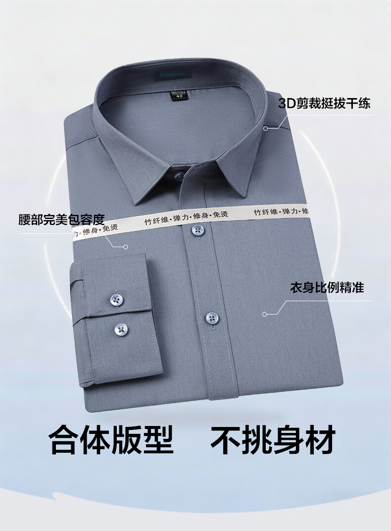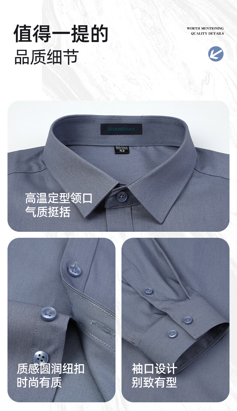 SHANSHAN杉杉【200DP免烫】衬衫男长袖春季高端舒适纯棉正装打底上衣 白色 40