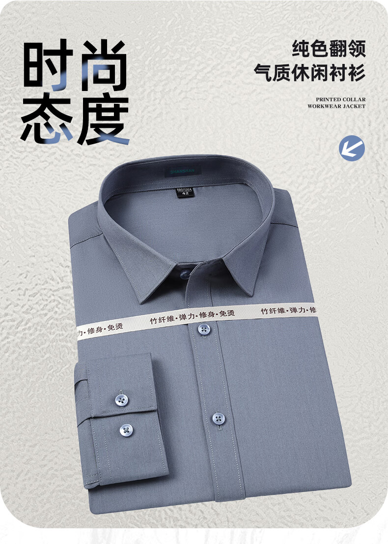 SHANSHAN杉杉【200DP免烫】衬衫男长袖春季高端舒适纯棉正装打底上衣 白色 38