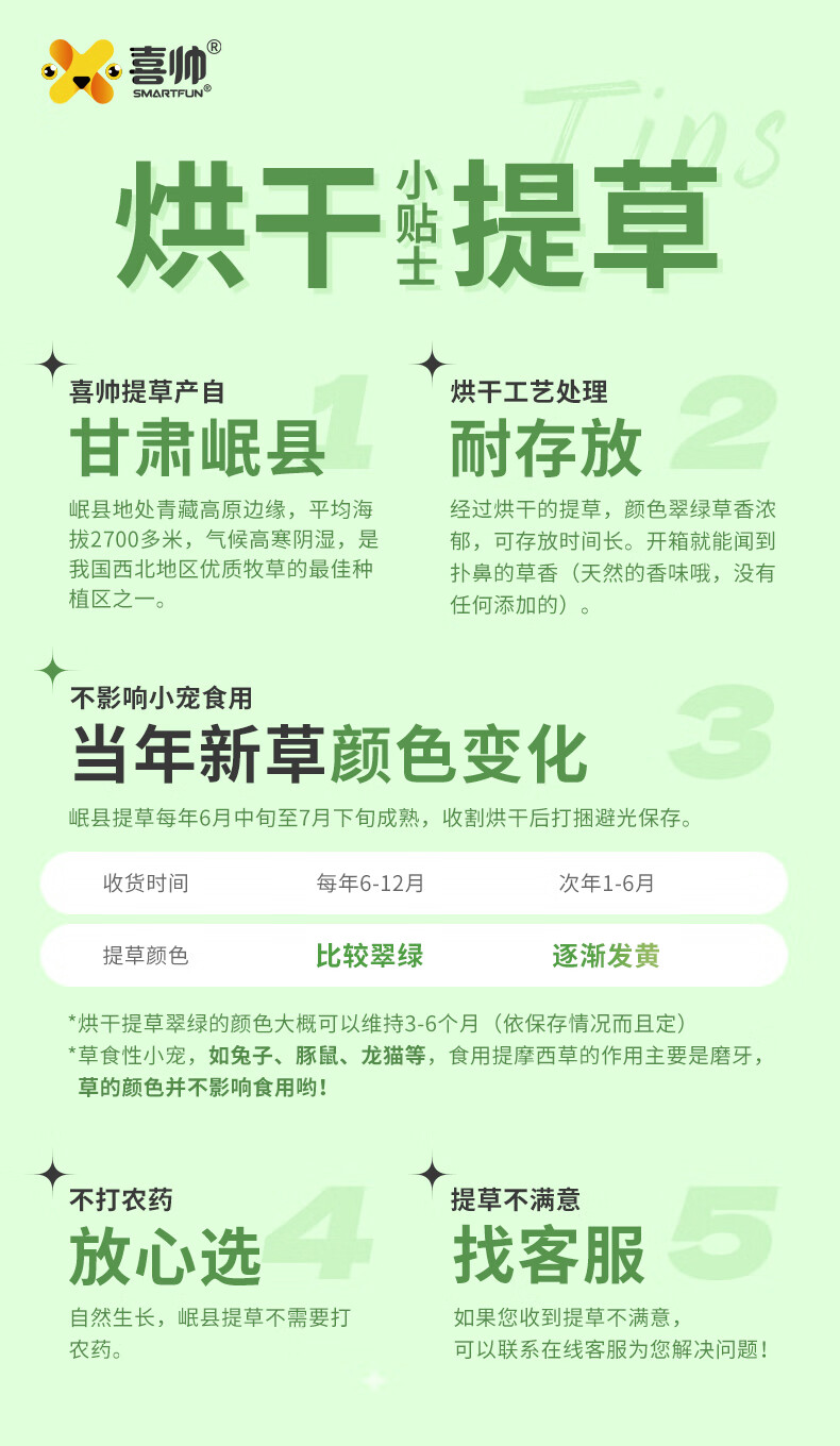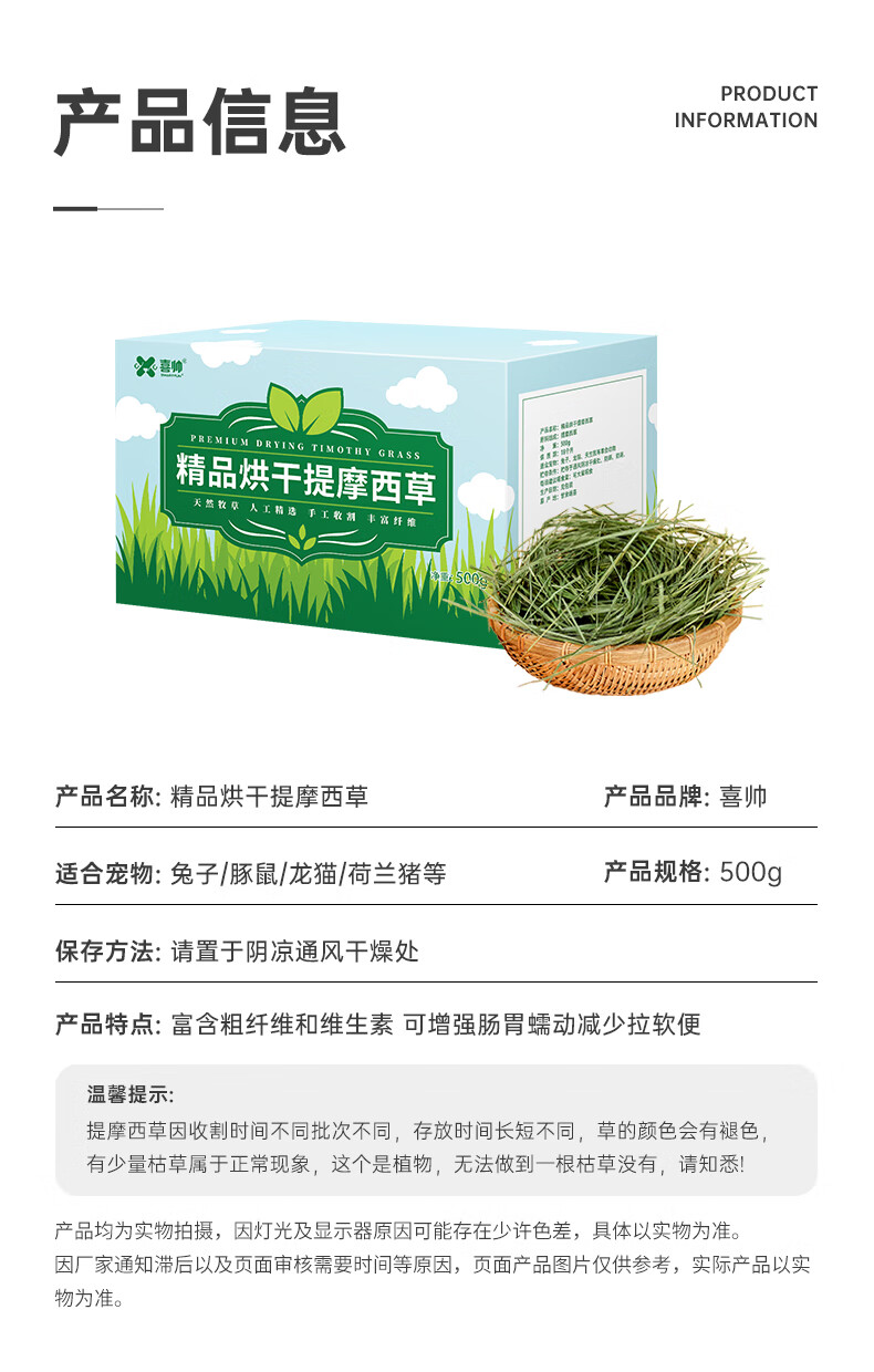 喜帅 精品烘干提摩西草500g 提草荷兰猪龙猫兔子磨牙牧草兔粮
