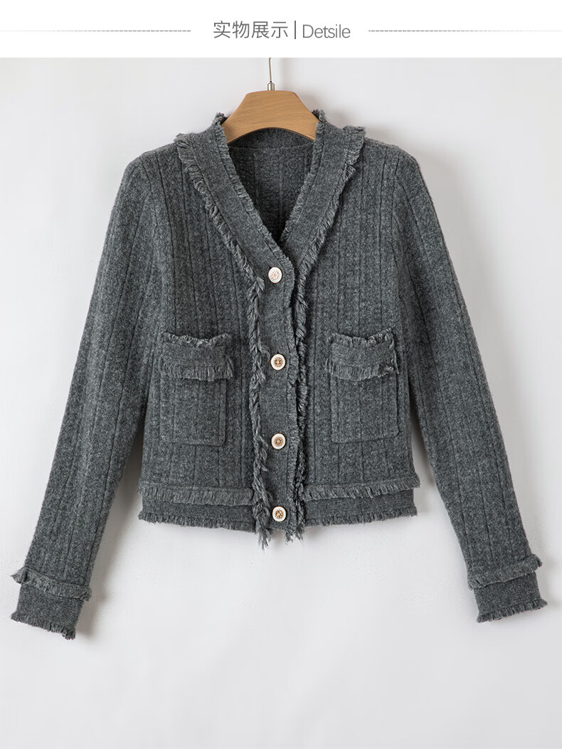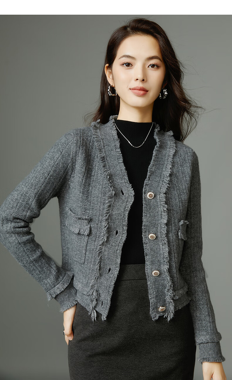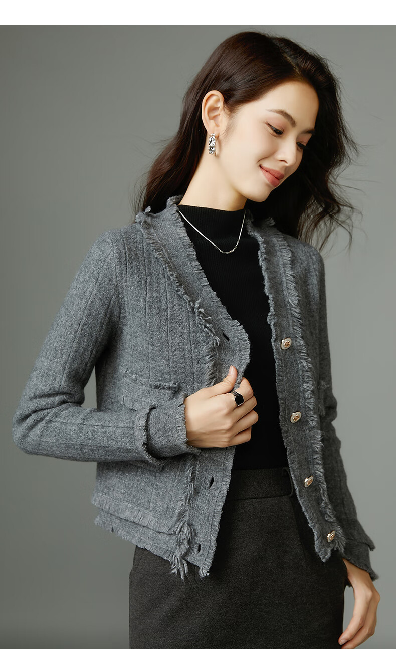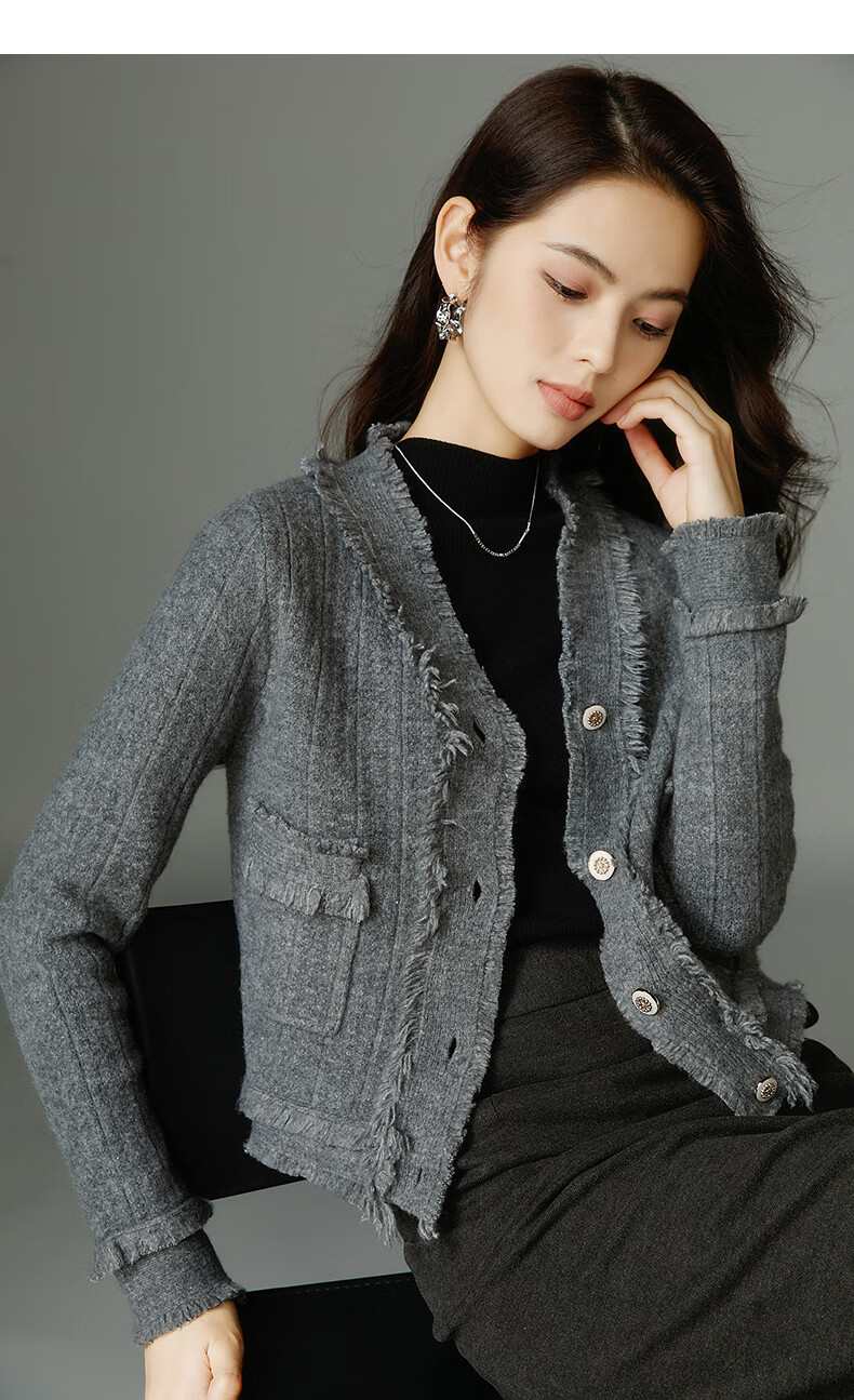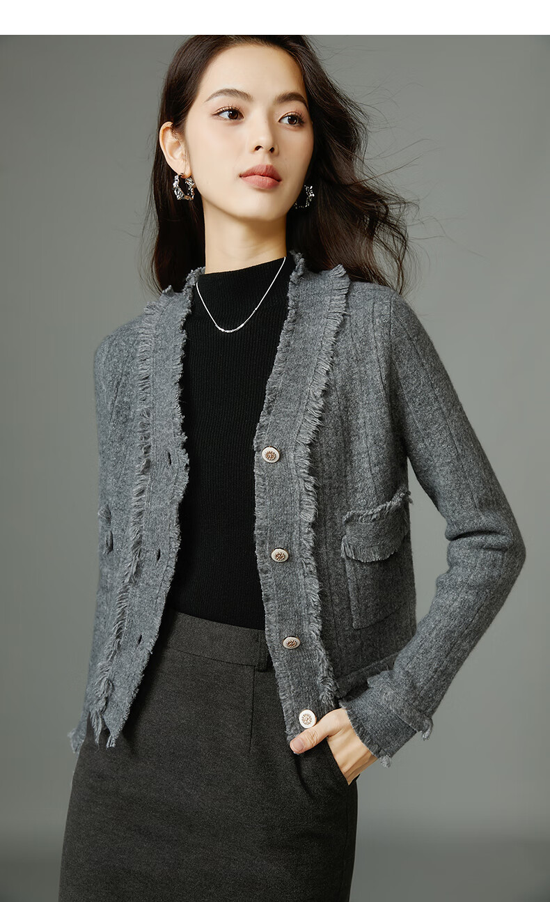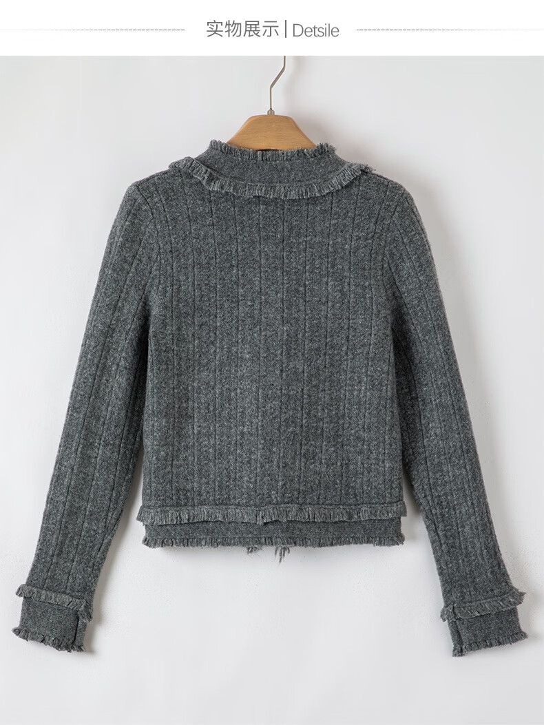晚白【断码清仓】2026春款时尚气质上衣百搭纯色休闲含羊毛针织衫女 灰色 S