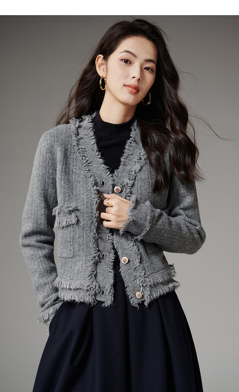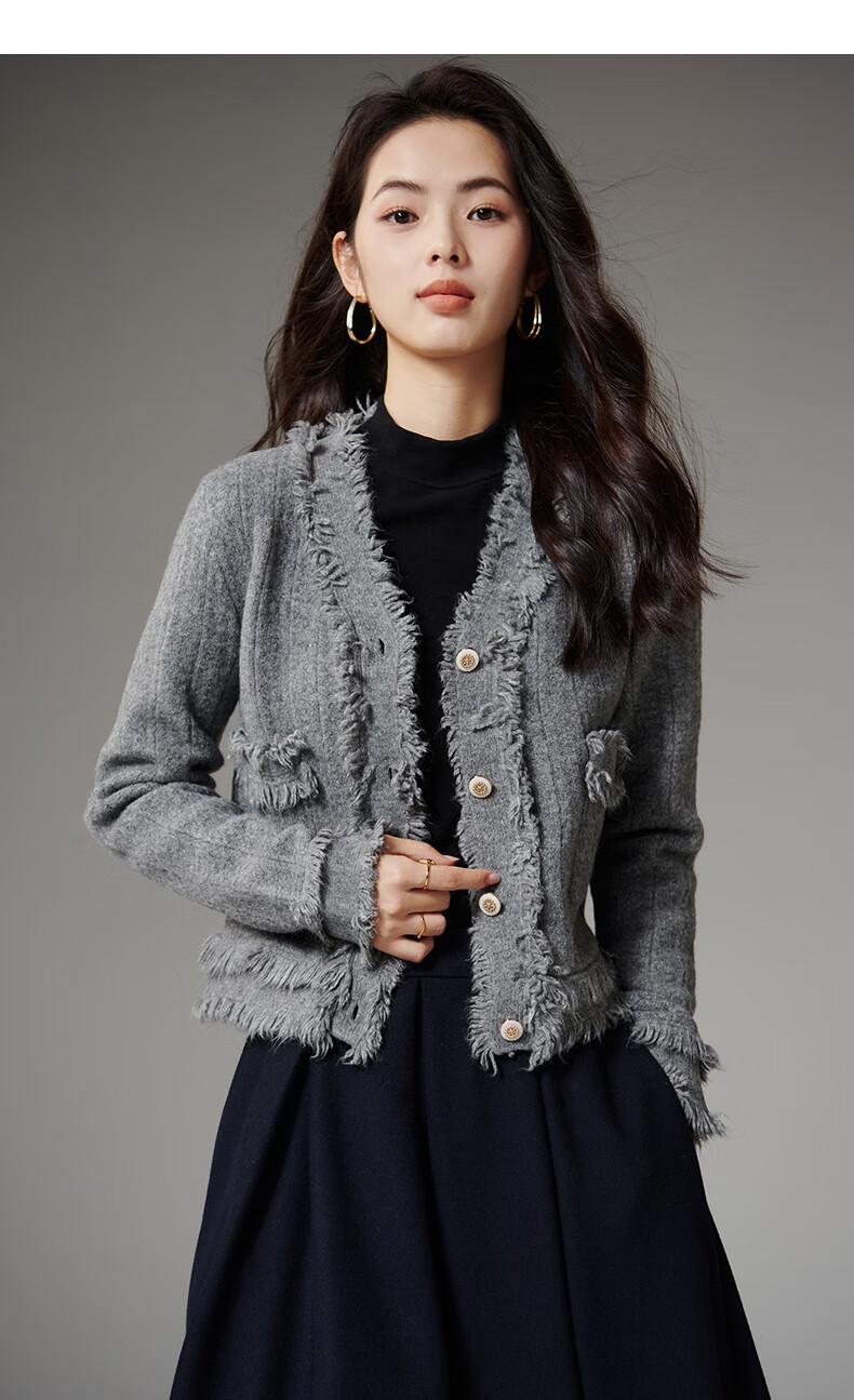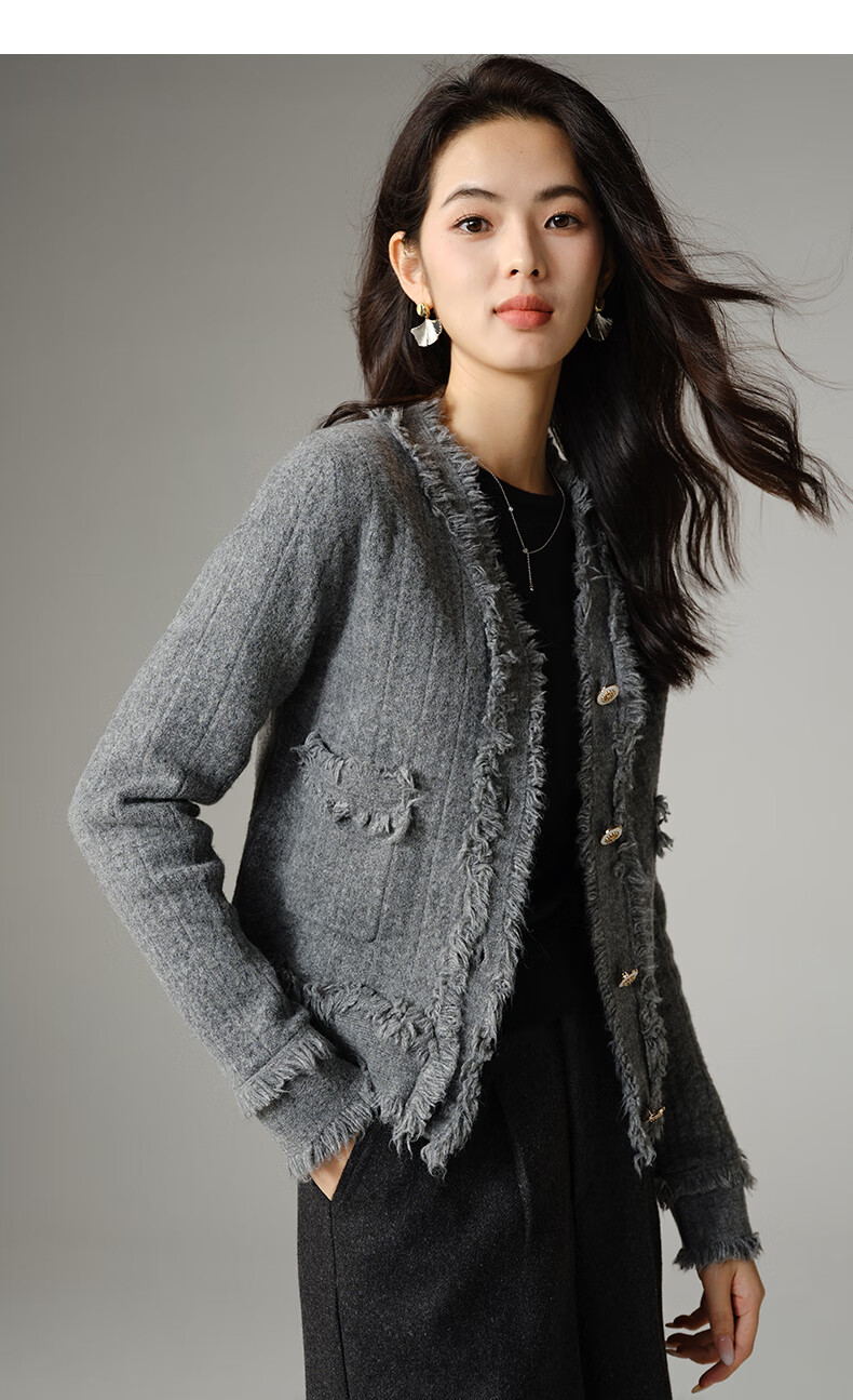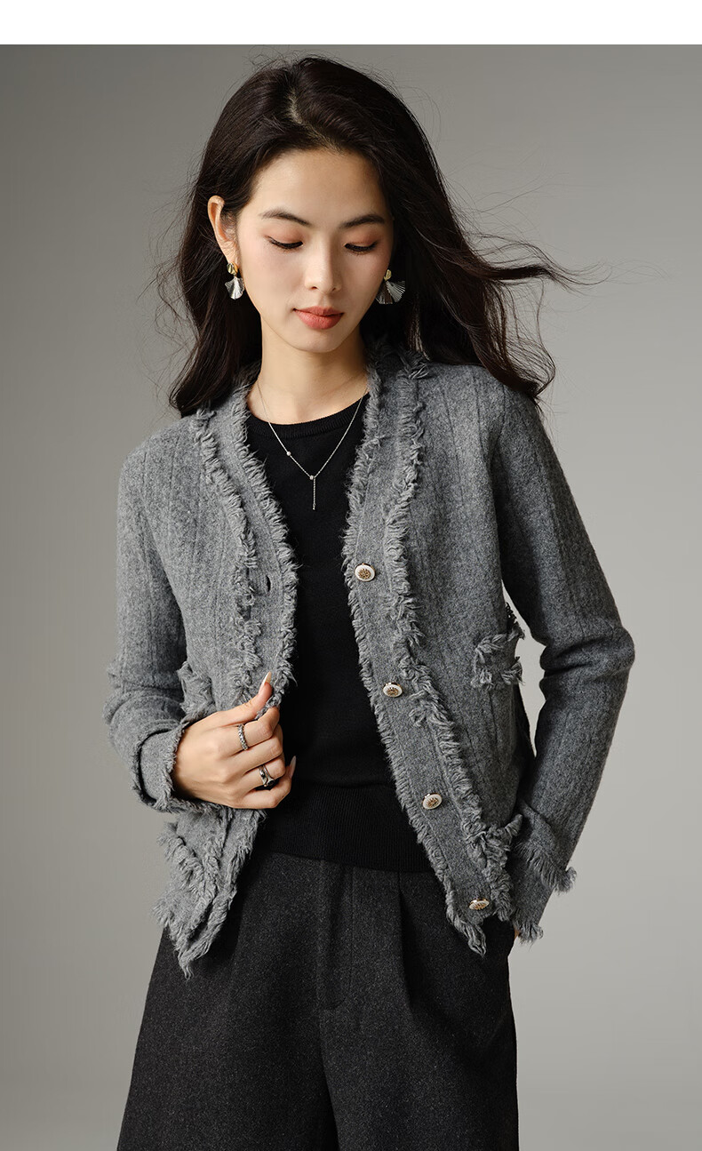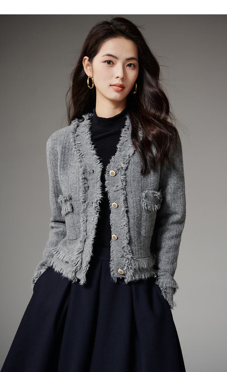 晚白【断码清仓】2026春款时尚气质上衣百搭纯色休闲含羊毛针织衫女 灰色 S