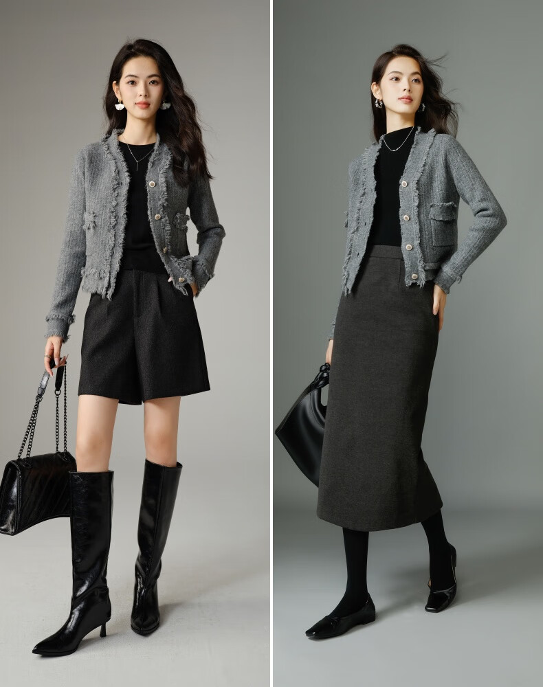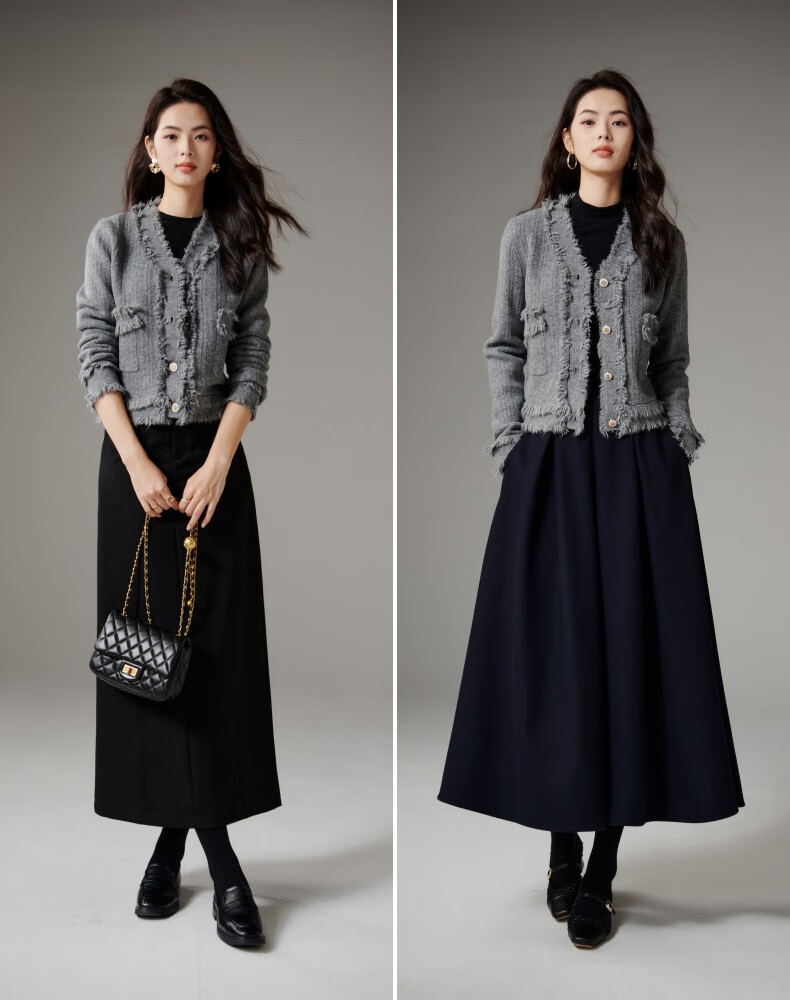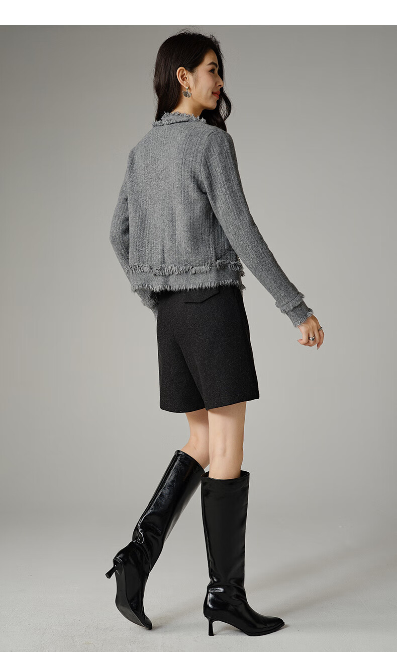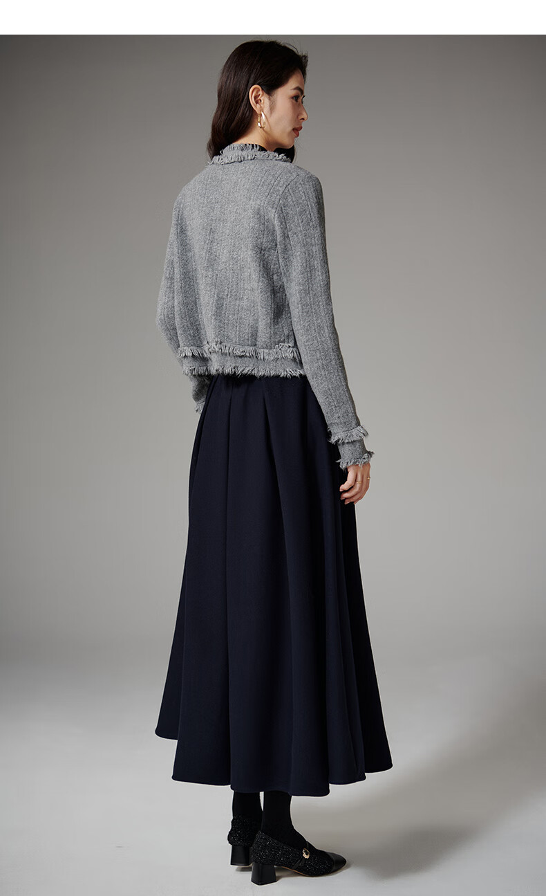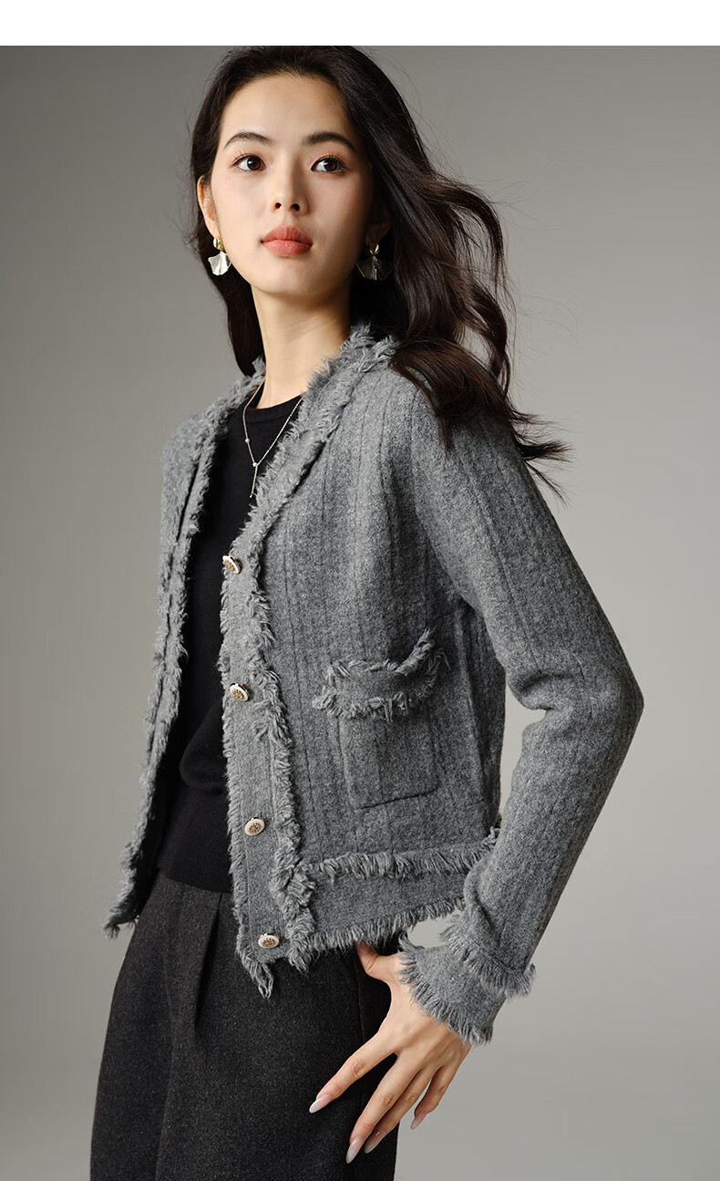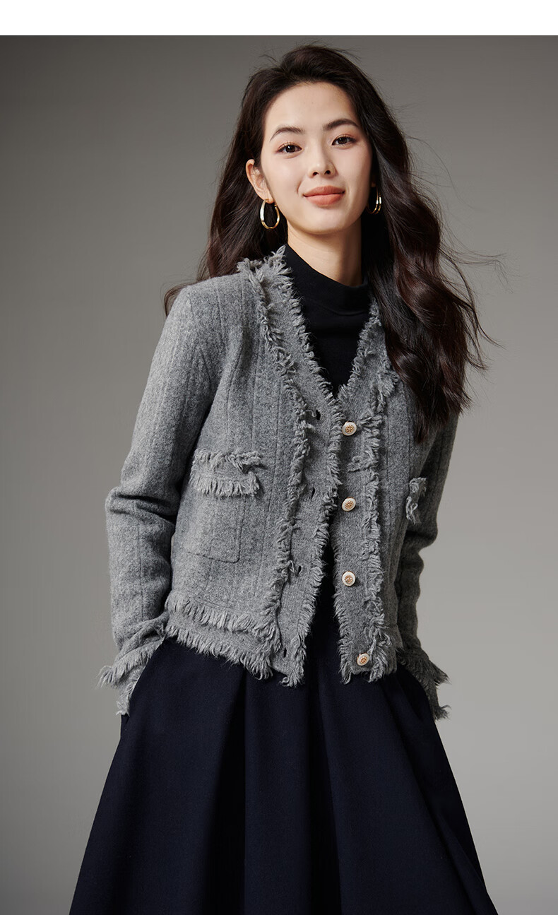 晚白【断码清仓】2026春款时尚气质上衣百搭纯色休闲含羊毛针织衫女 灰色 S