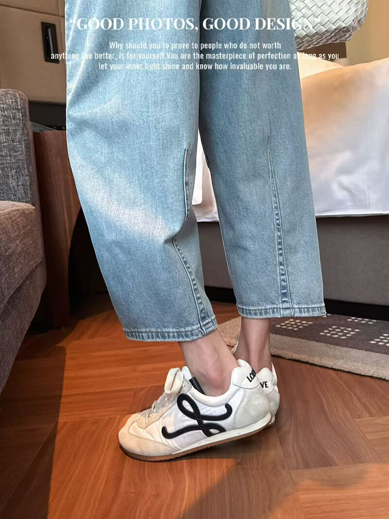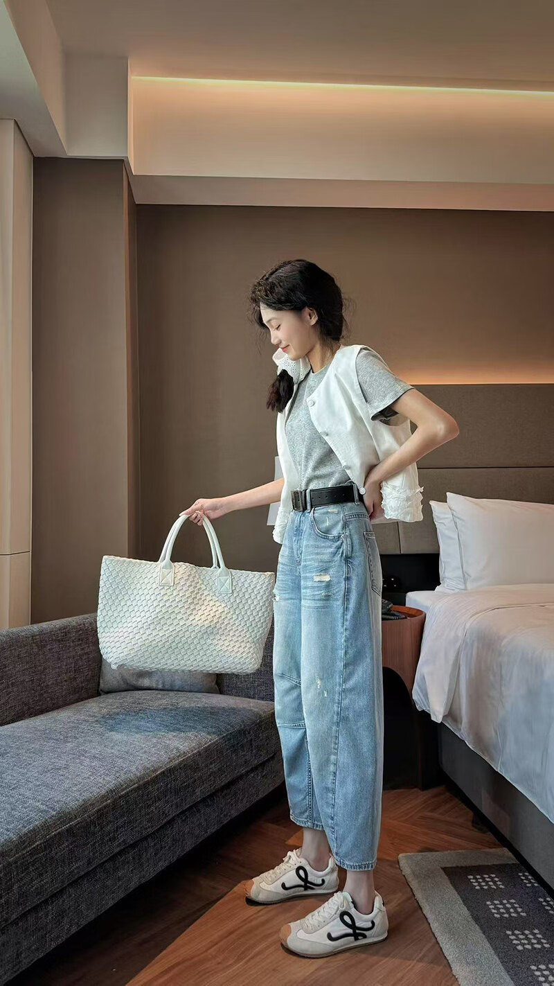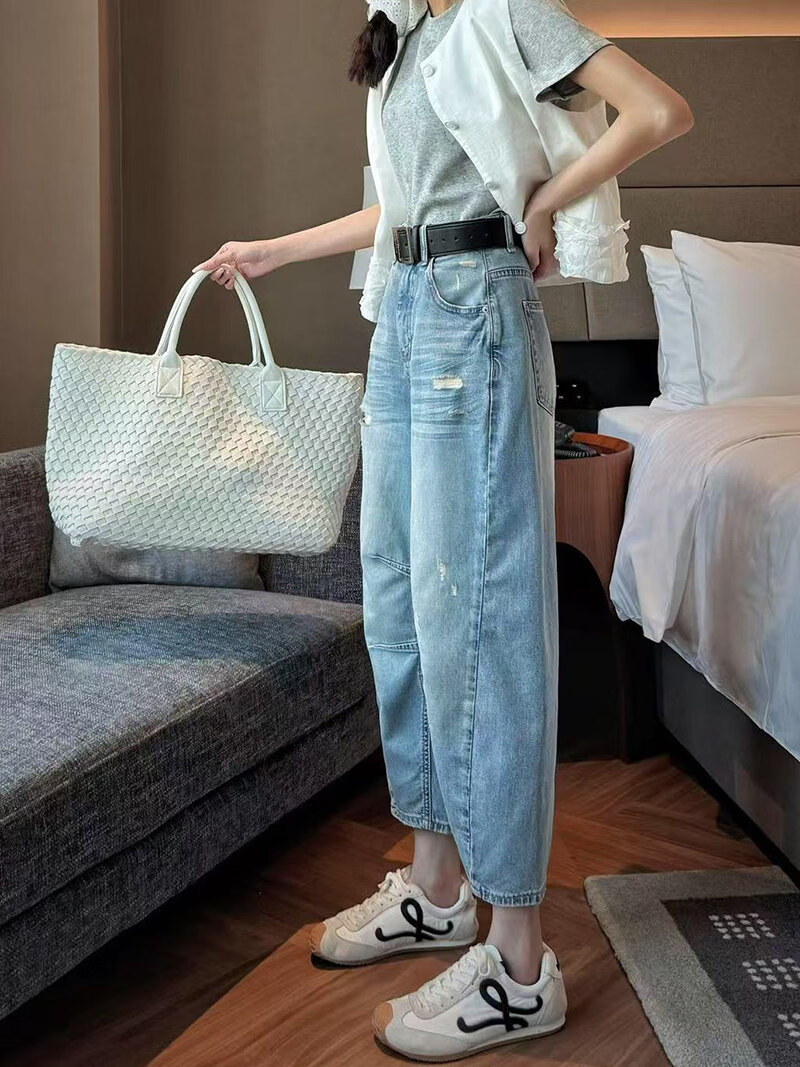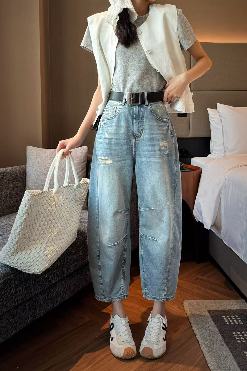 MODX2026夏季纤细的欧洲弯刀女士牛仔裤娇小的八分之一裤阔腿裤后宫裤 浅蓝色 26 90-105斤