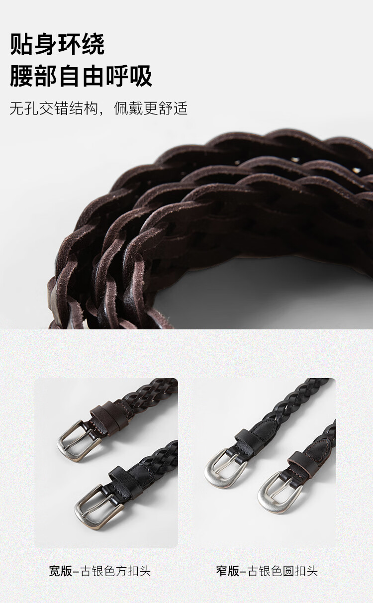 小个子手工编织休闲牛皮腰带女2026年春季新品 谧黑色宽版 107cm