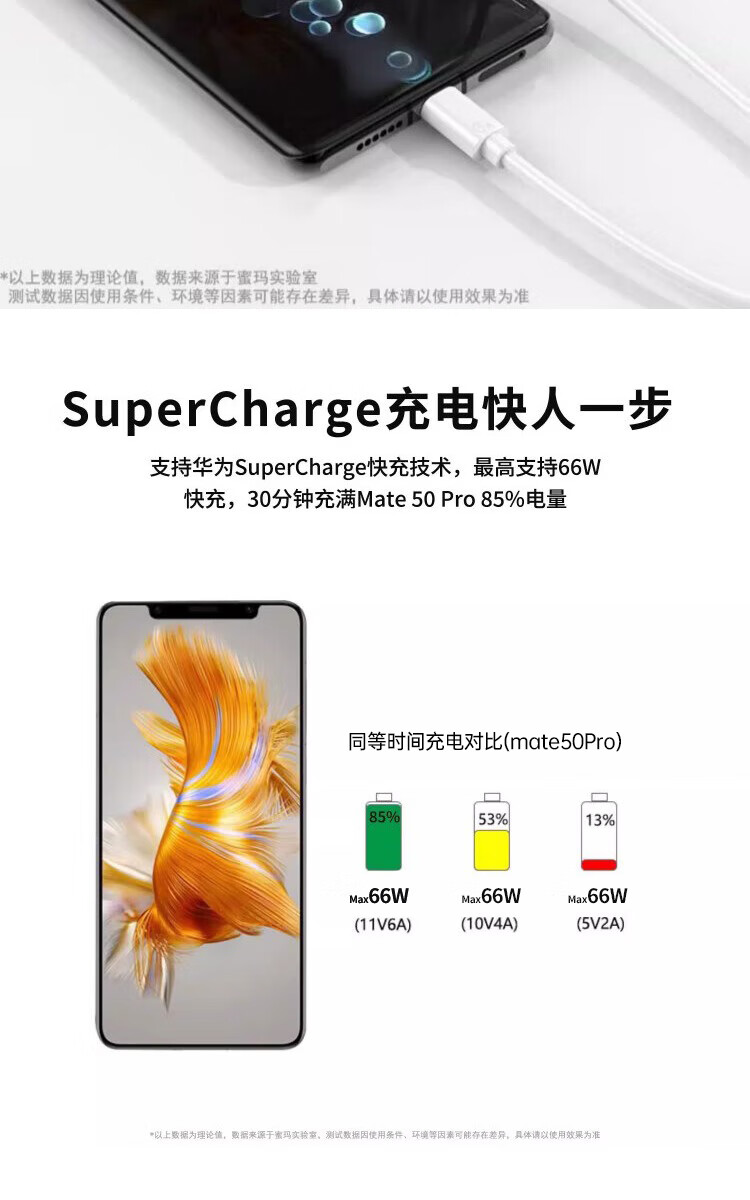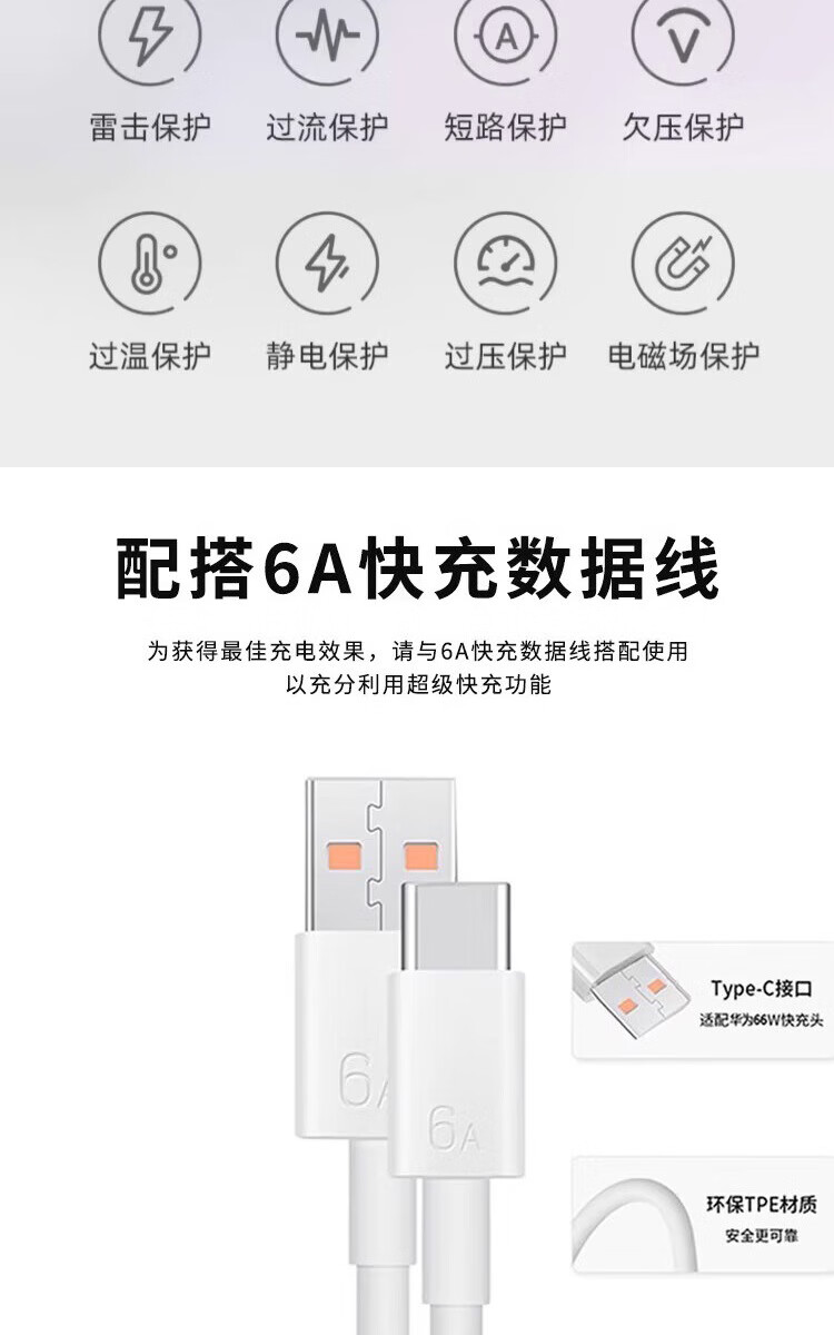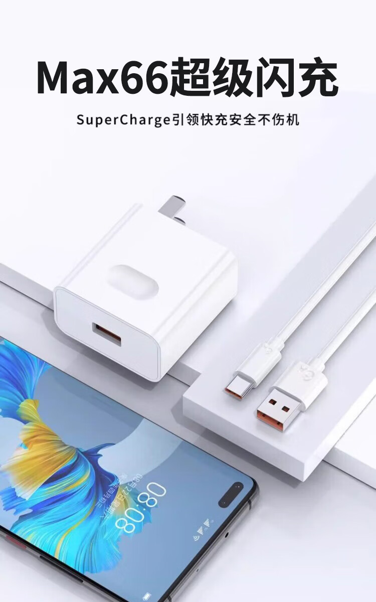 酷威猫66充电器快充适用华为mate50/40/30pro/p/nova荣耀手机充电线超级闪充头Type-C加长6A数据线套装 1.0米6A快充线