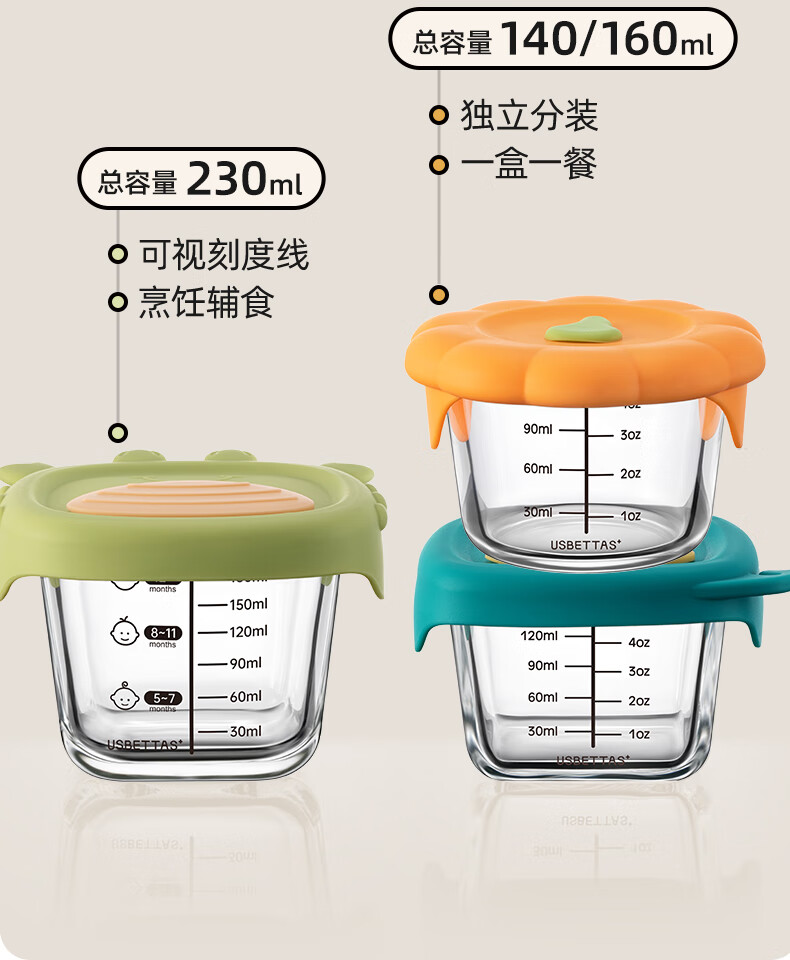 贝肽斯婴儿辅食碗玻璃可蒸煮储存盒家用保鲜专用宝宝辅食工具儿童餐具碗 【可带盖蒸煮】南瓜橙140ML