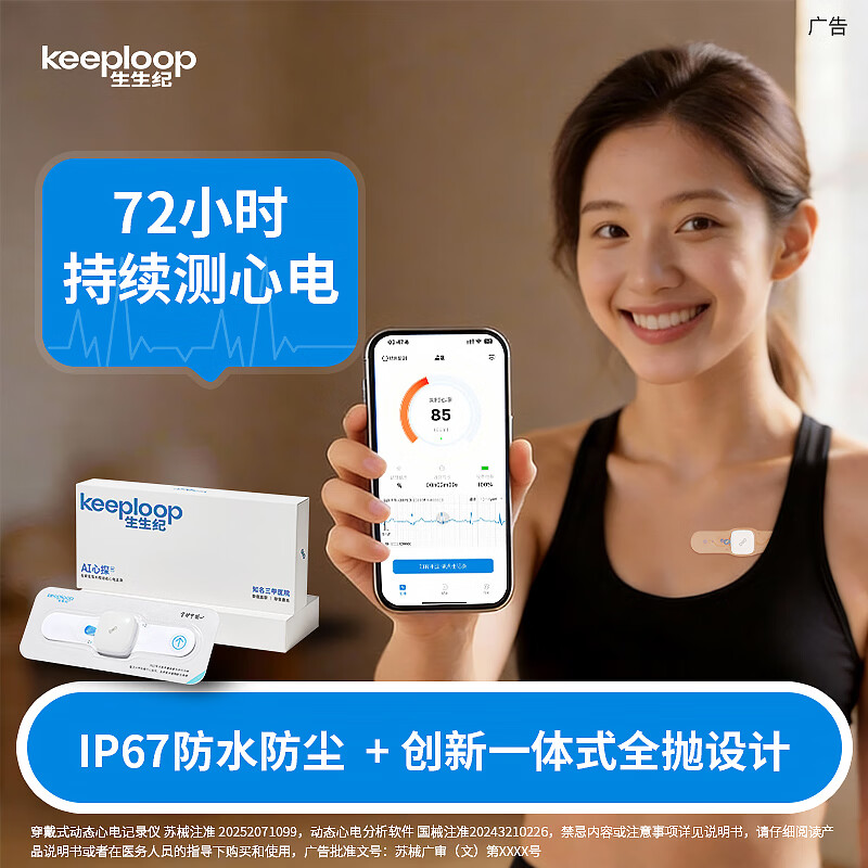 生生纪(keeploop)心电监护仪高精准医用心率监测仪72小时心脏检测仪AI次抛心电图机