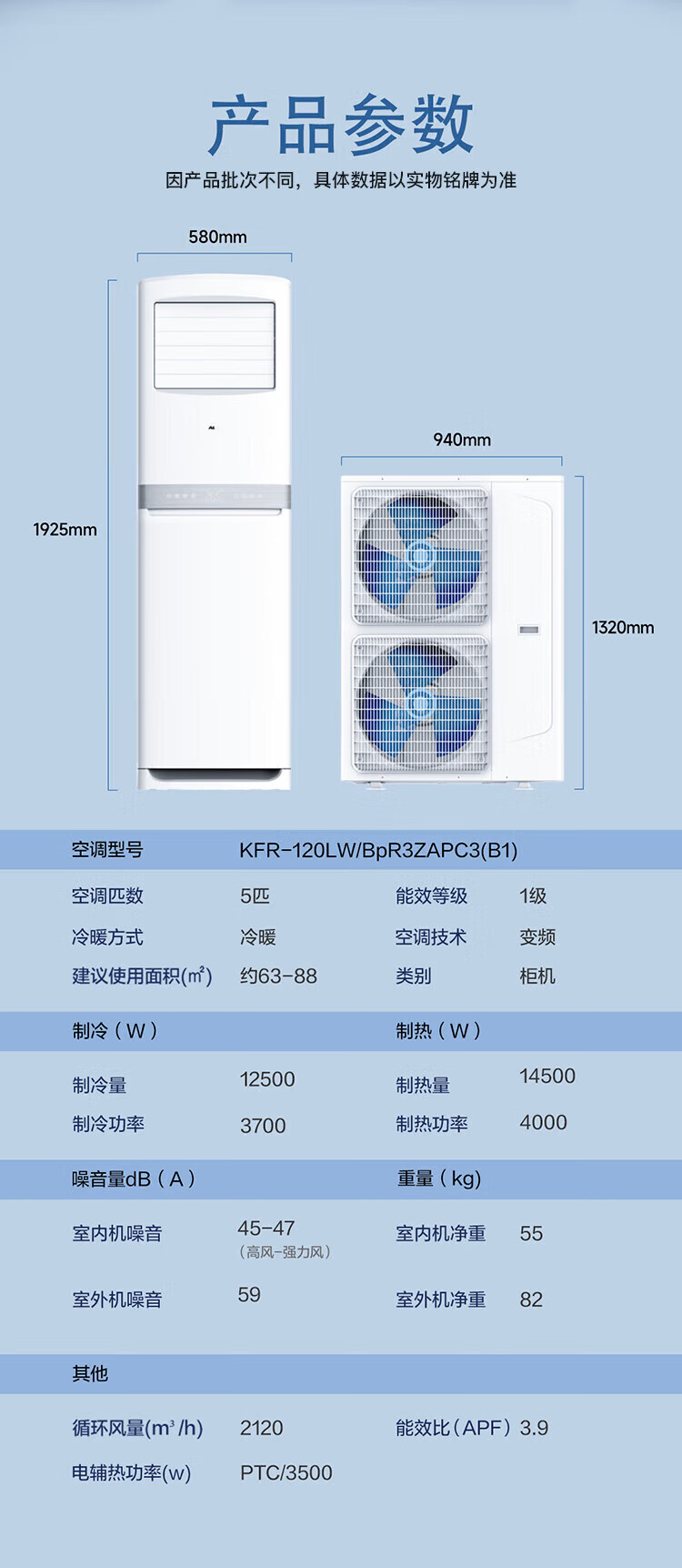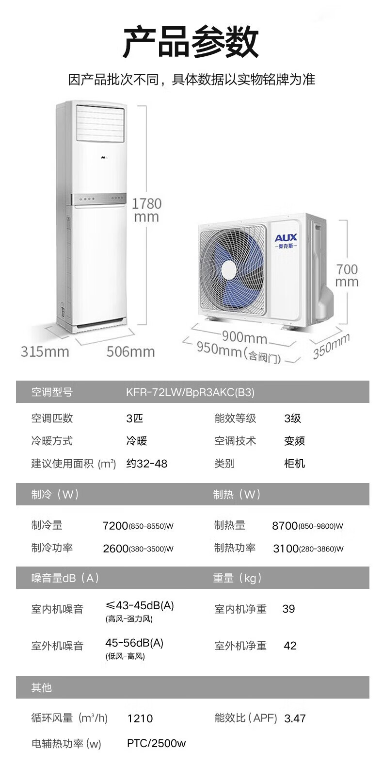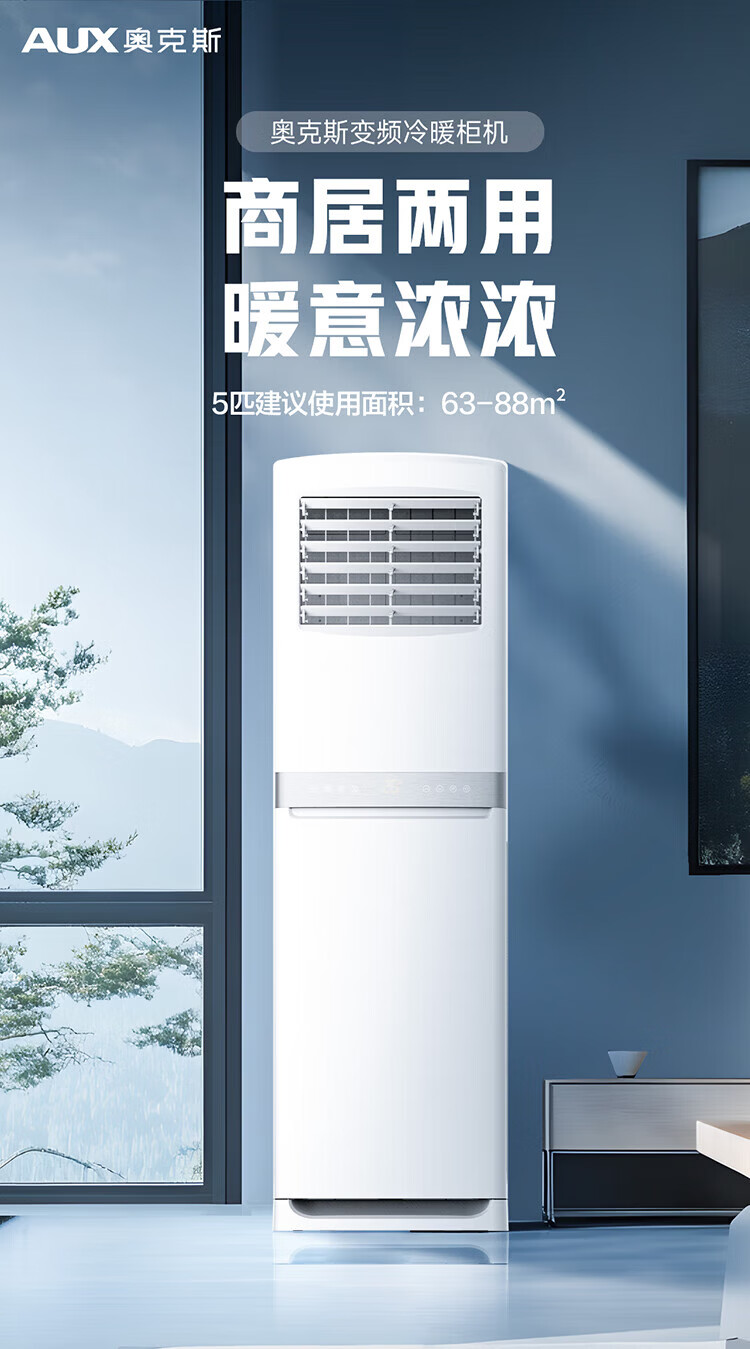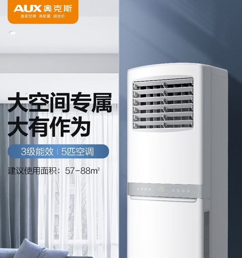 奥克斯(AUX)空调商用大5匹柜机新能效省电冷暖两用 大风量广域出风 除湿商铺空调 380V三相电可开专票 大5匹 三级能效定频380V可开增票57-88㎡