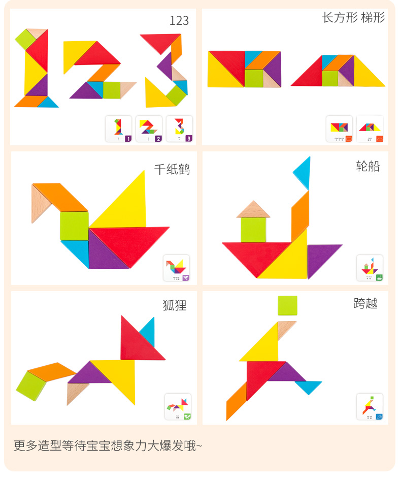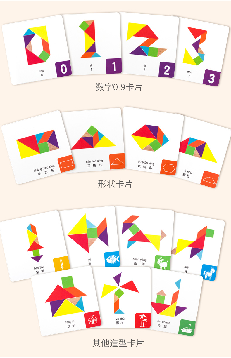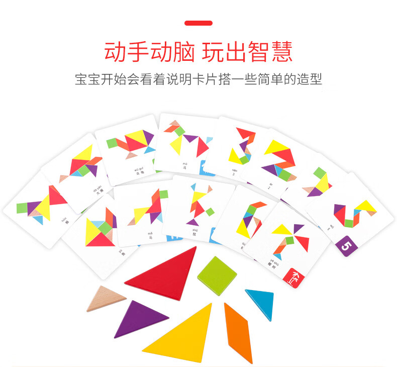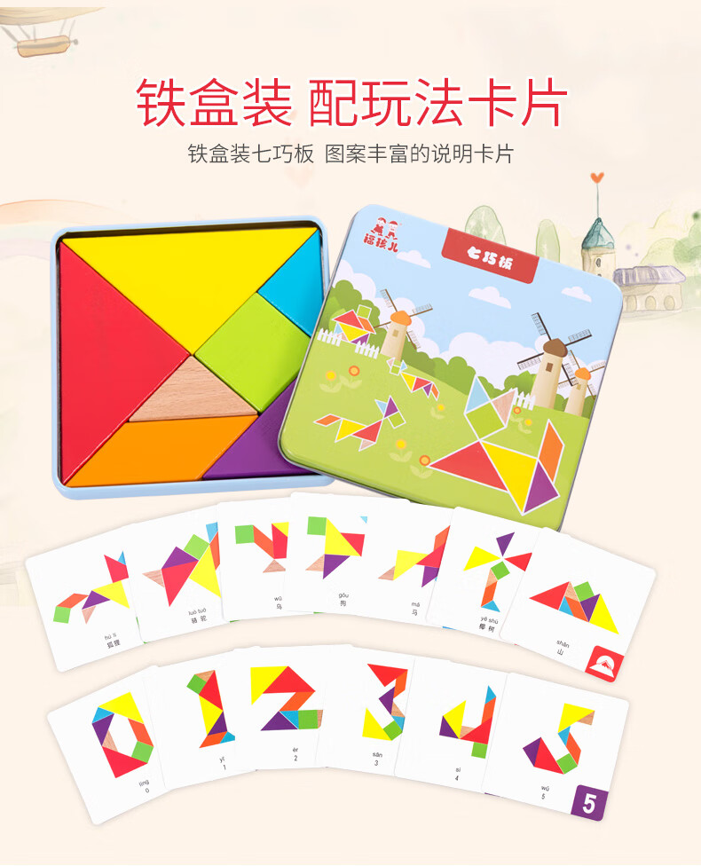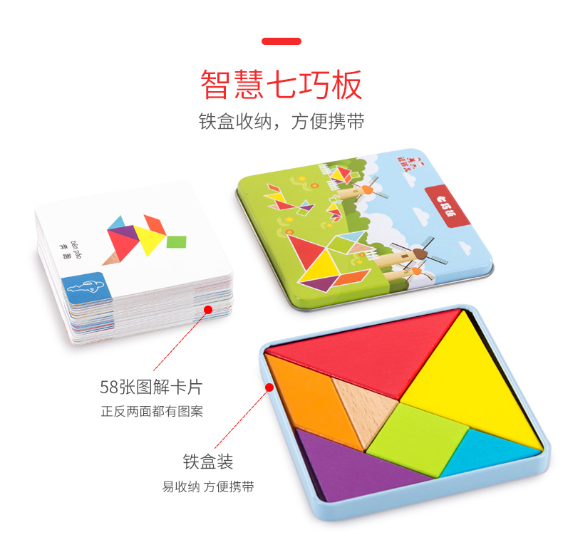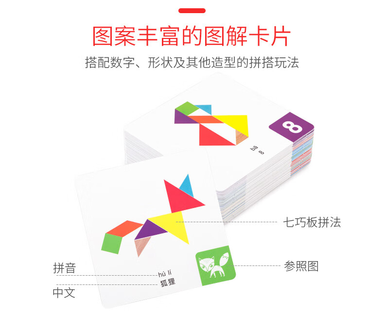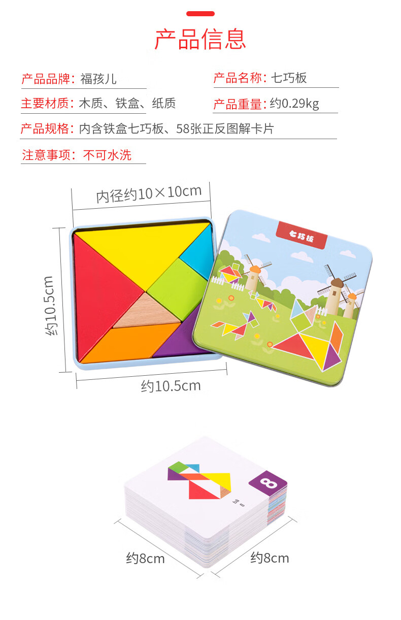 福孩儿七巧板智力拼图+58张教学卡小学生二一年级下册数学专用教具学具