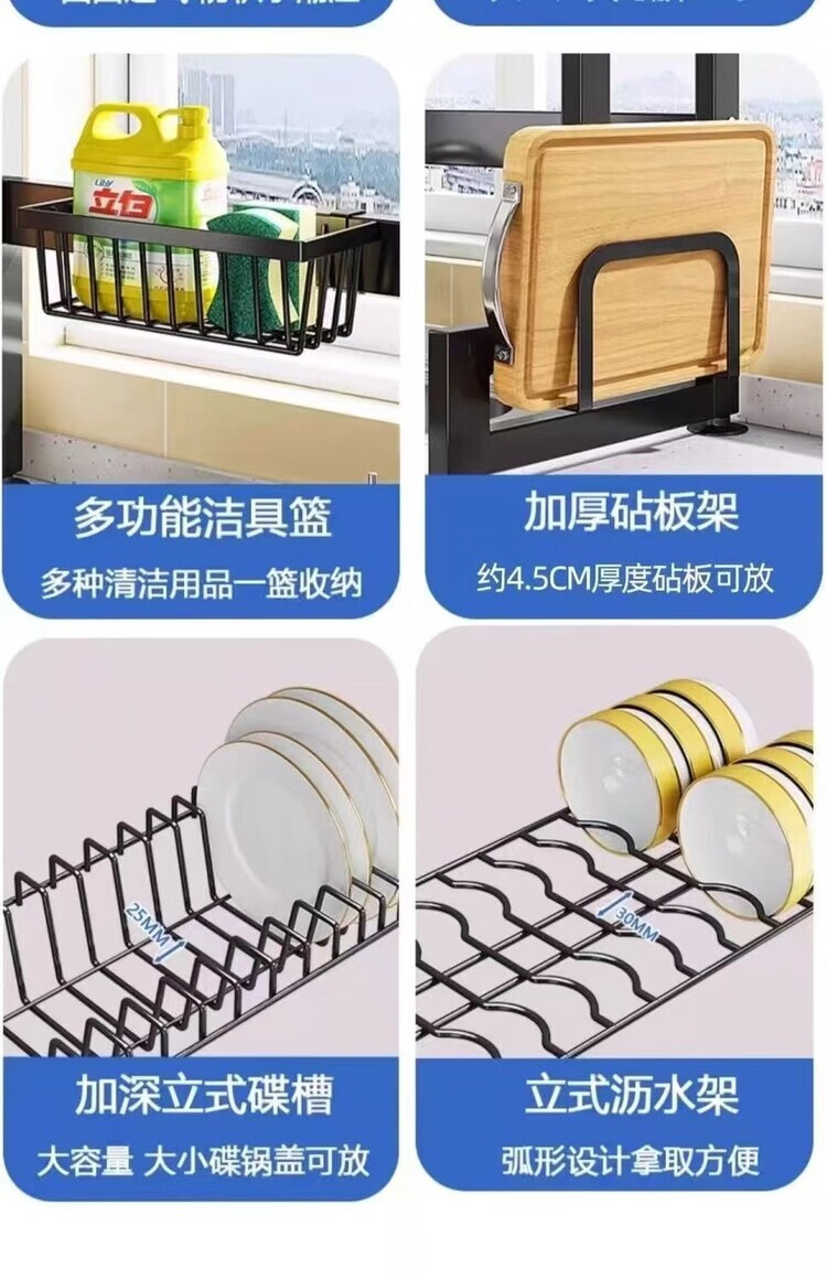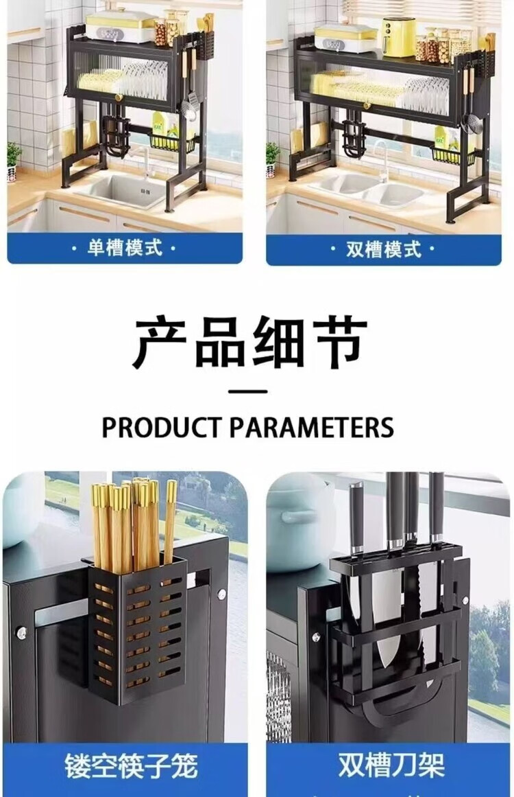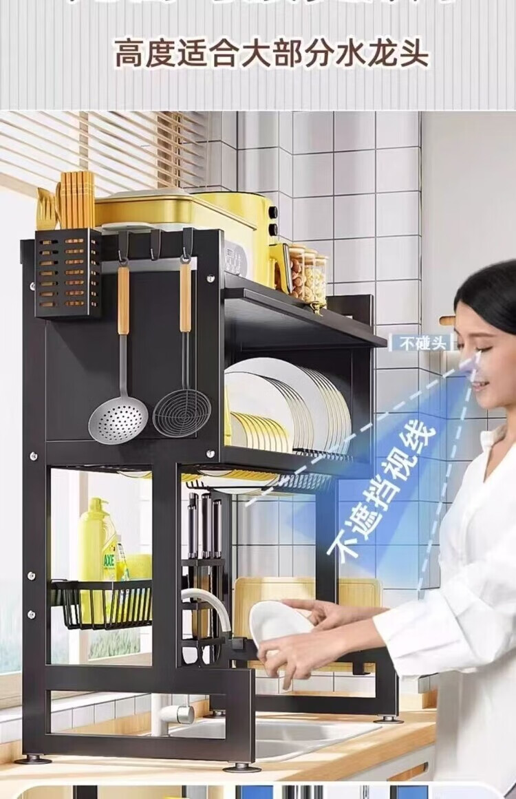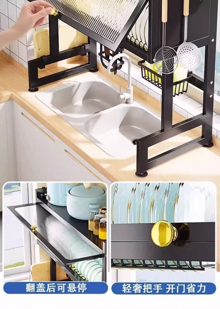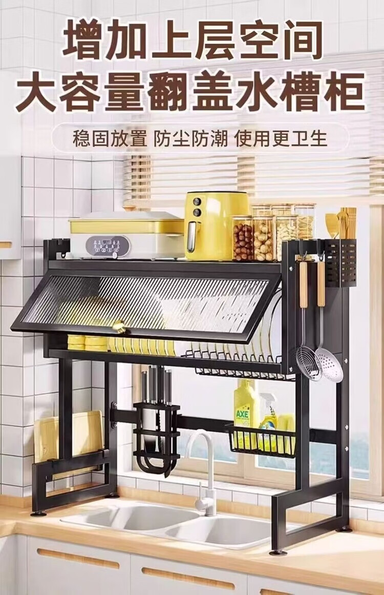 泰禧阁厨房水槽置物架洗碗槽水池防尘碗柜台面收纳多功能储物防尘沥水架 (黑色)长度65公分