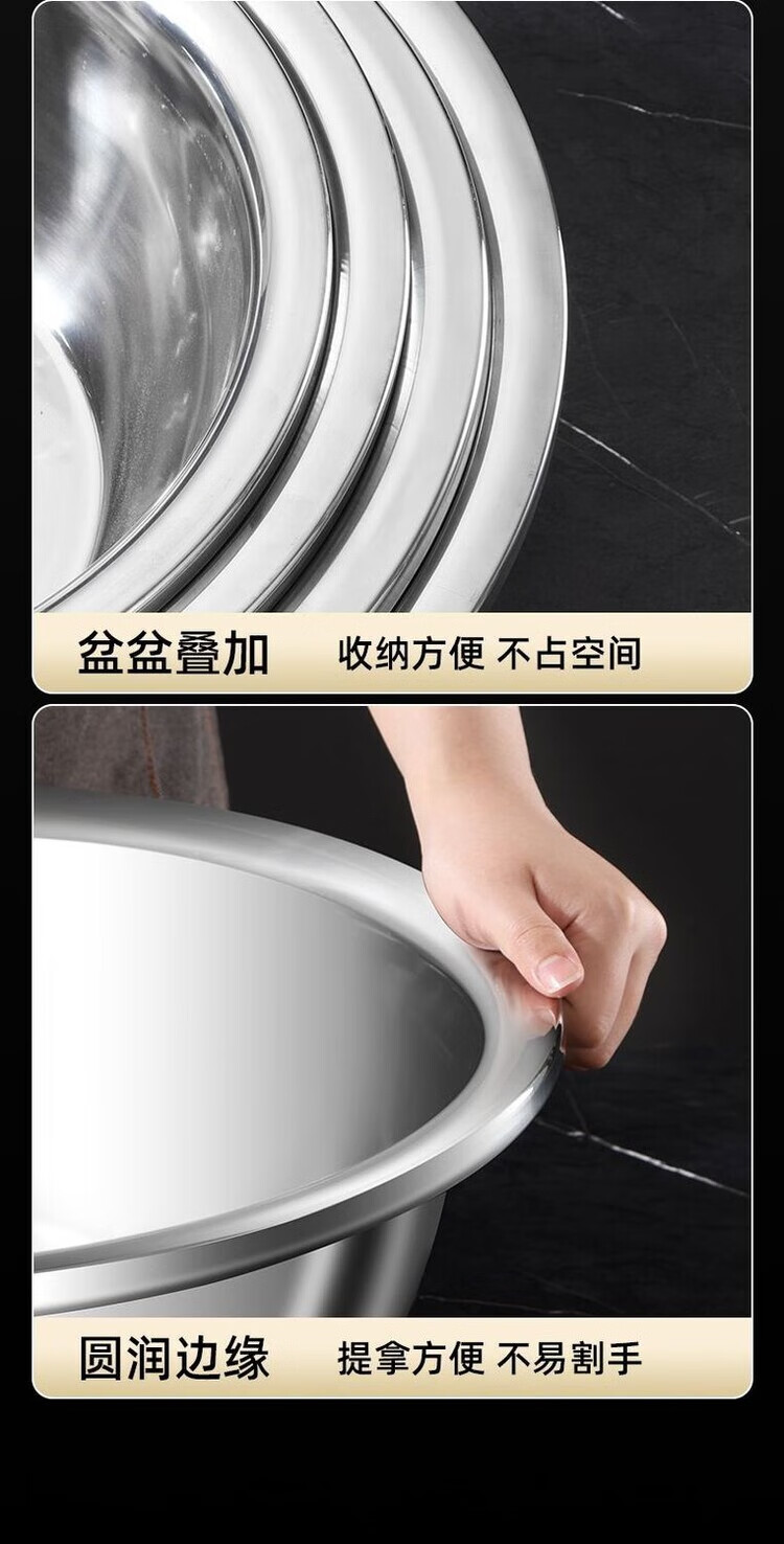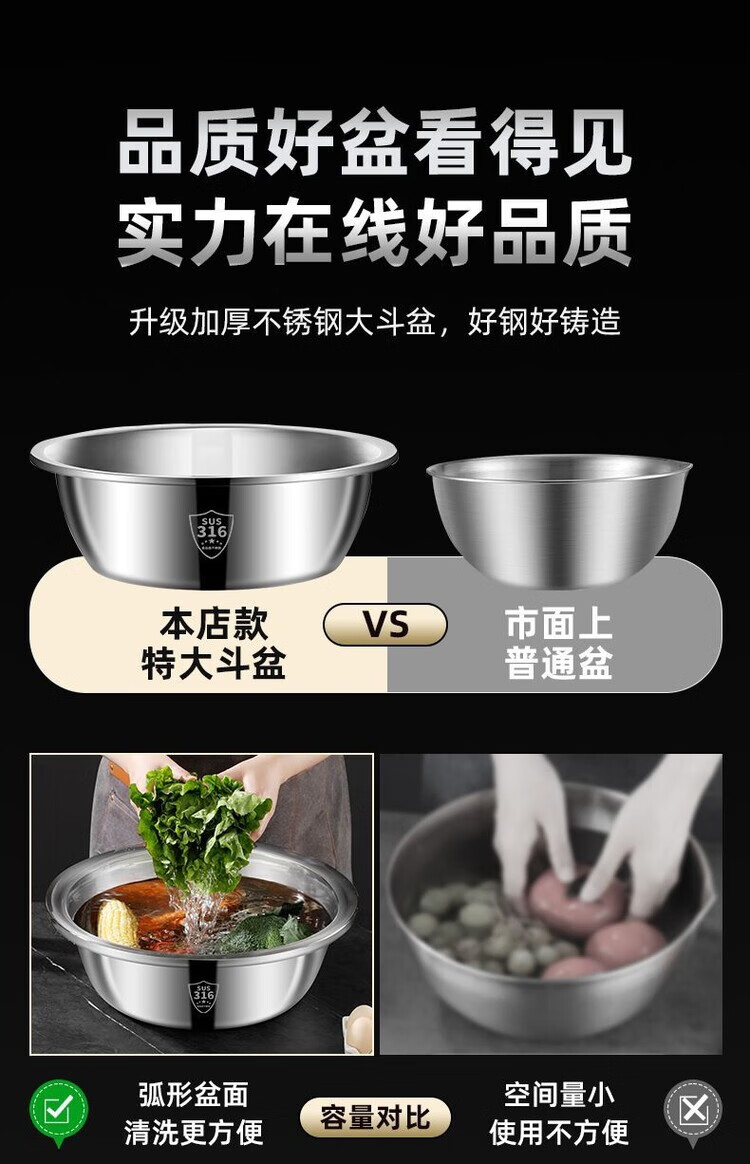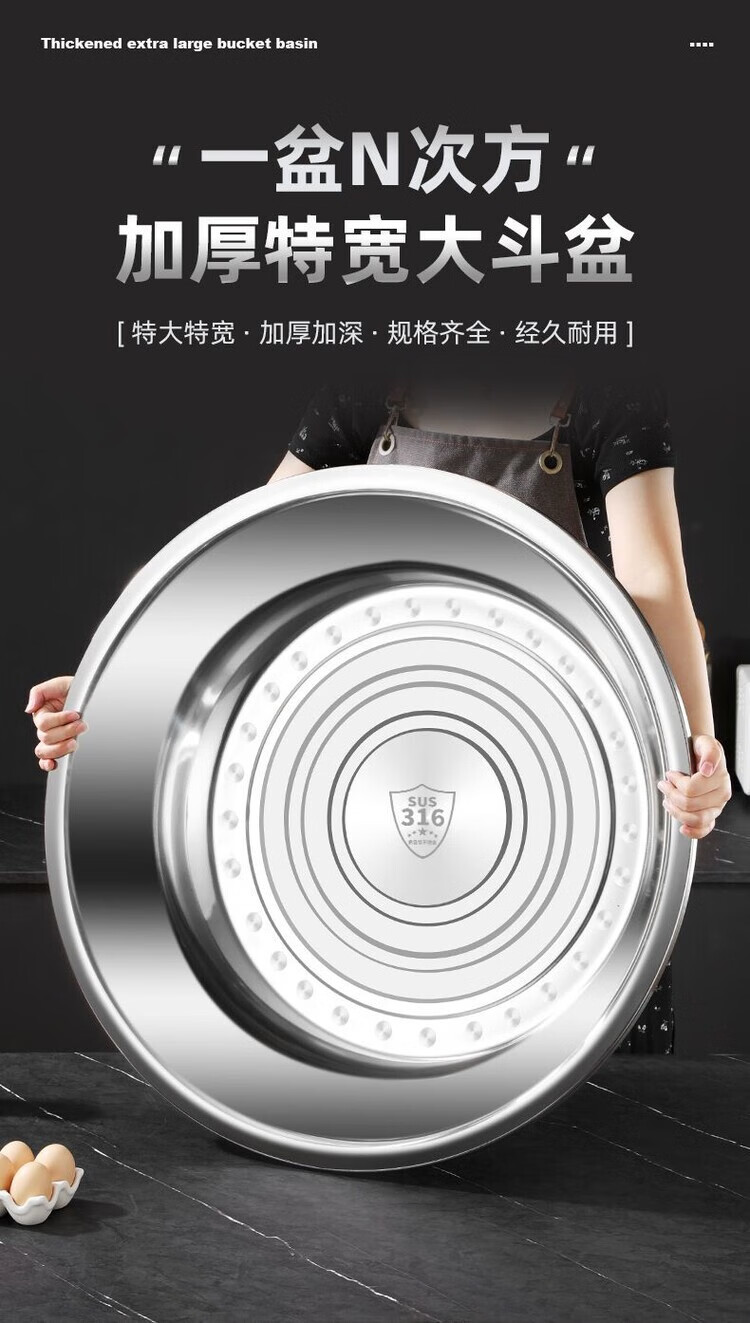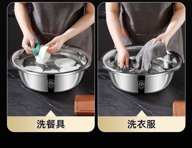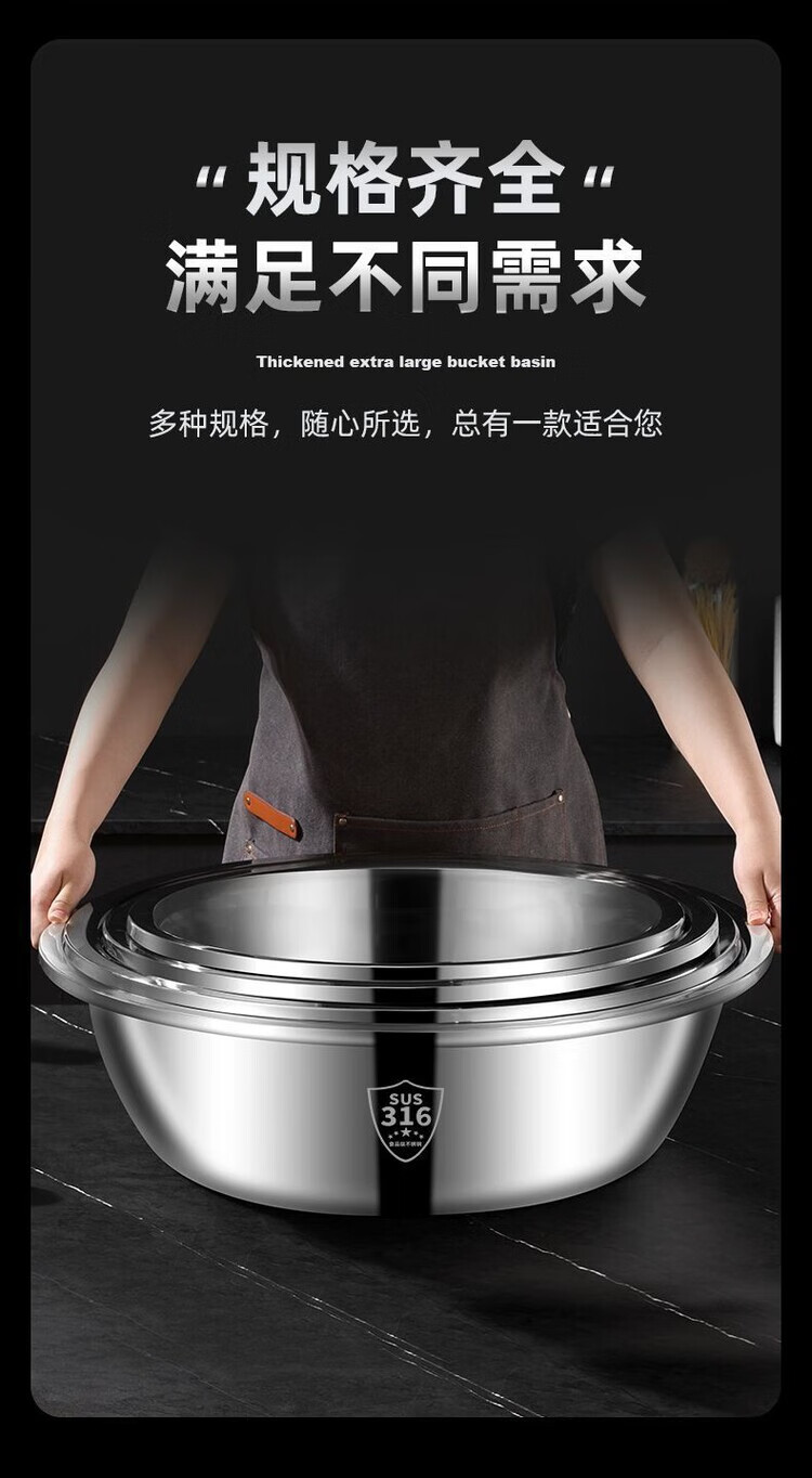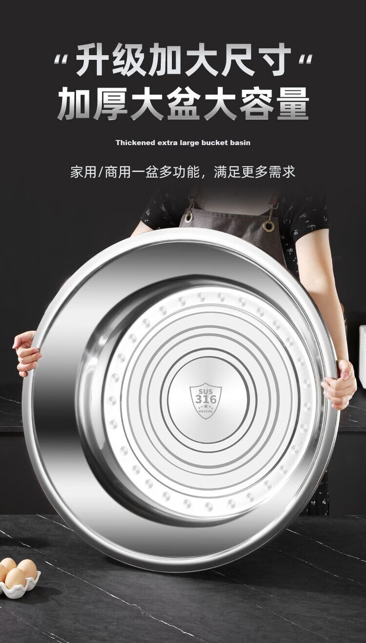 GIOIO316不锈钢圆形大盆洗菜盆家商用特大面盆大号洗脚洗脸盆水煮鱼盆 316不锈钢食品级 30cm【2.2厚度脚踩不坏】单个