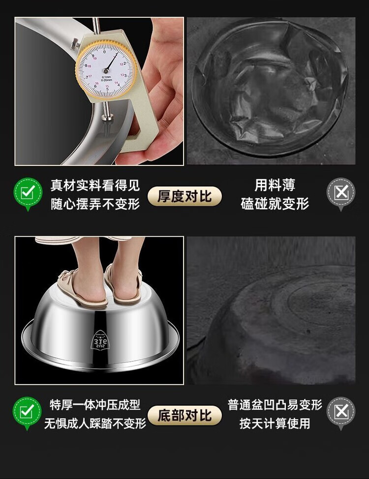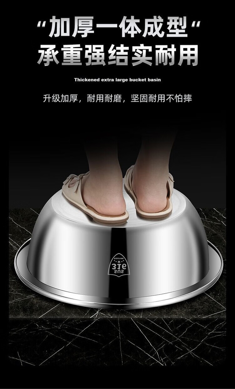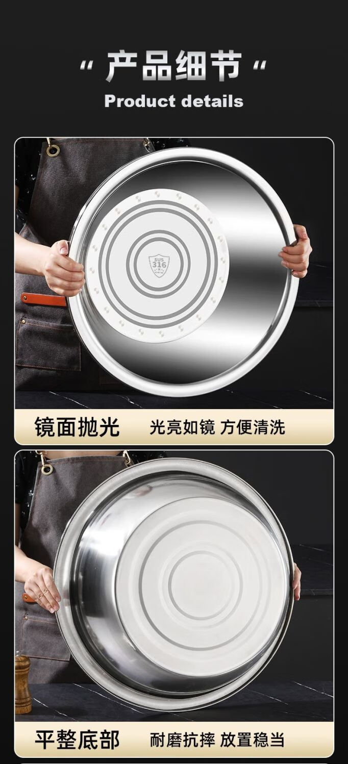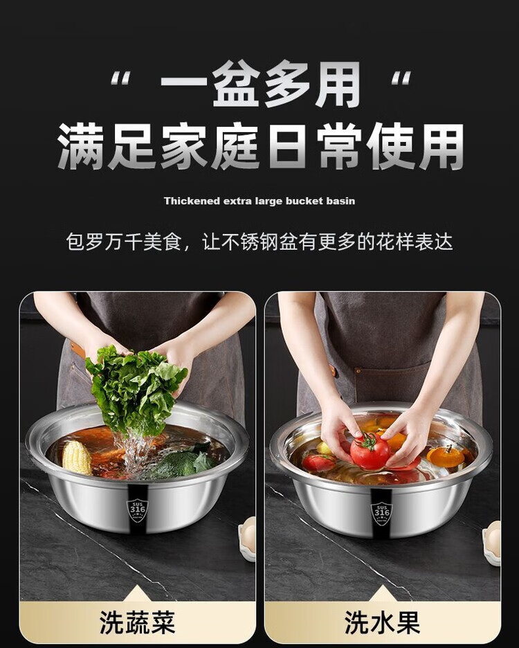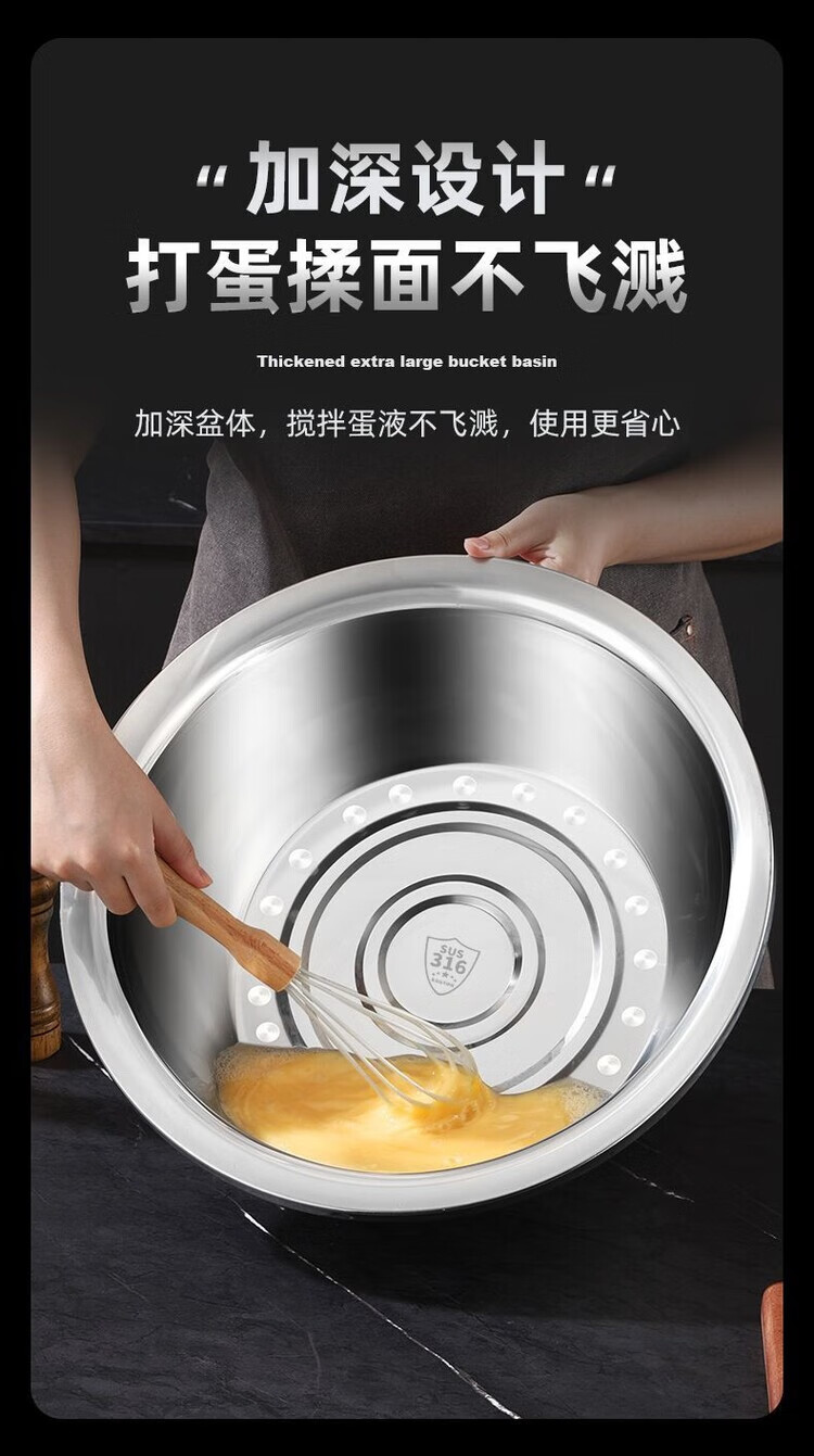 GIOIO316不锈钢圆形大盆洗菜盆家商用特大面盆大号洗脚洗脸盆水煮鱼盆 316不锈钢食品级 30cm【2.2厚度脚踩不坏】单个