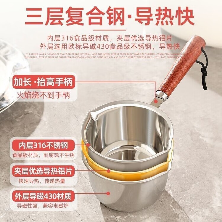 泰禧阁不锈钢厨房油锅加厚316家用泼油热油小锅专用牛奶迷你淋油神器 【500ml】 1寸 不会生锈的316进口不锈钢【抗菌级】