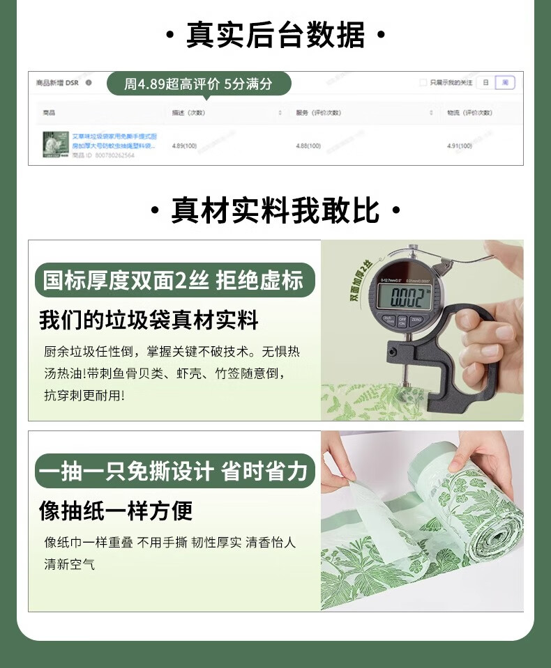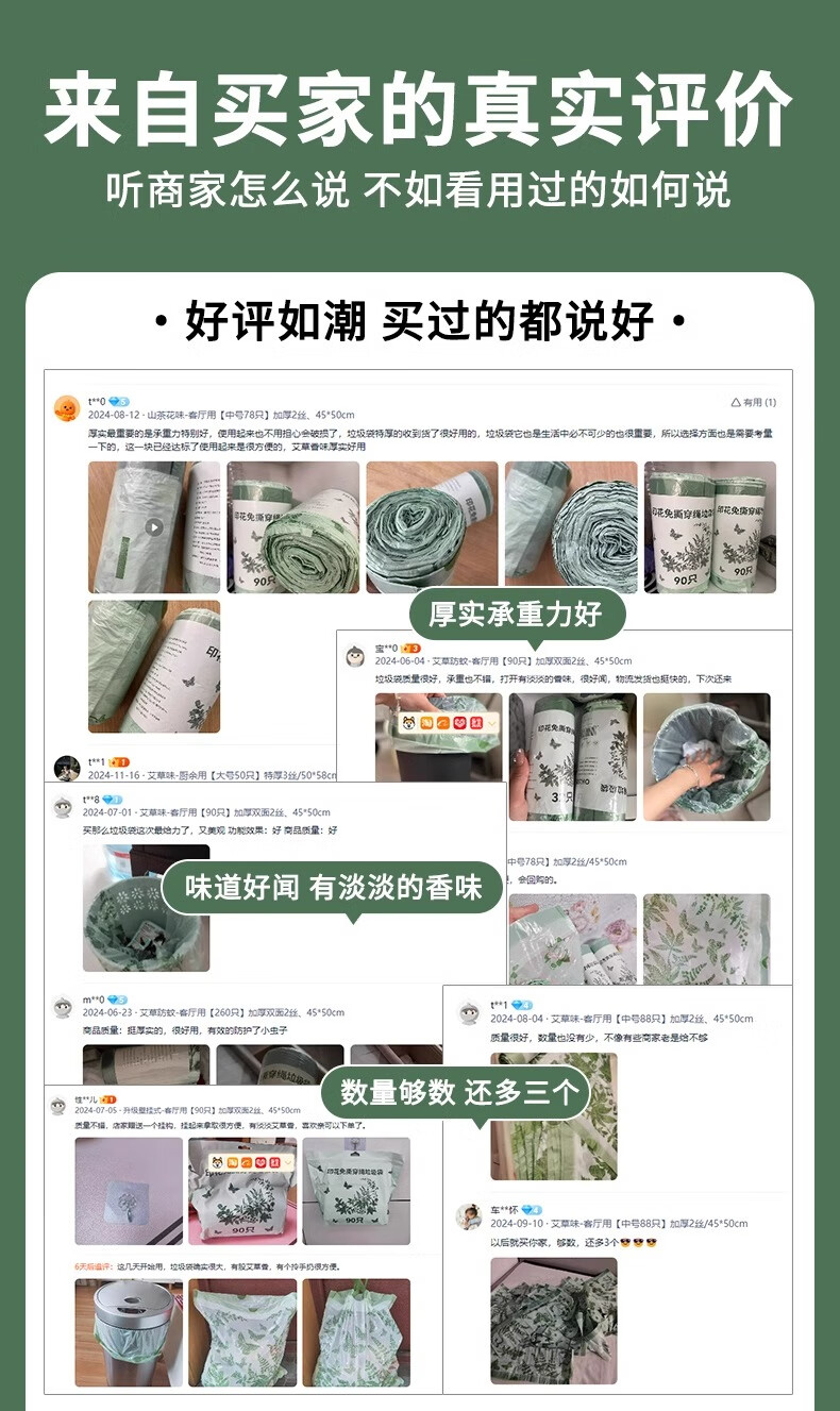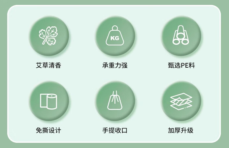 欧凯斯(OKISS)艾草味垃圾袋家用加厚手提式厨房免撕抽绳大号塑料袋45*50cm180只
