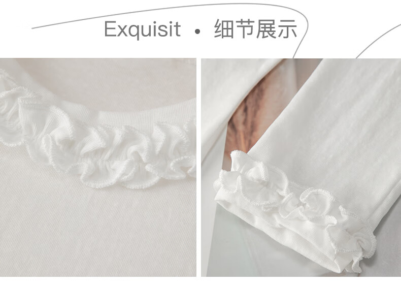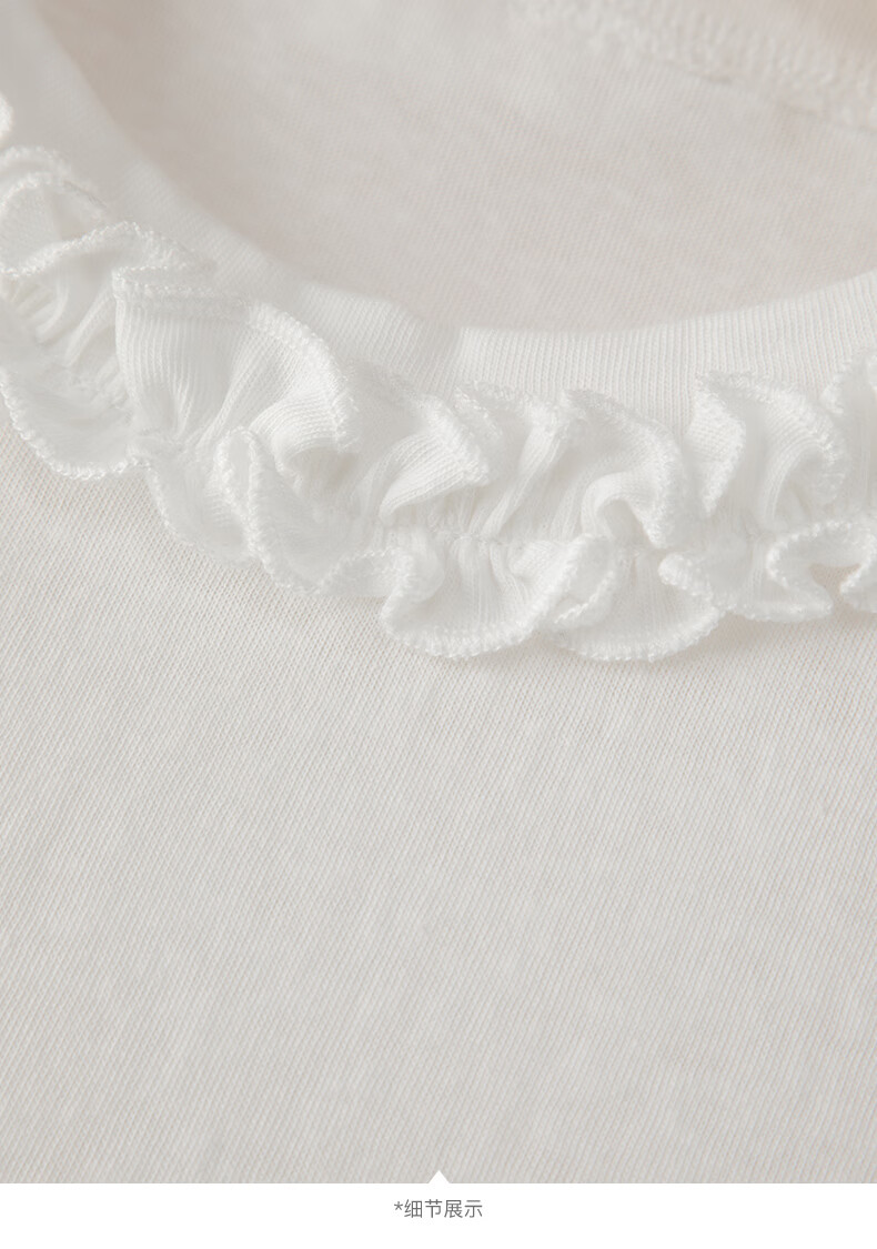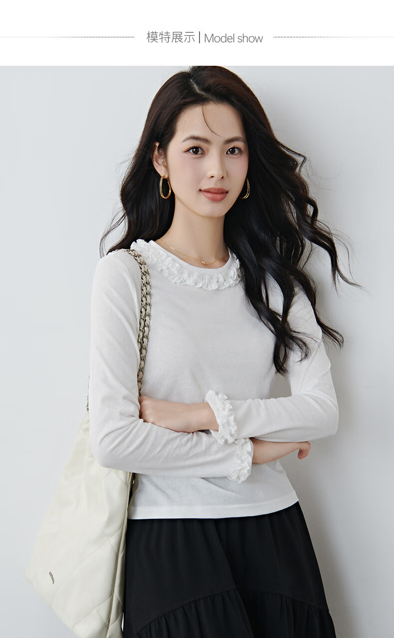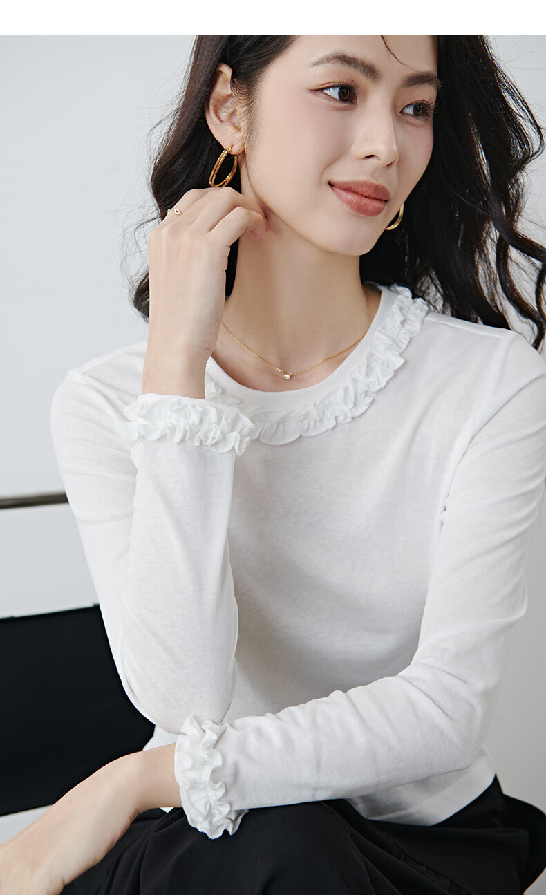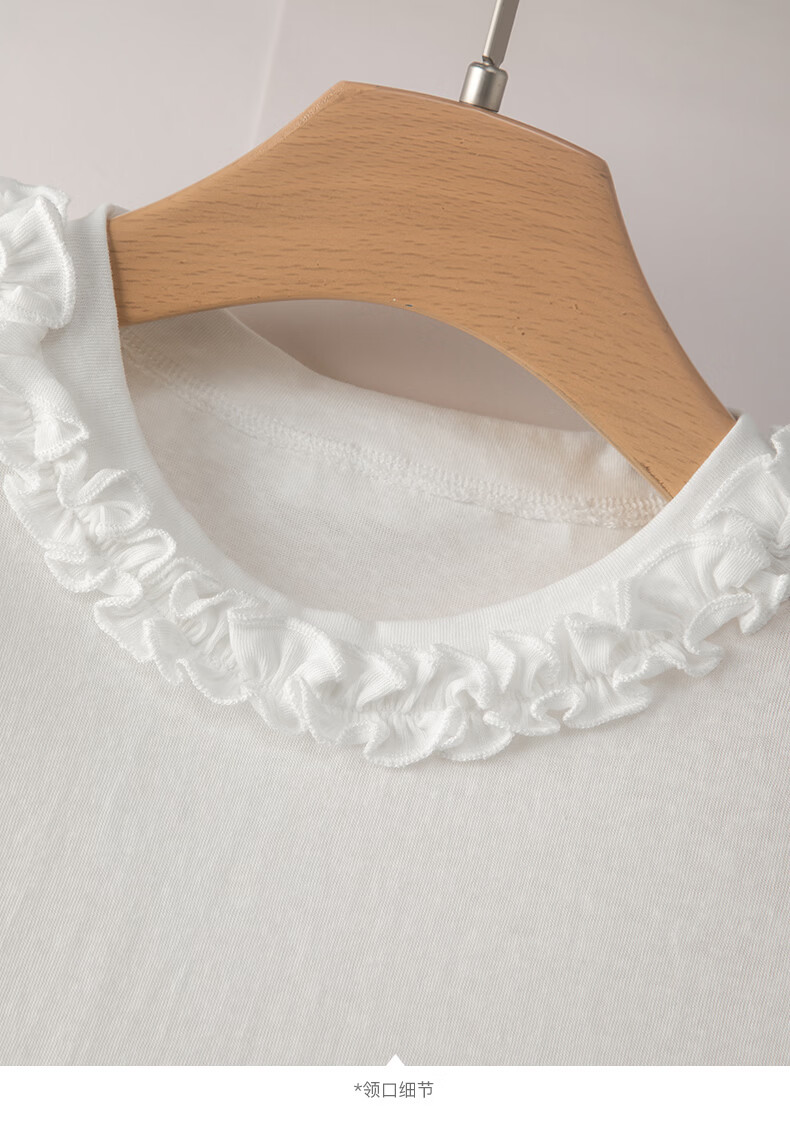 晚白【新品】2026年春款木耳花边圆领雪花棉上衣亲肤舒适百搭T恤衫女 白色 M