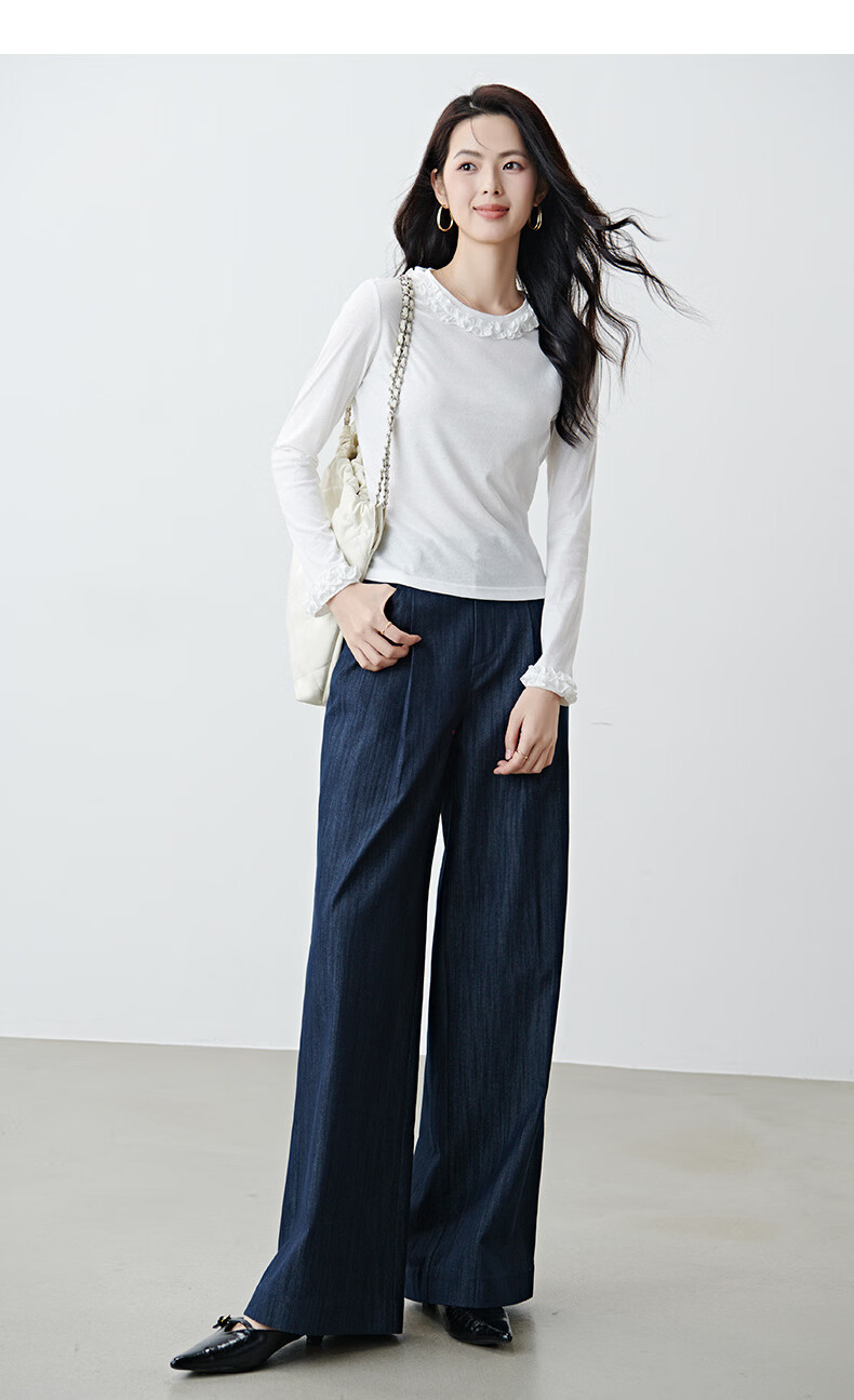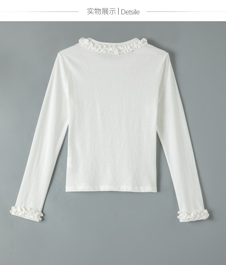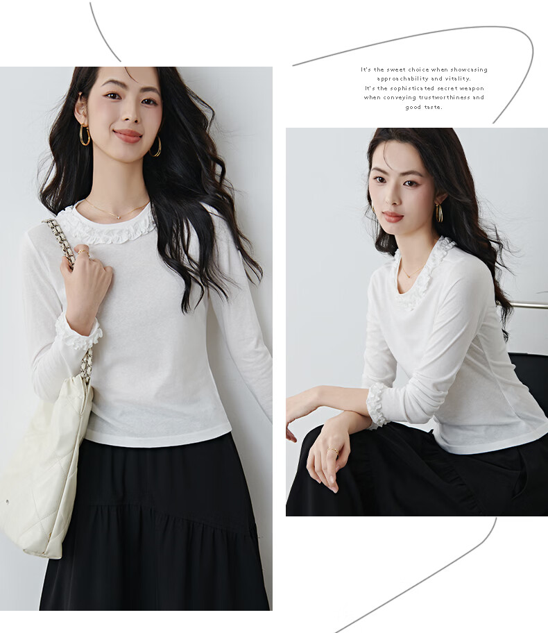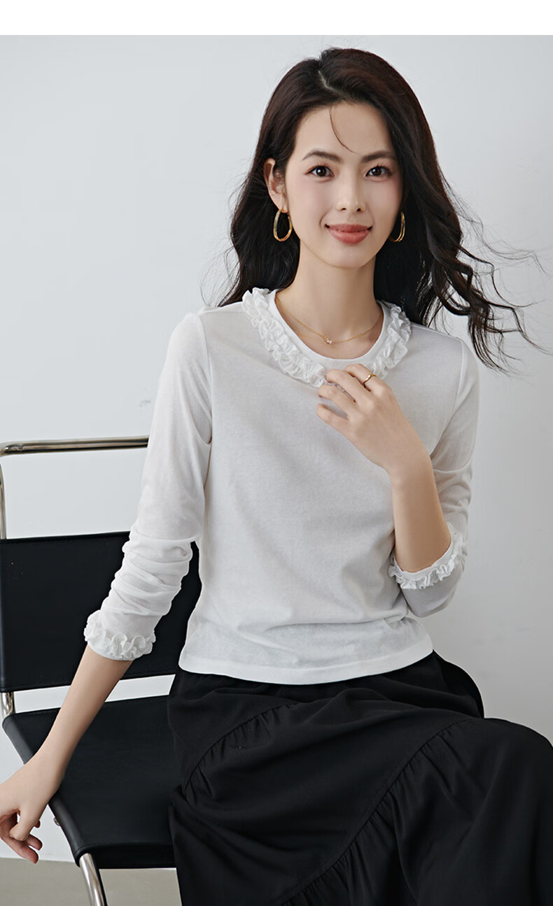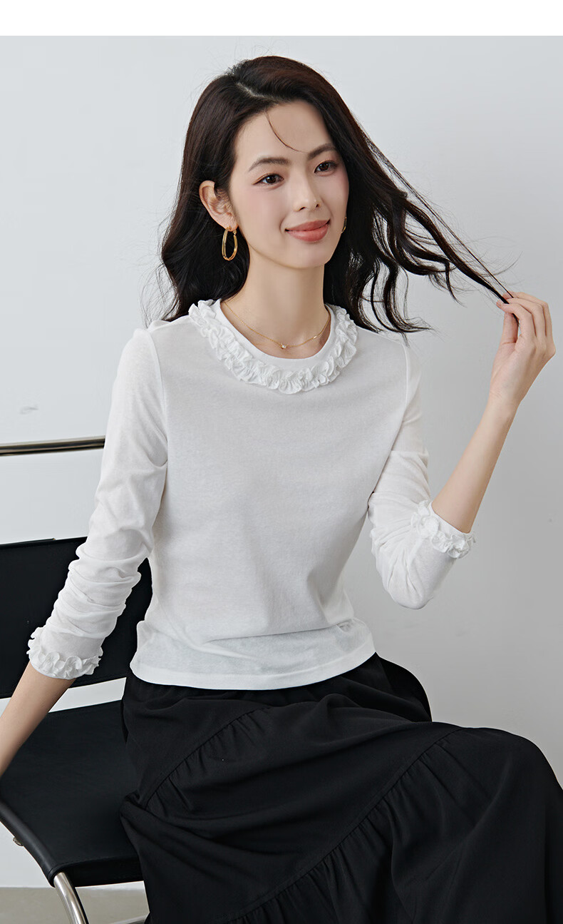 晚白【新品】2026年春款木耳花边圆领雪花棉上衣亲肤舒适百搭T恤衫女 白色 M