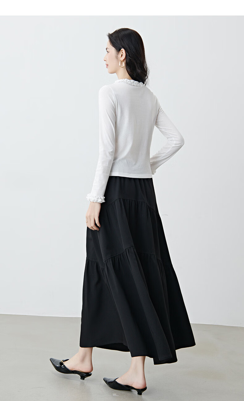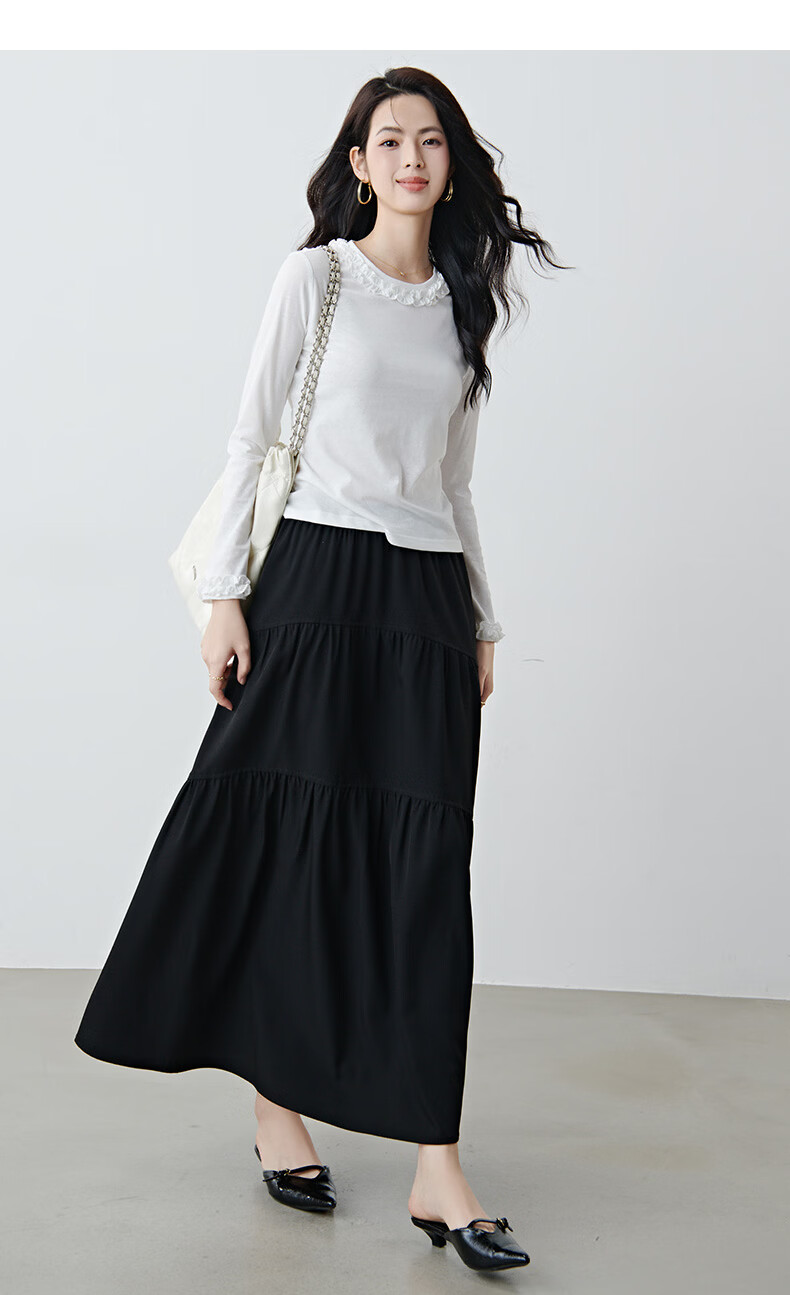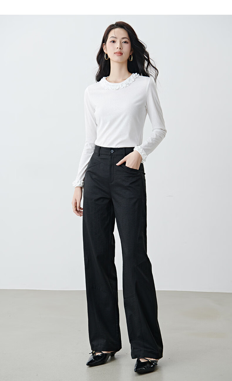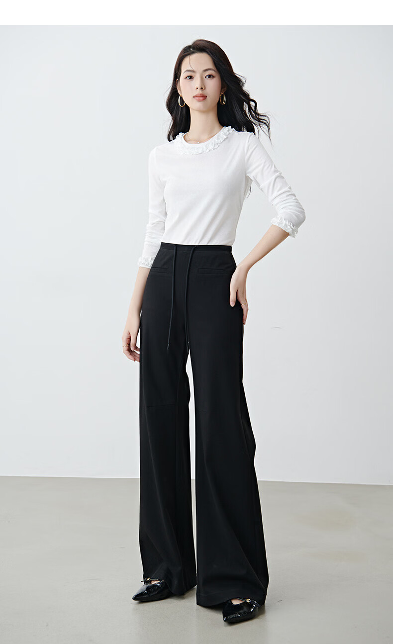 晚白【新品】2026年春款木耳花边圆领雪花棉上衣亲肤舒适百搭T恤衫女 白色 M