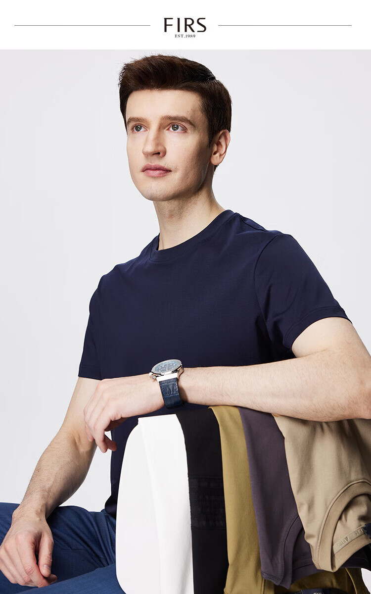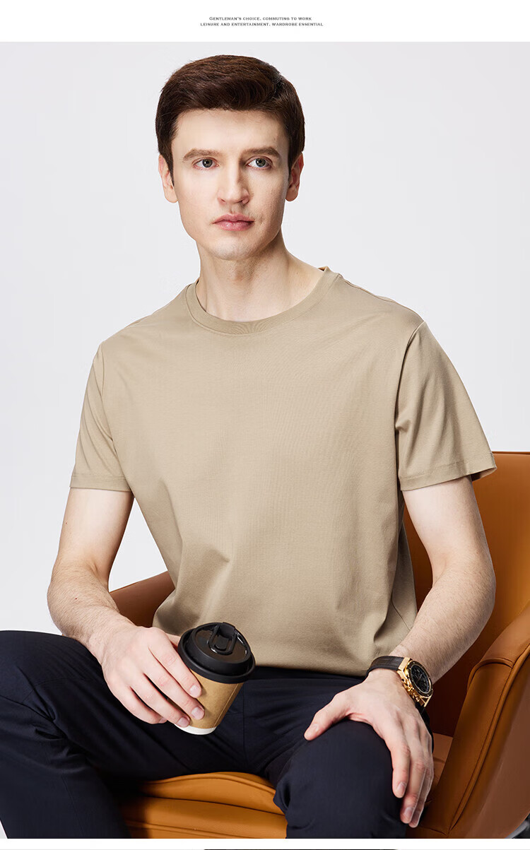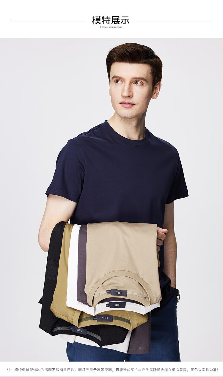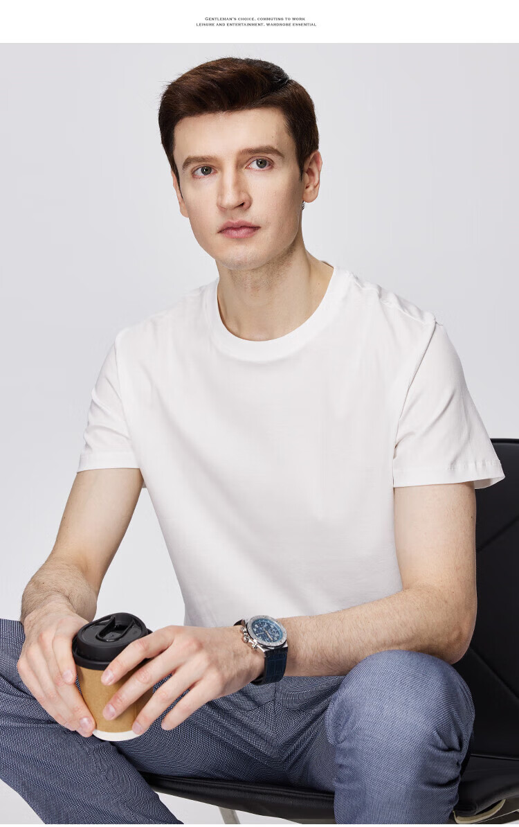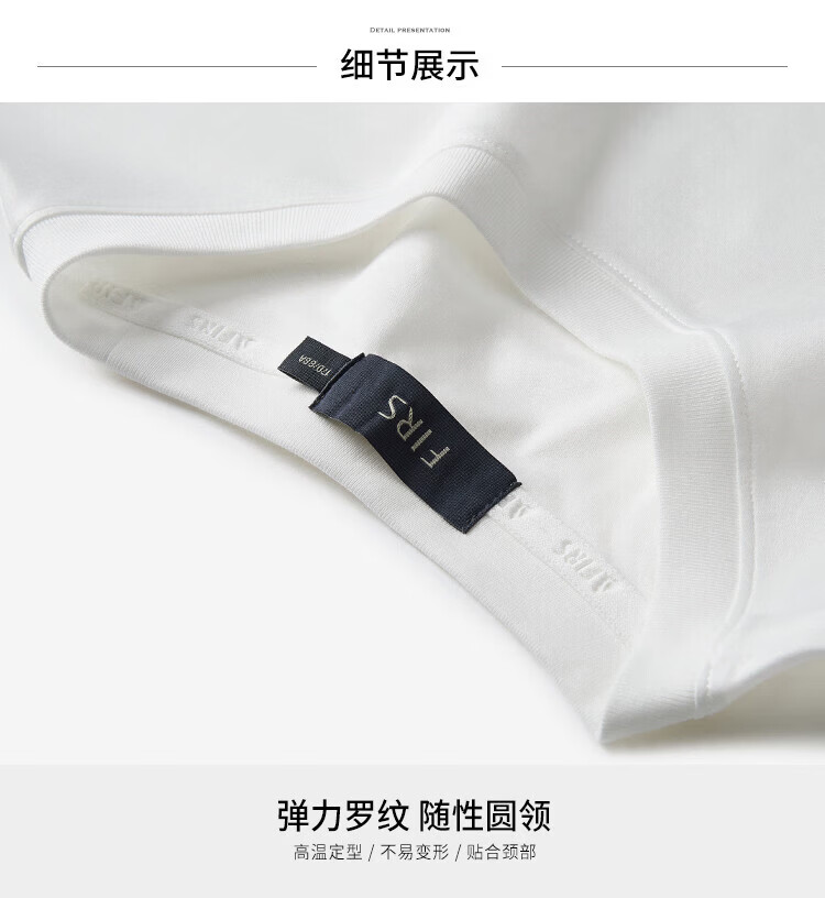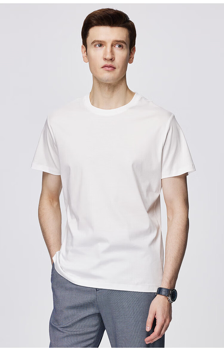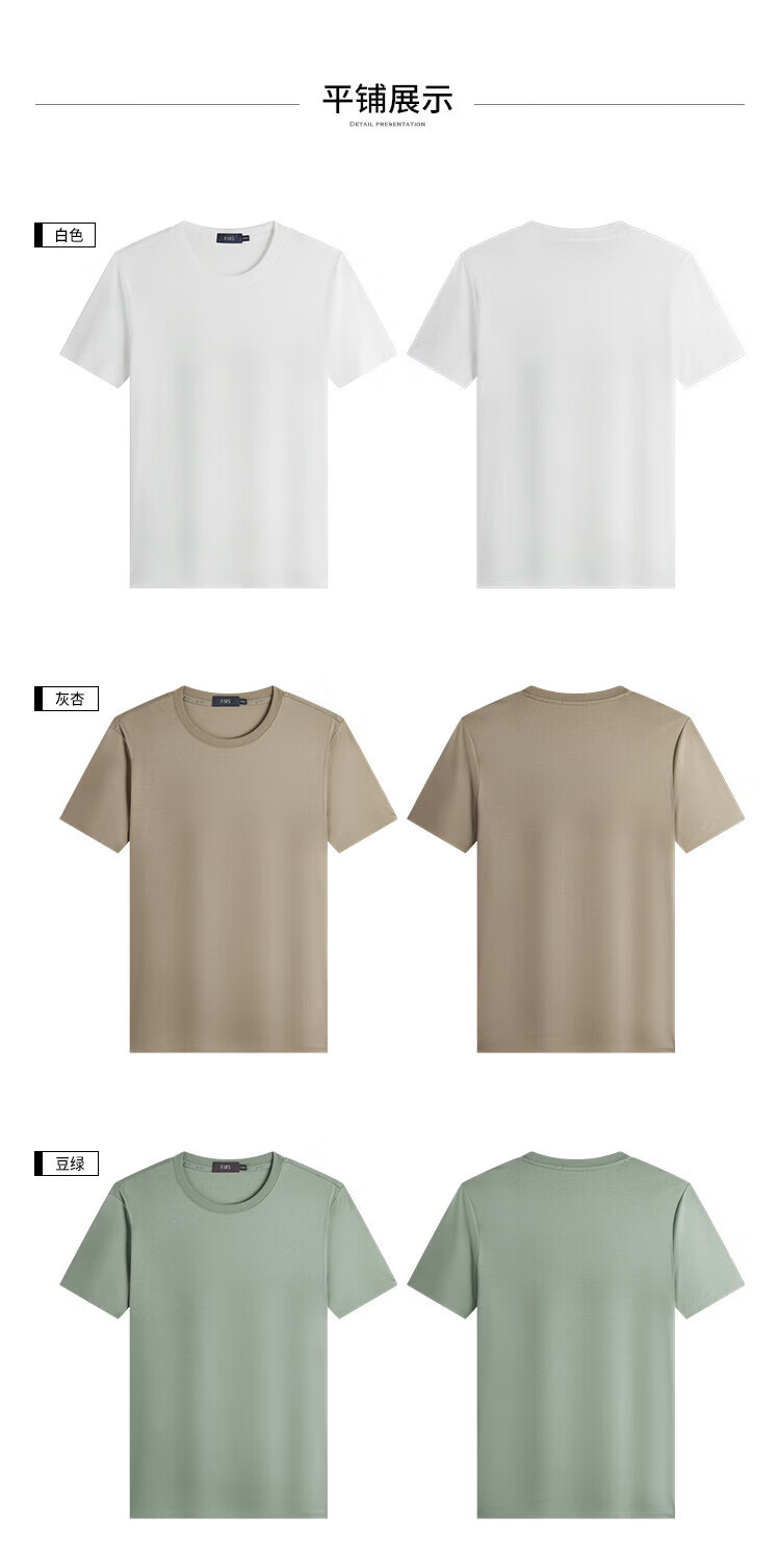 杉杉(FIRS)【亚麻+7A抗菌】圆领短袖T恤男夏季新款休闲弹力透气半袖多色半袖 白色 M (170/88A)