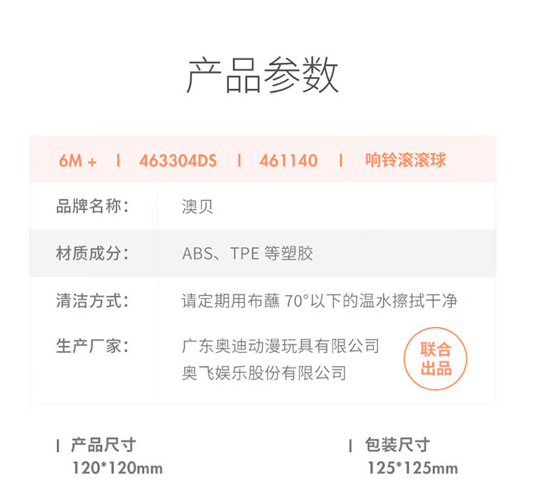 澳贝(auby)婴幼儿玩具学爬玩具响铃滚滚球抓握爬行抬头训练周岁生日礼物6m+