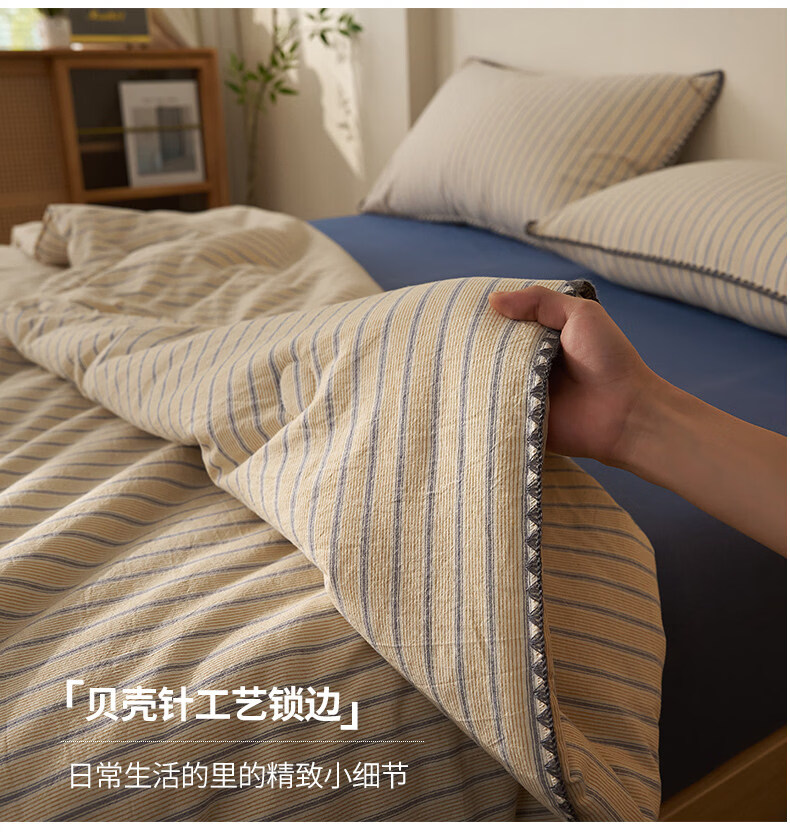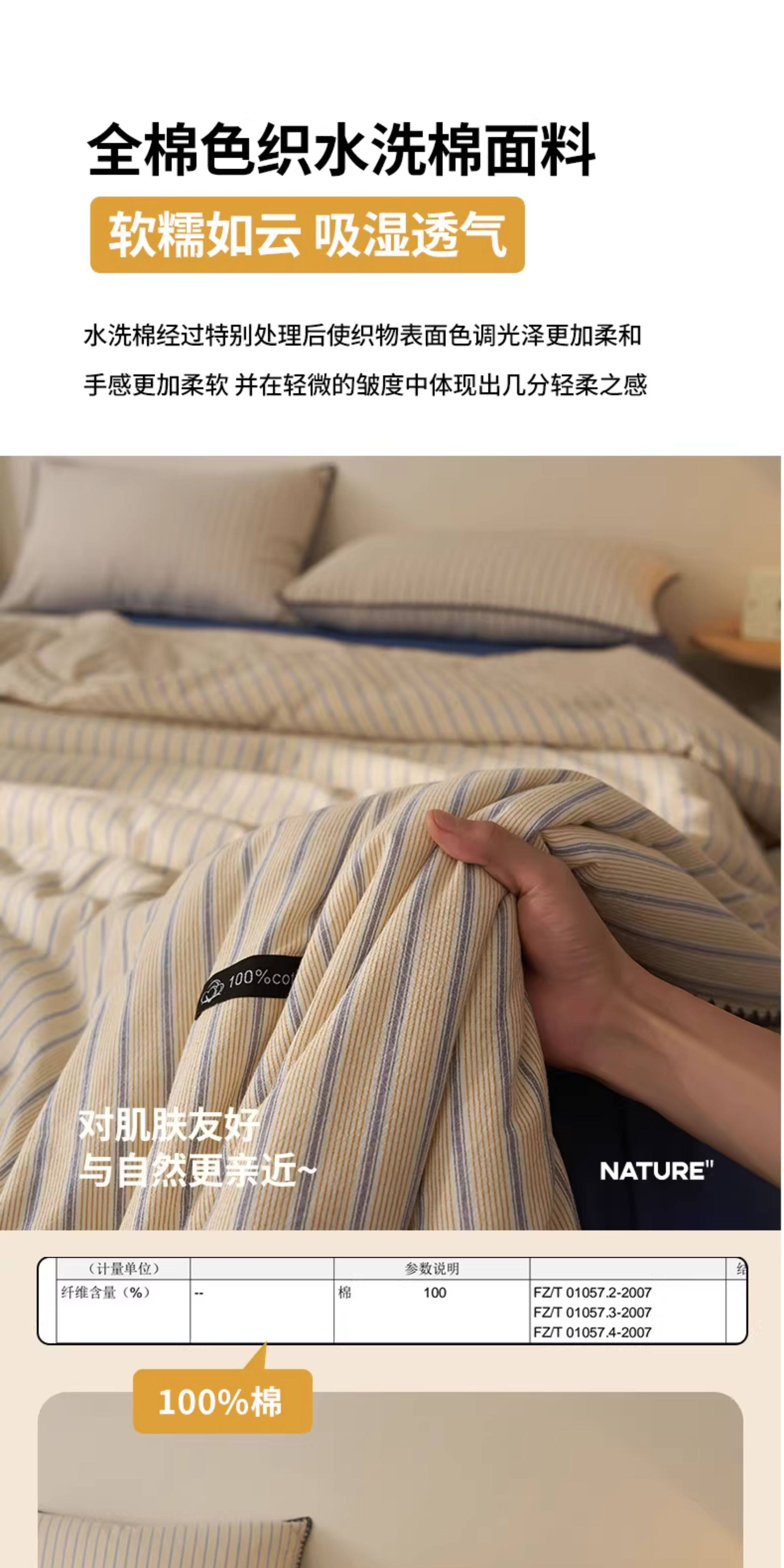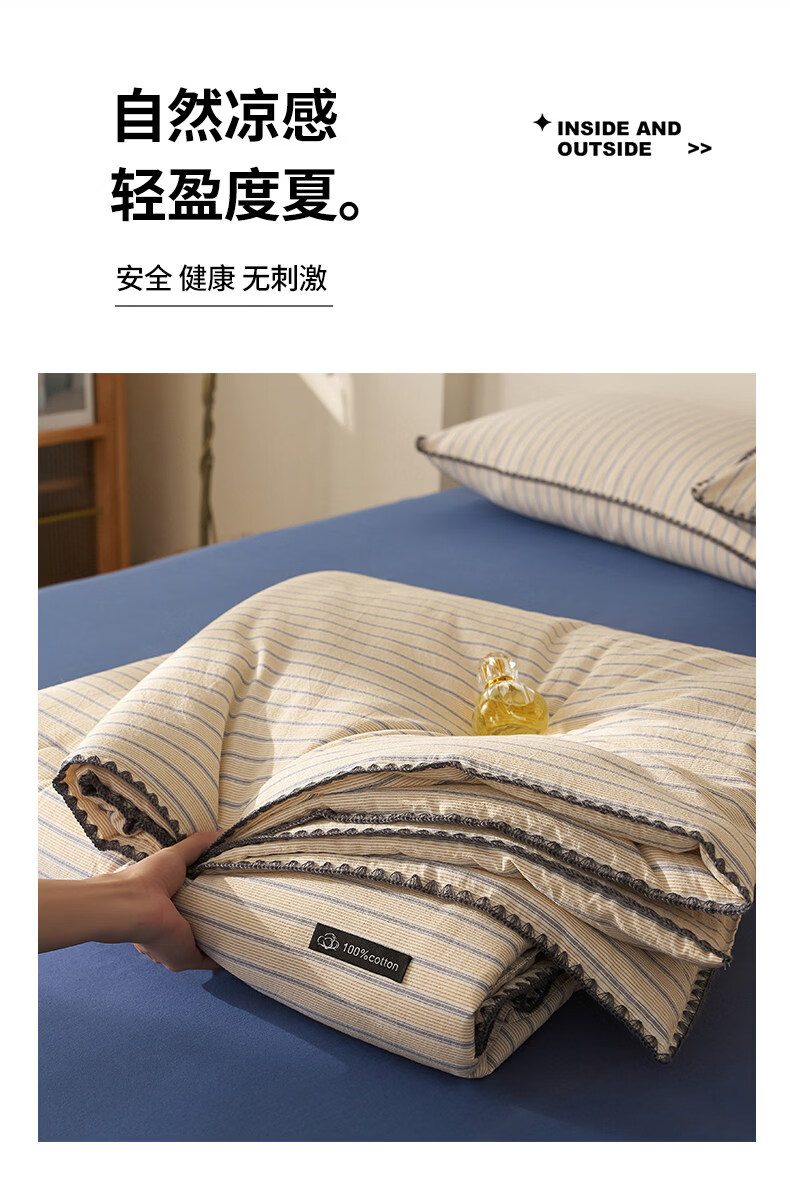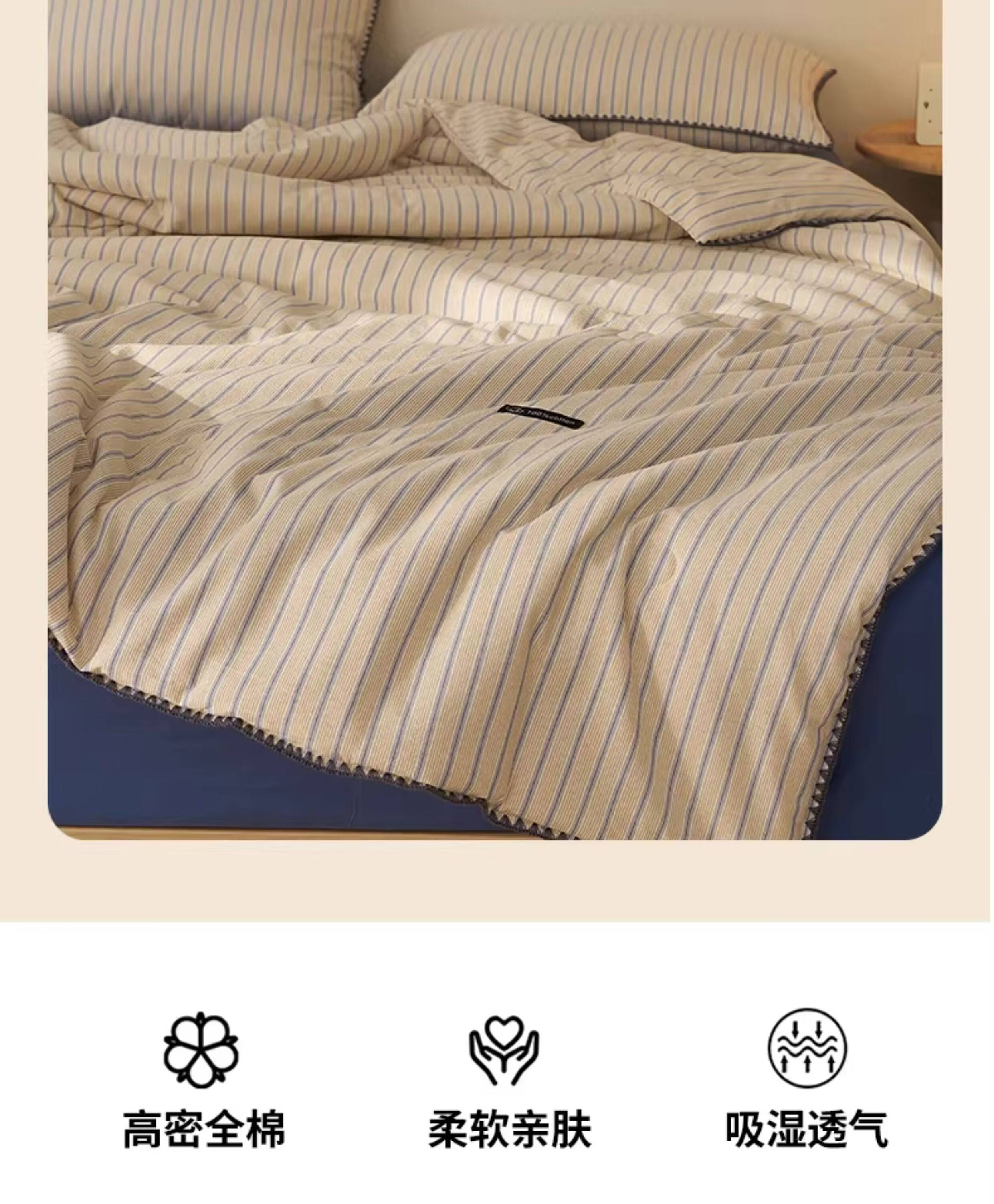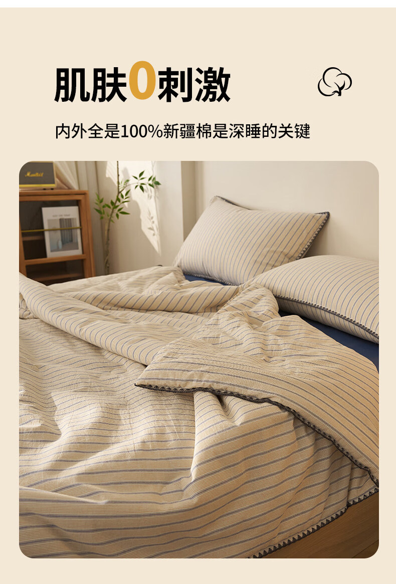 猫人(MiiOW)A类里外全棉夏被新疆棉花夏凉被四件套单双人可机洗空调被宿舍 小灰格 【100%优质棉花填充】 1.5m夏被四件套【150*200cm单夏被+床单+枕套*2】