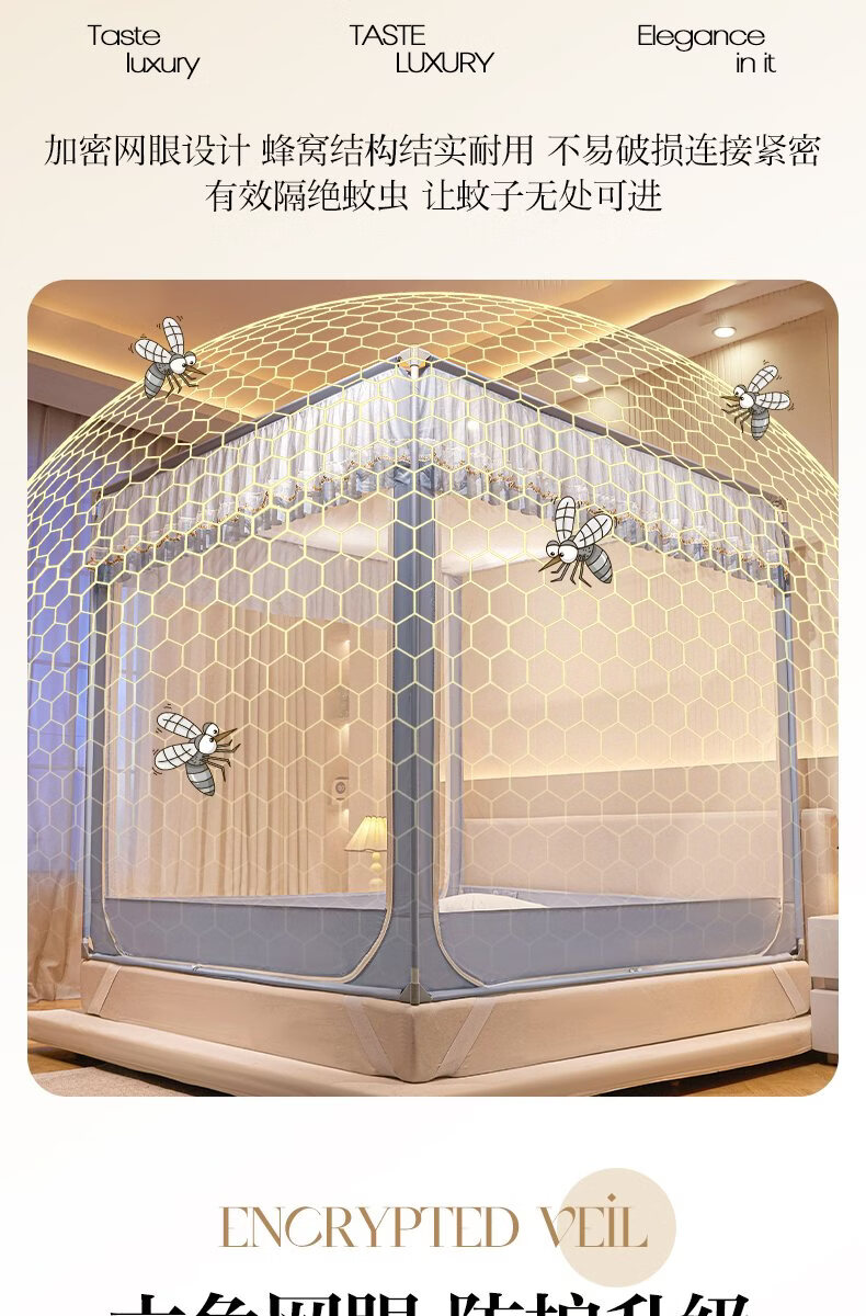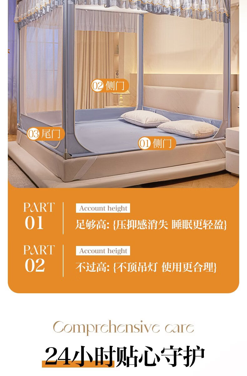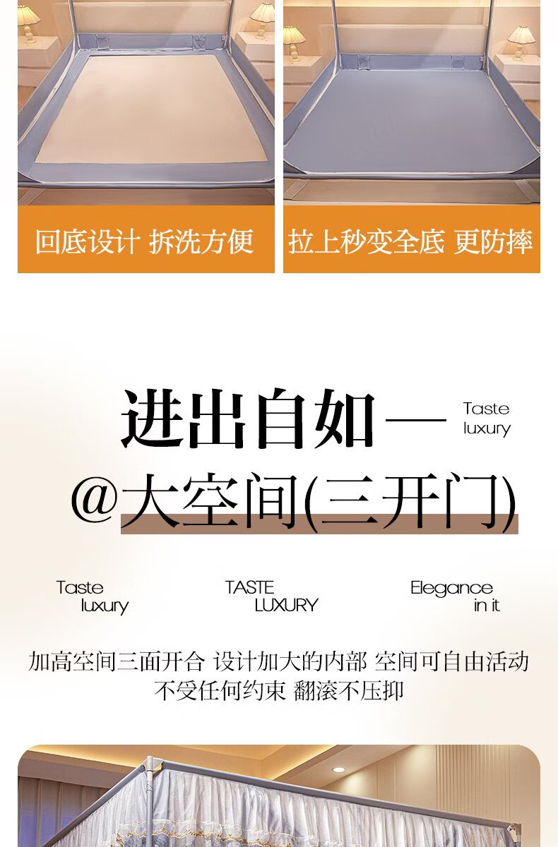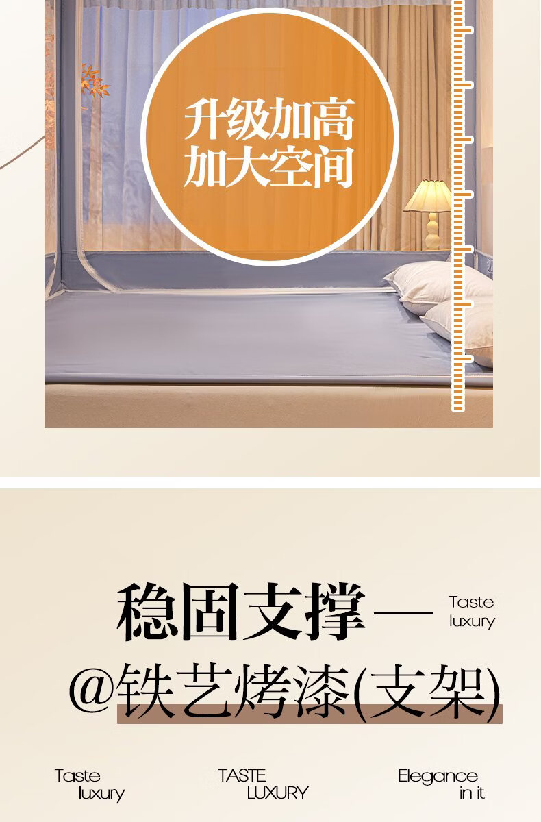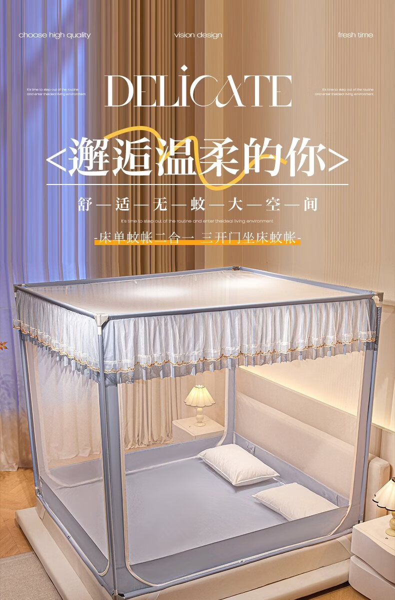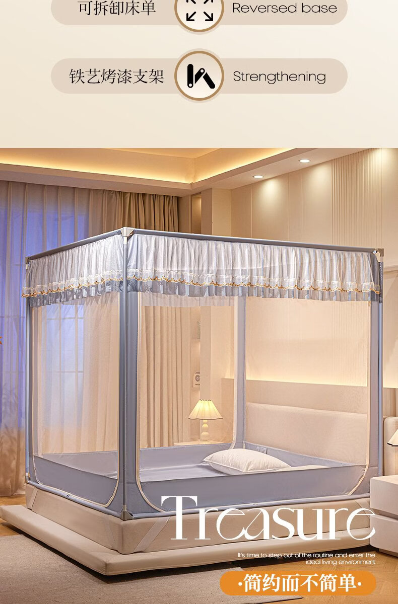 无印良品家用蚊帐防摔婴儿蒙古包帐篷卧室大床三开门免安装一体式防蚊蚊帐 抹茶绿【回底设计 A类帐纱】 180cm*200cm*170cm 【自连接支架】