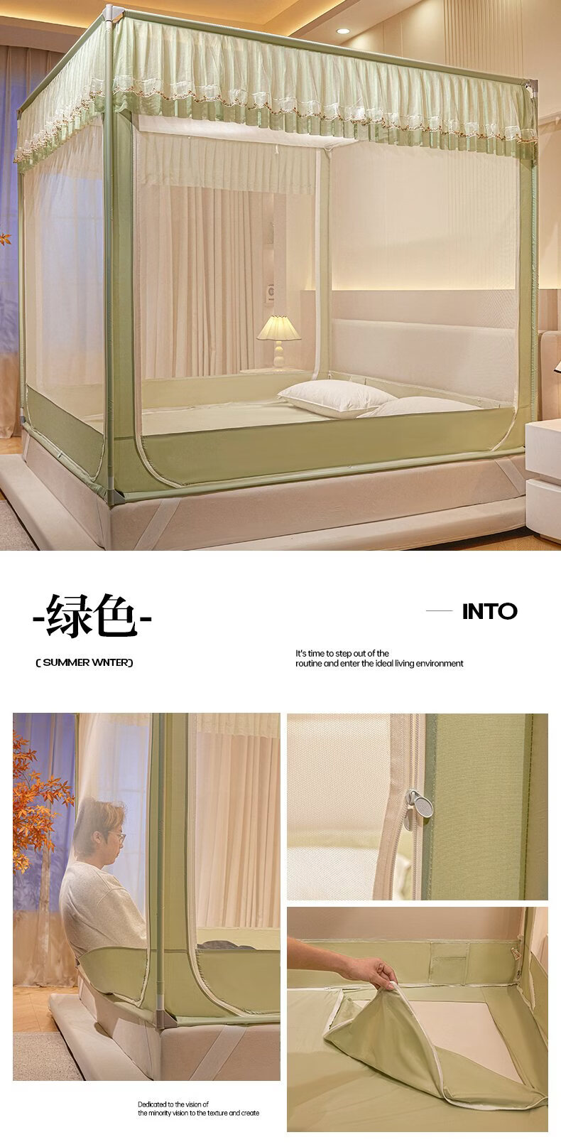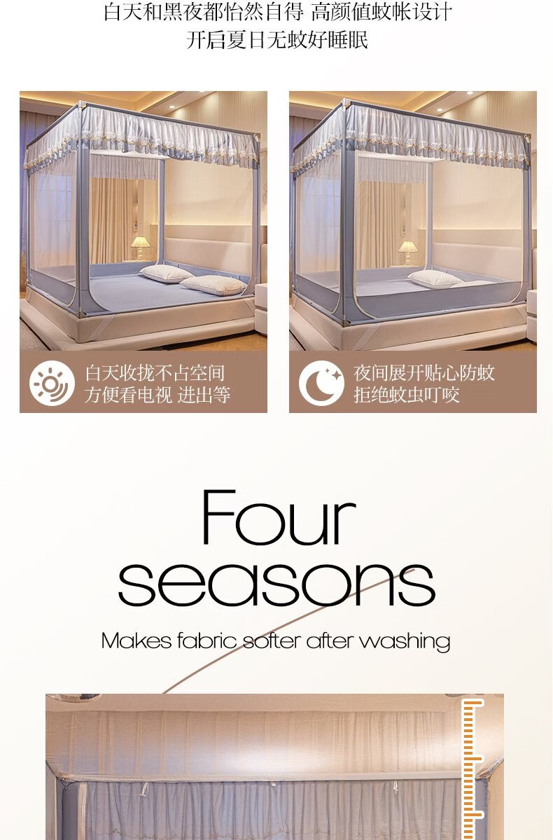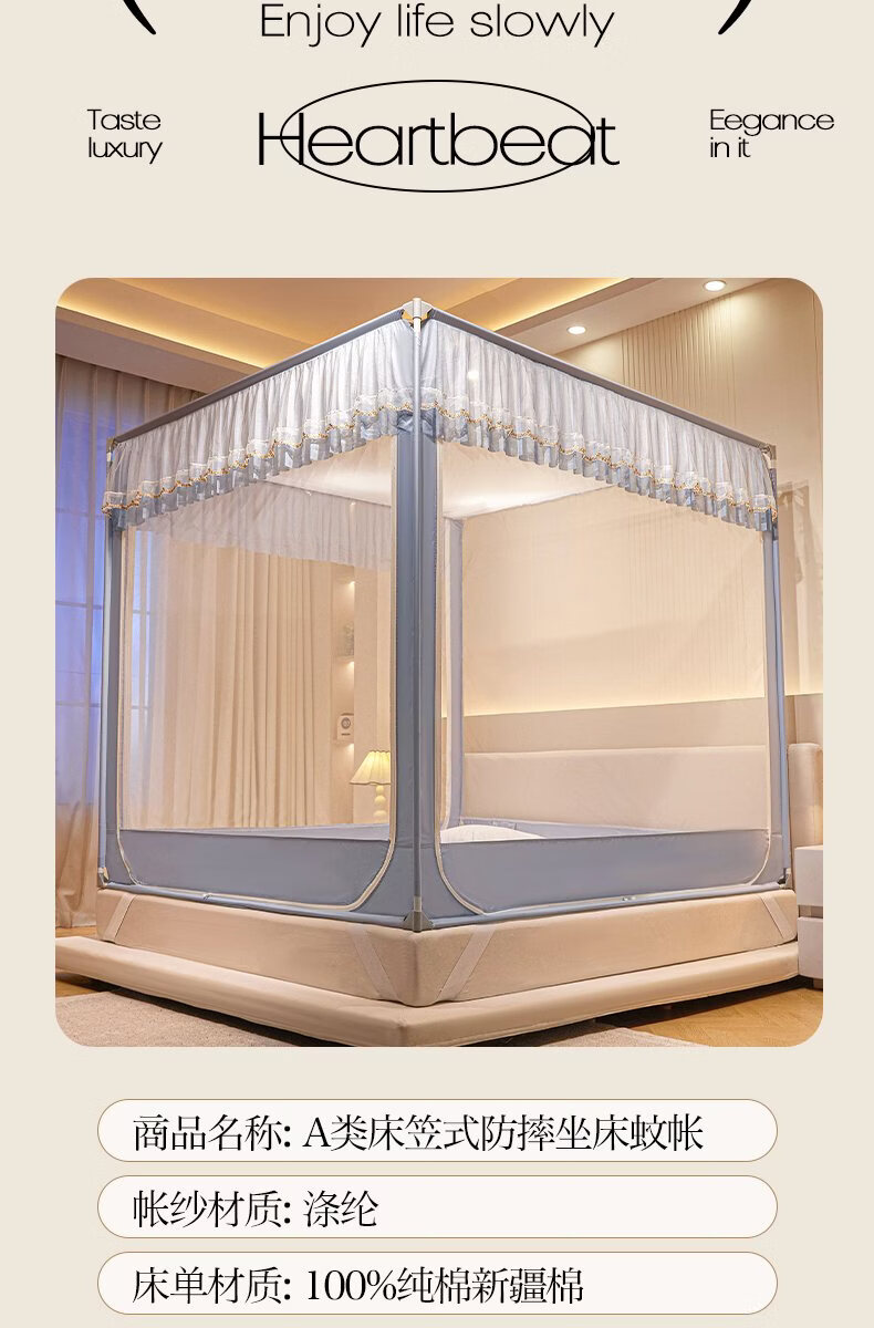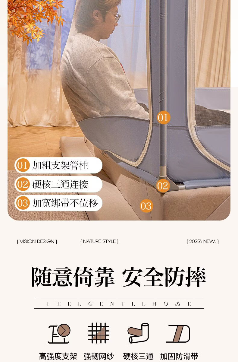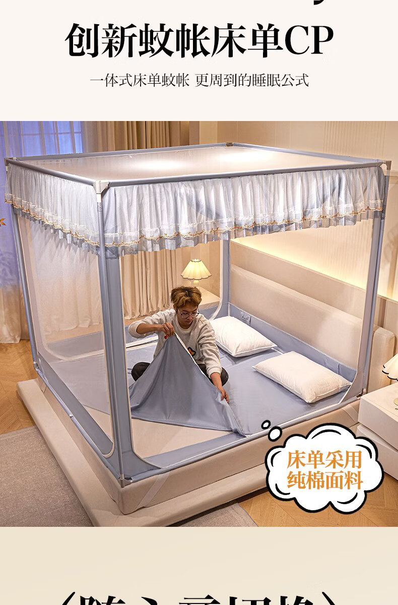无印良品家用蚊帐防摔婴儿蒙古包帐篷卧室大床三开门免安装一体式防蚊蚊帐 抹茶绿【回底设计 A类帐纱】 180cm*200cm*170cm 【自连接支架】