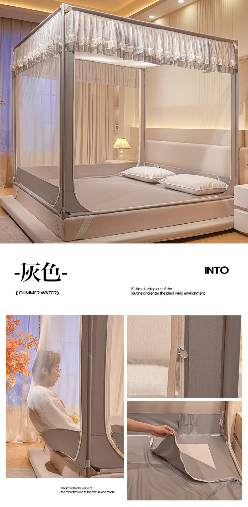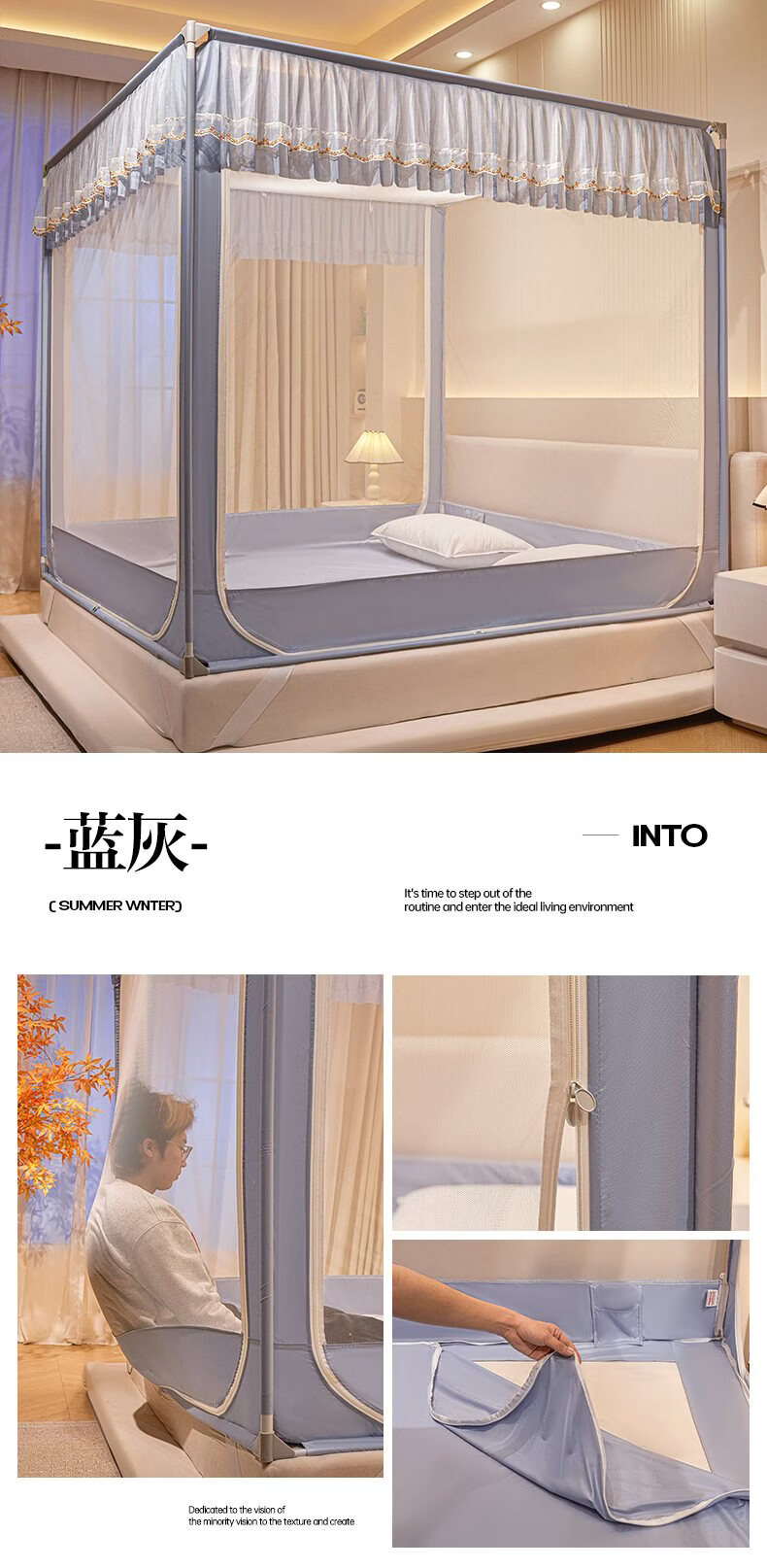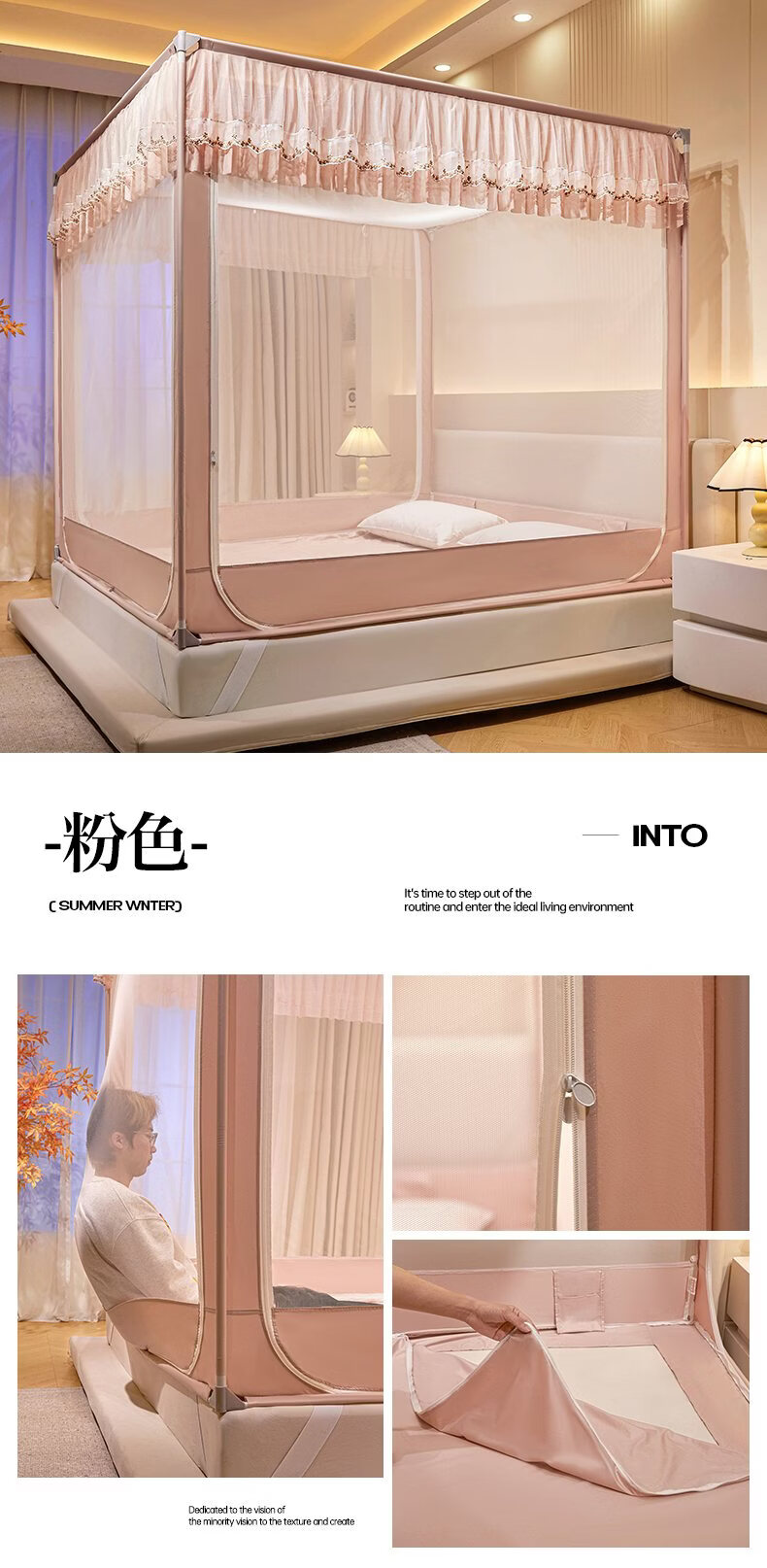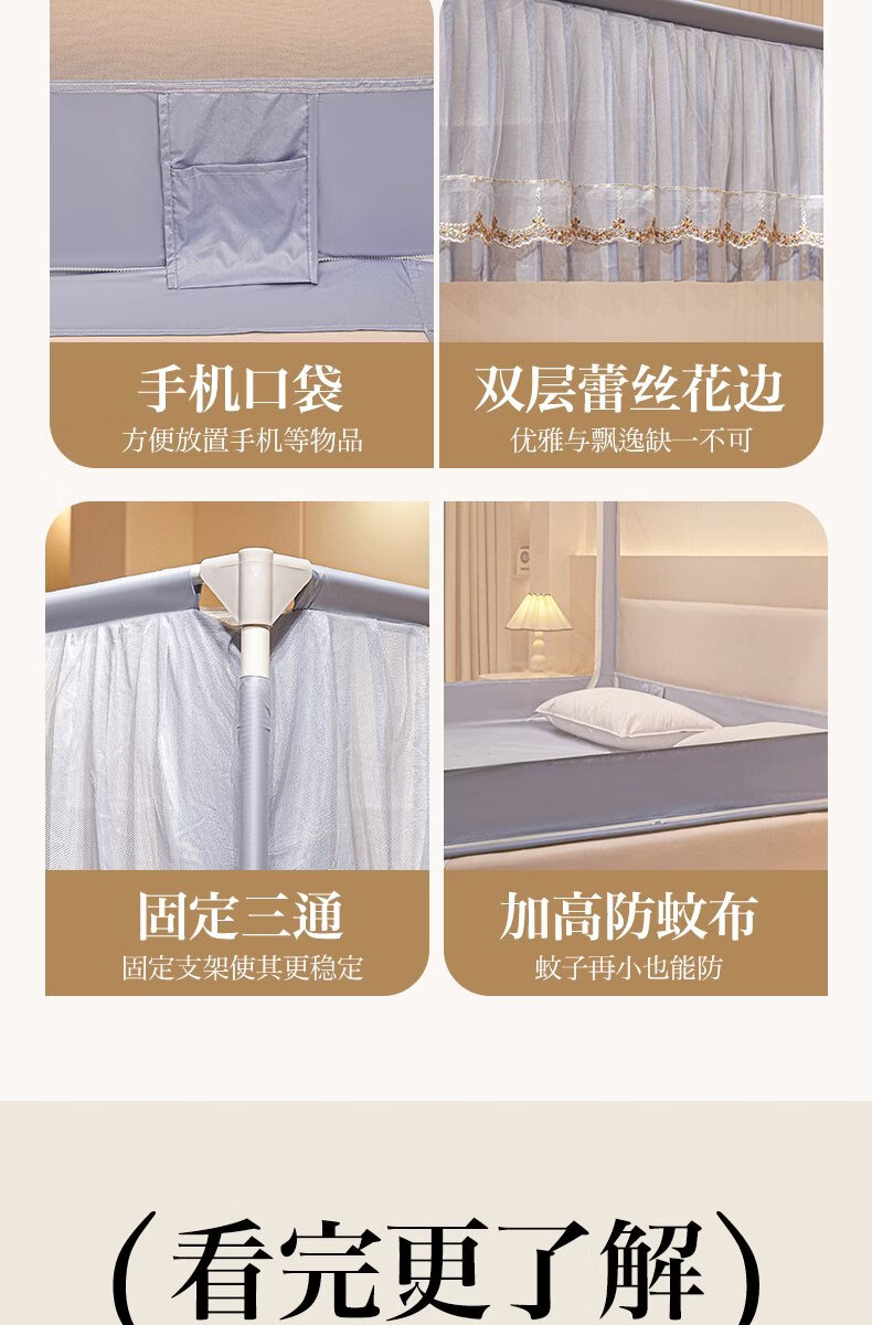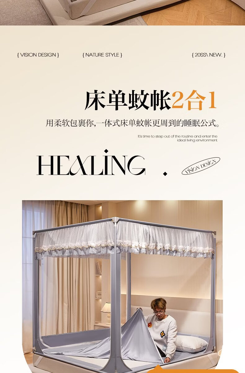 无印良品家用蚊帐防摔婴儿蒙古包帐篷卧室大床三开门免安装一体式防蚊蚊帐 抹茶绿【回底设计 A类帐纱】 180cm*200cm*170cm 【自连接支架】