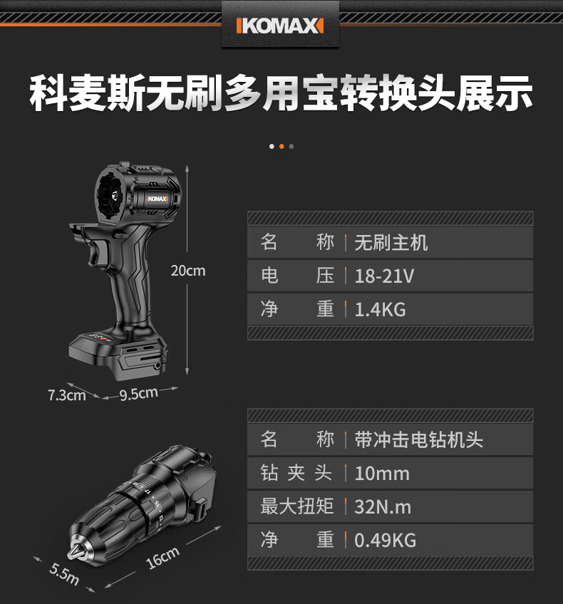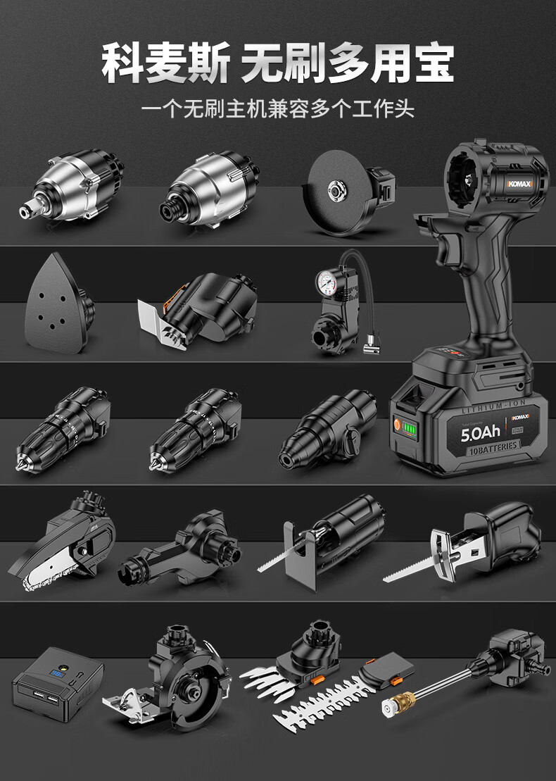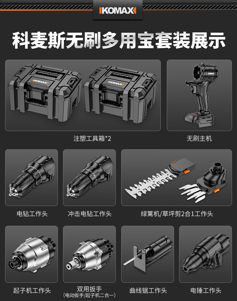 科麦斯(KOMAX)无刷电动转换头多用宝多功能锂电钻充电式电锤冲击钻电锯套装 洗车机工作头