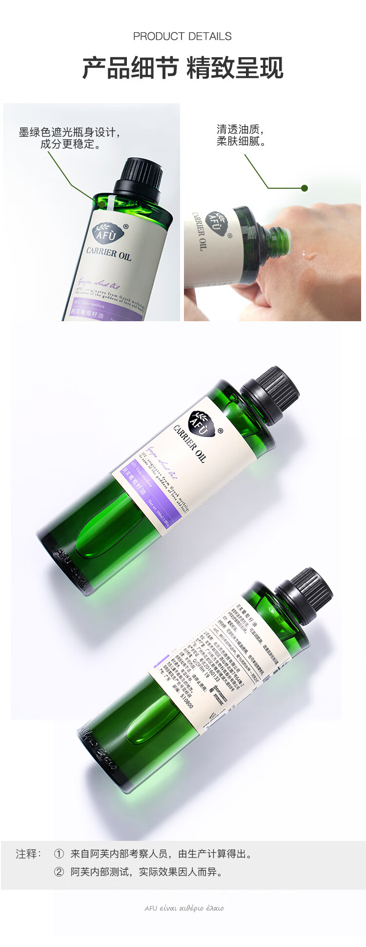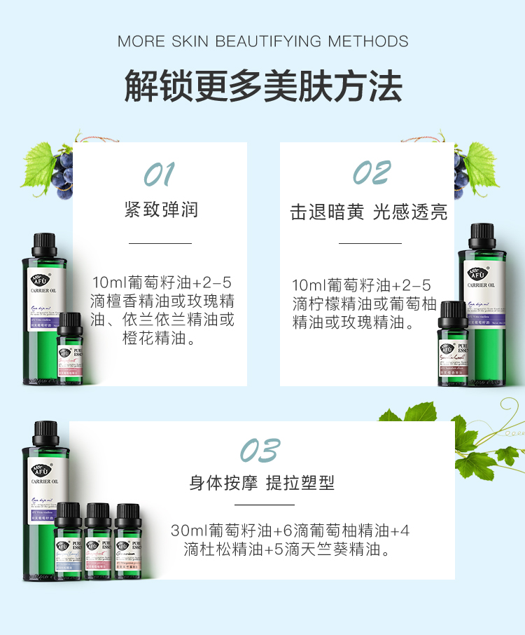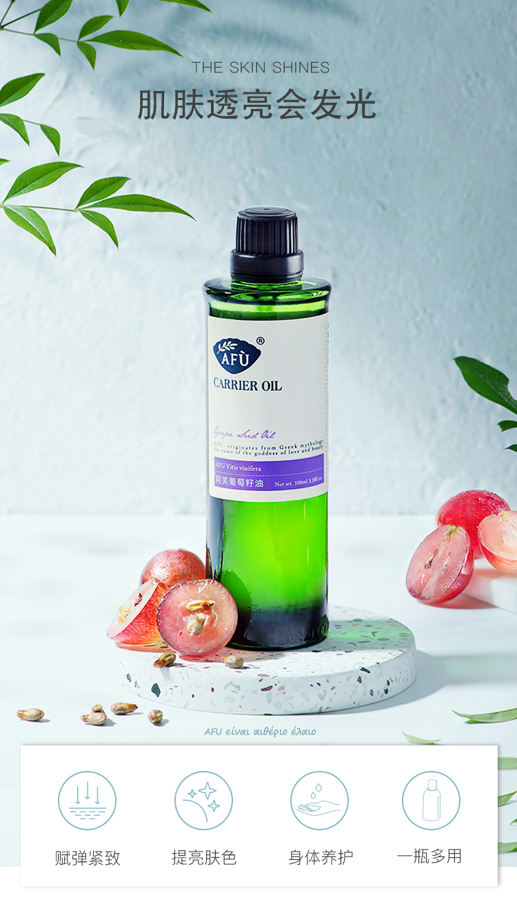阿芙(AFU)葡萄籽油100ml 提拉紧致面部精华油身体按摩