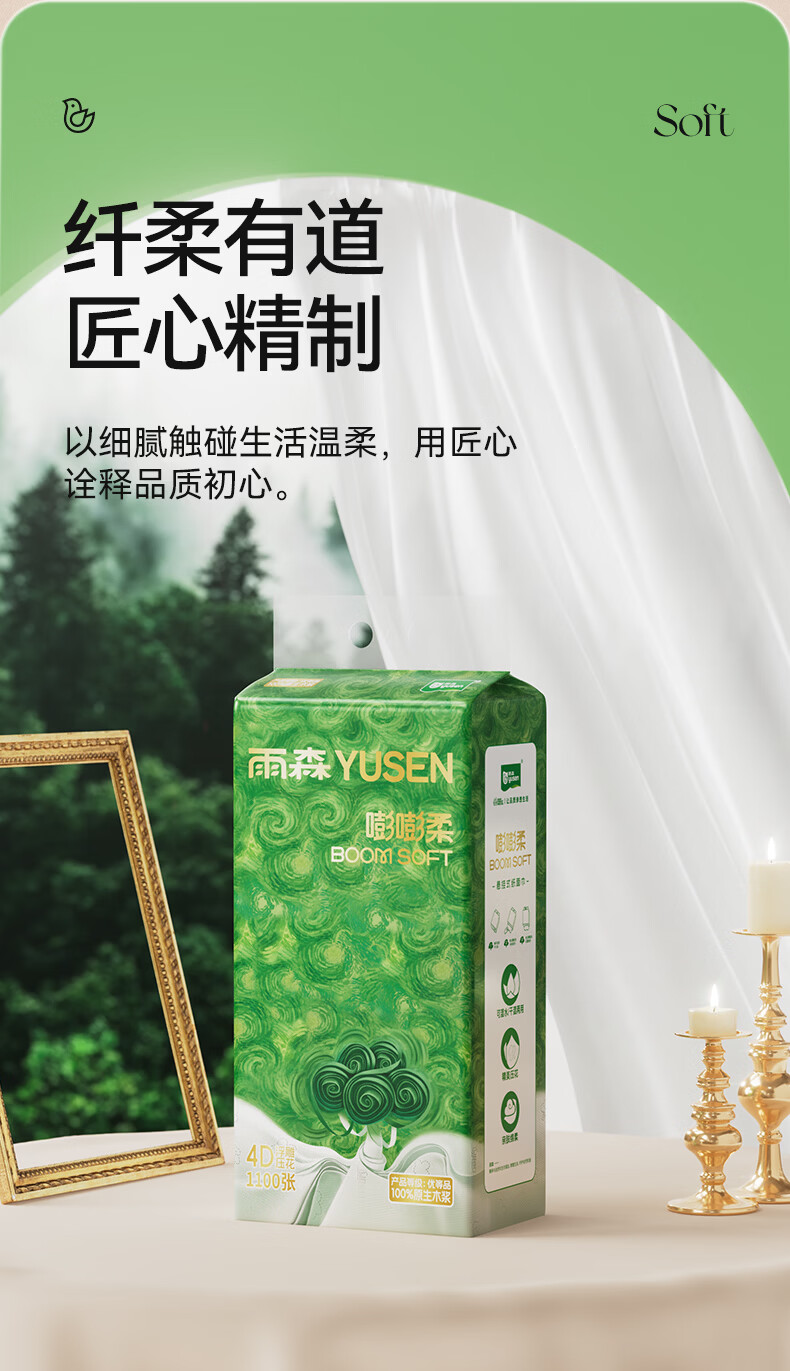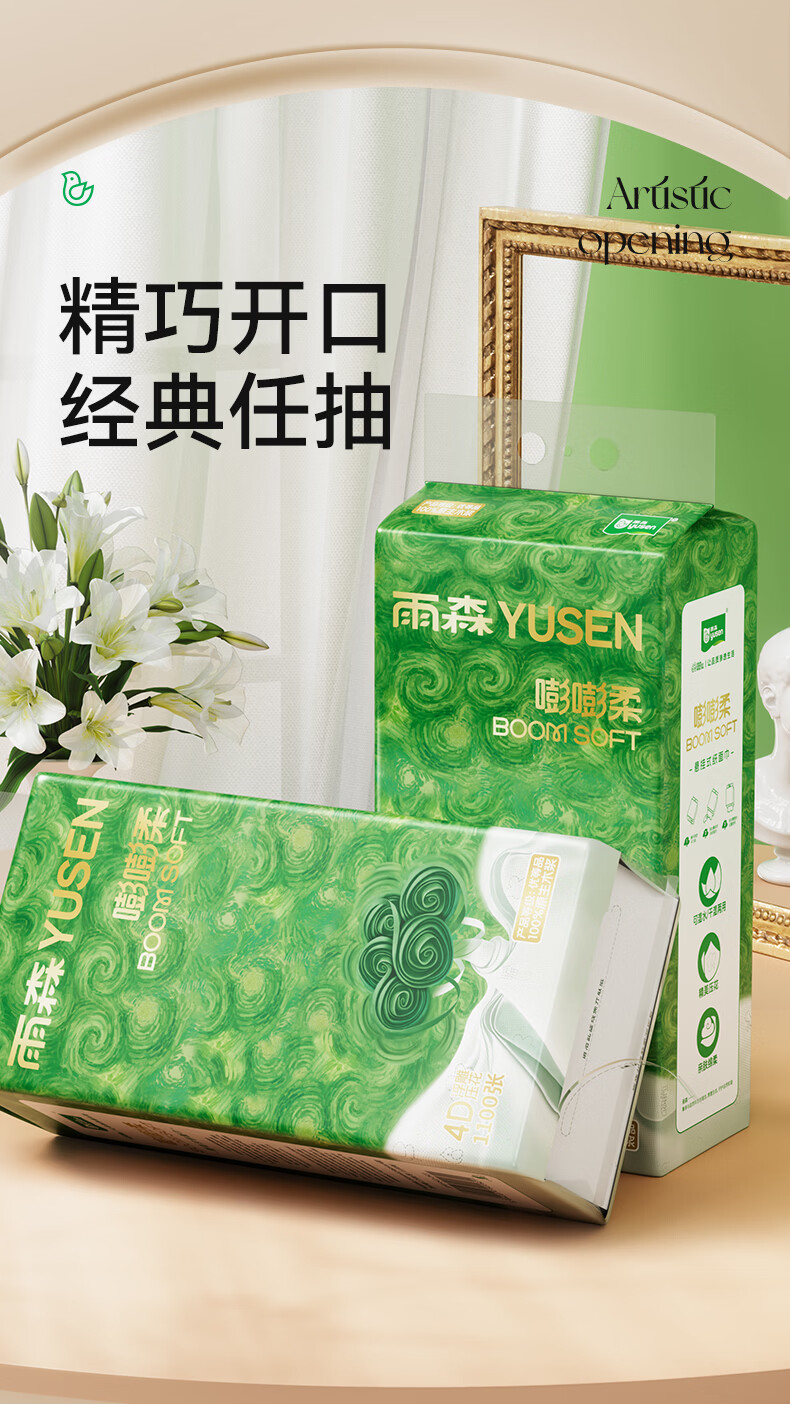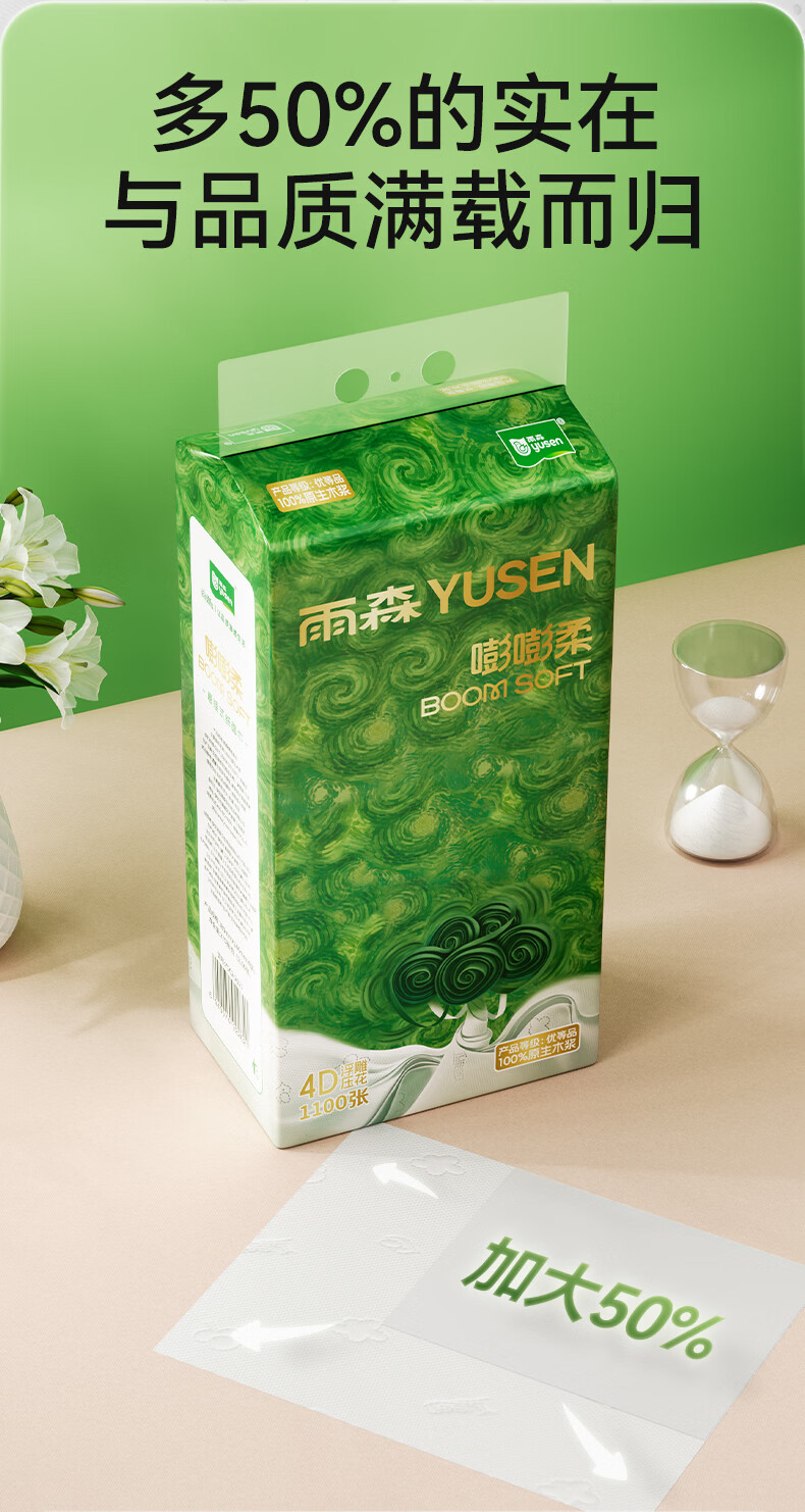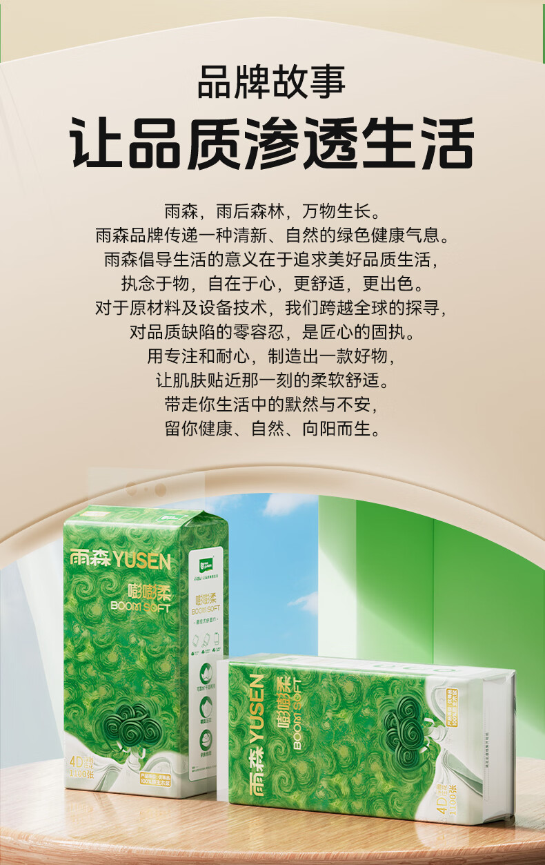 雨森悬挂式抽纸4层加厚家用纸巾100%原生木浆大包下拉抽挂式餐厅纸 1100张*10提