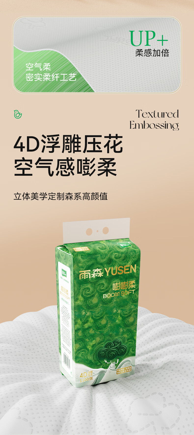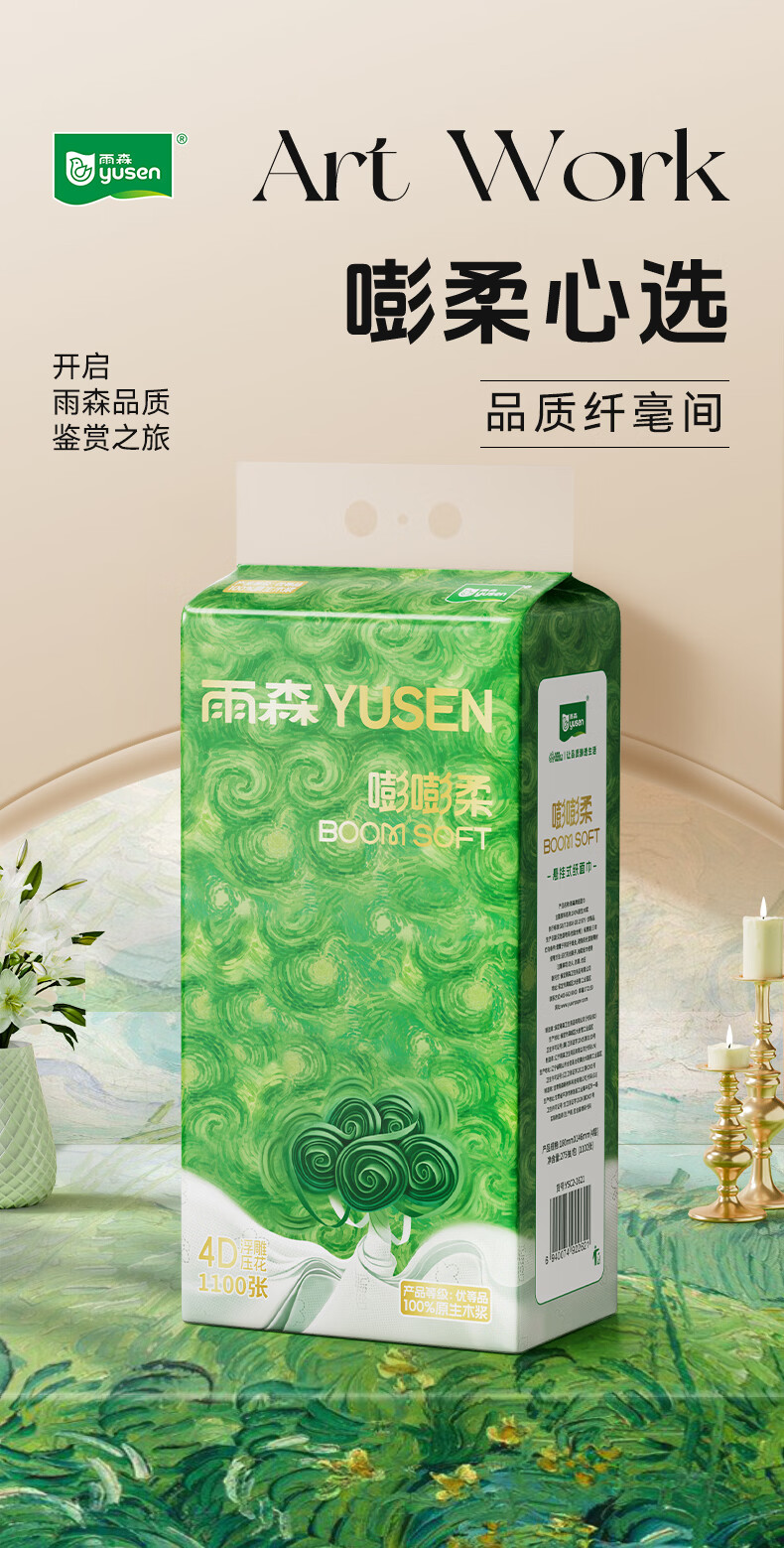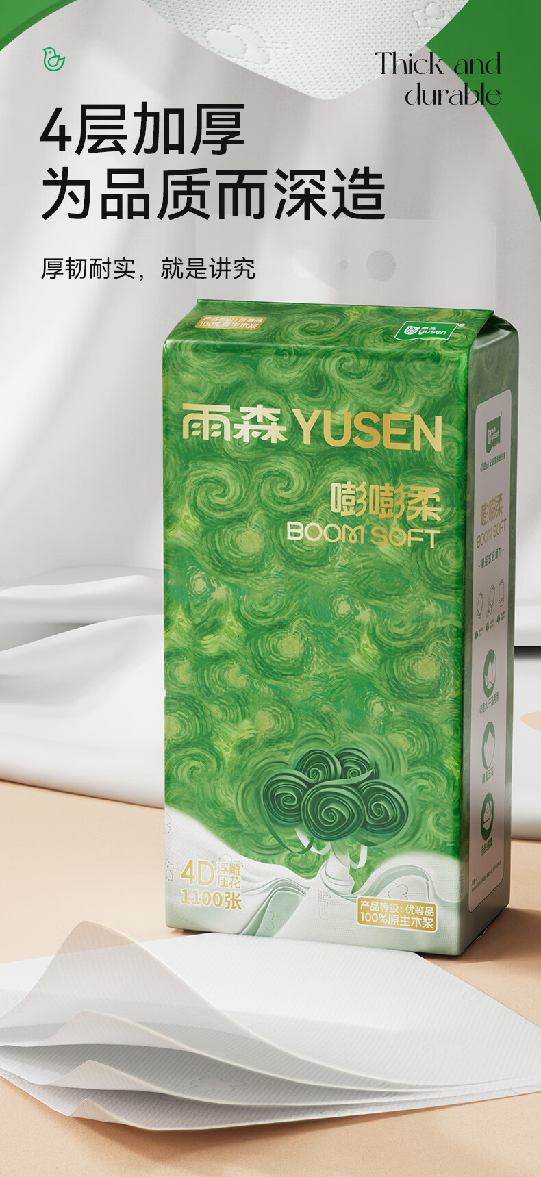 雨森悬挂式抽纸4层加厚家用纸巾100%原生木浆大包下拉抽挂式餐厅纸 1100张*10提