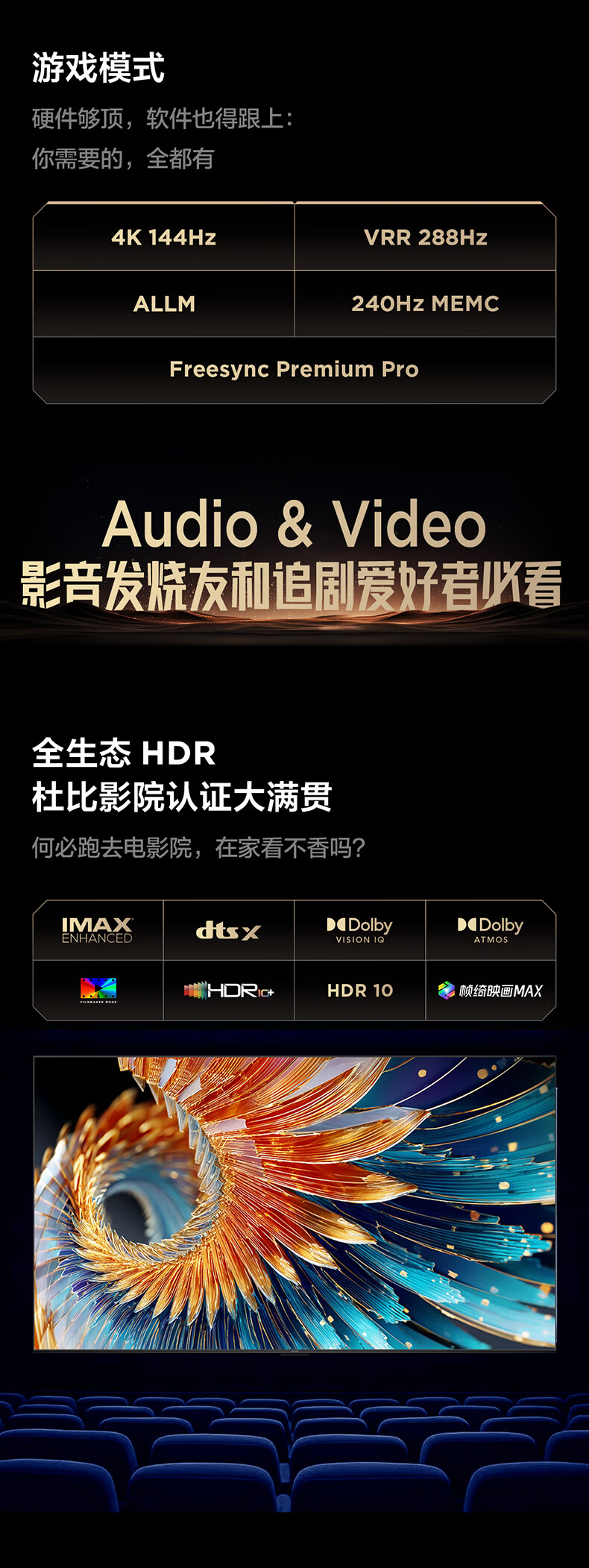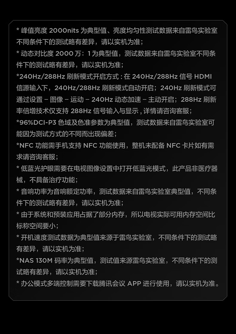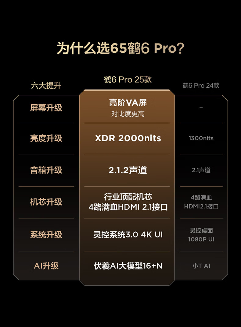FFALCON雷鸟电视 65鹤6 PRO 25款 65英寸 QD-MiniLED 高阶VA 家电国家补贴 电竞游戏电视65S595C Pro