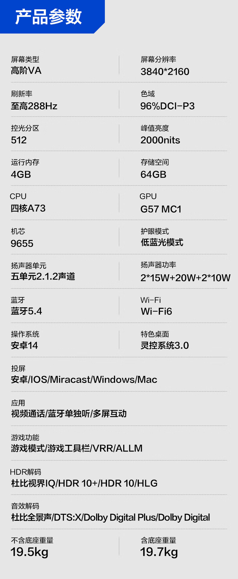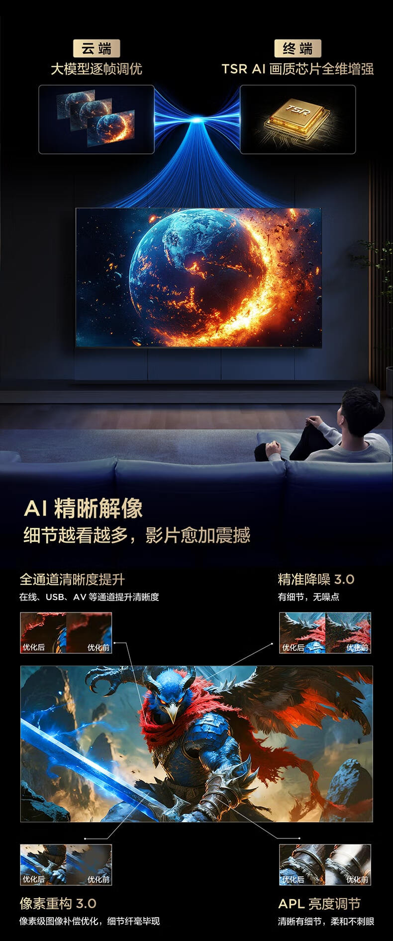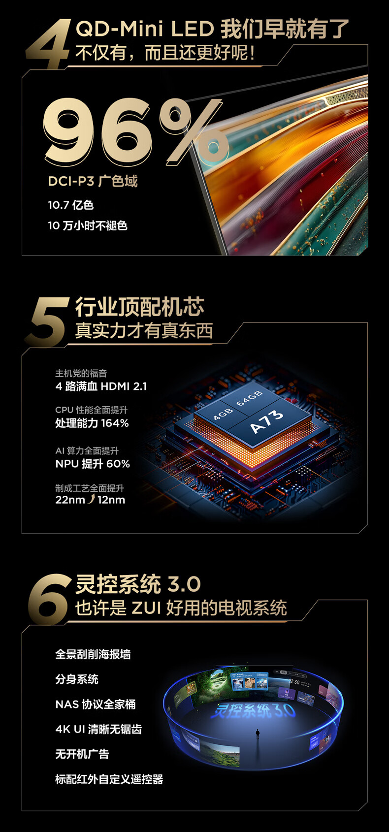 FFALCON雷鸟电视 65鹤6 PRO 25款 65英寸 QD-MiniLED 高阶VA 家电国家补贴 电竞游戏电视65S595C Pro