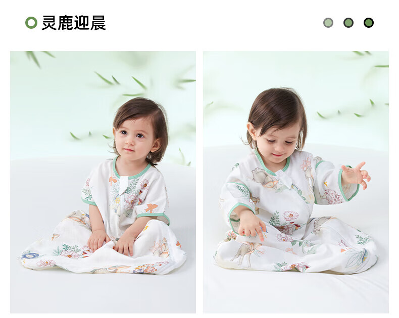 贝肽斯儿童睡袋夏季竹棉纱布宝宝睡衣一体婴儿防踢被睡袋前4后2灵鹿 L