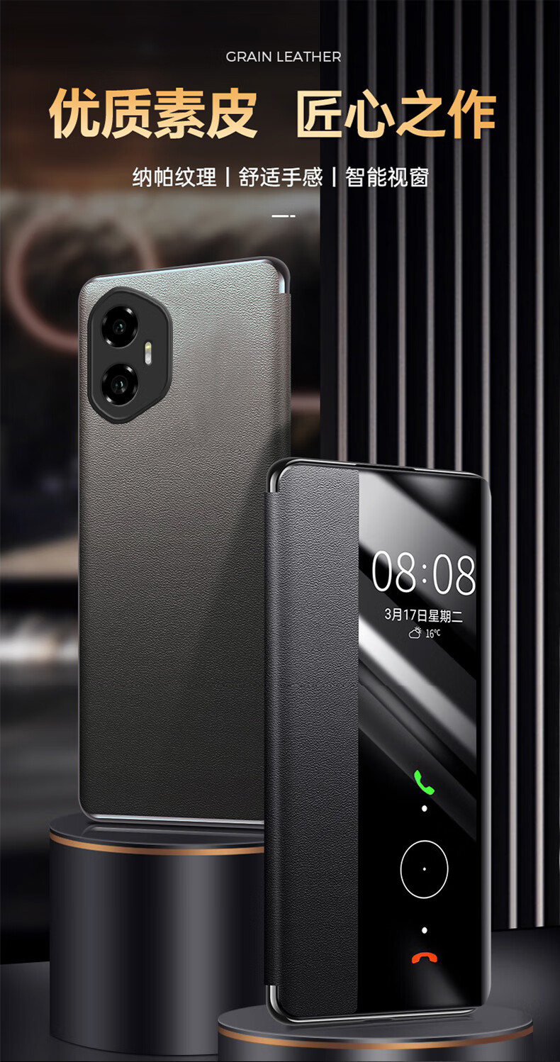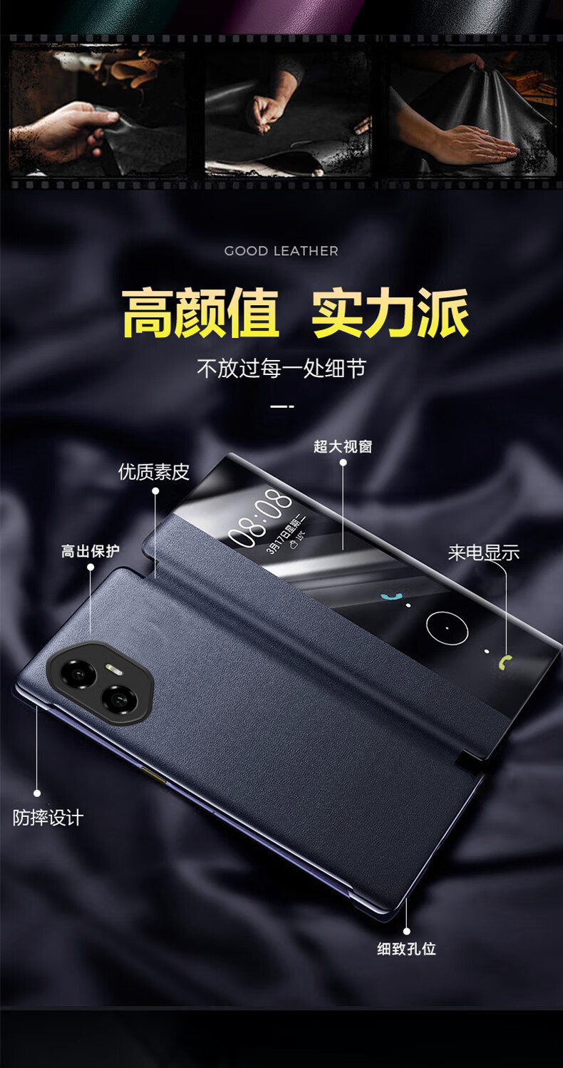 聚硕头层牛皮适用vivoxFold5手机壳磁吸支架超薄防摔新款中轴后壳 经典黑中轴后壳 vivo x fold5