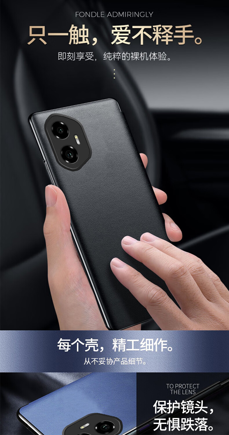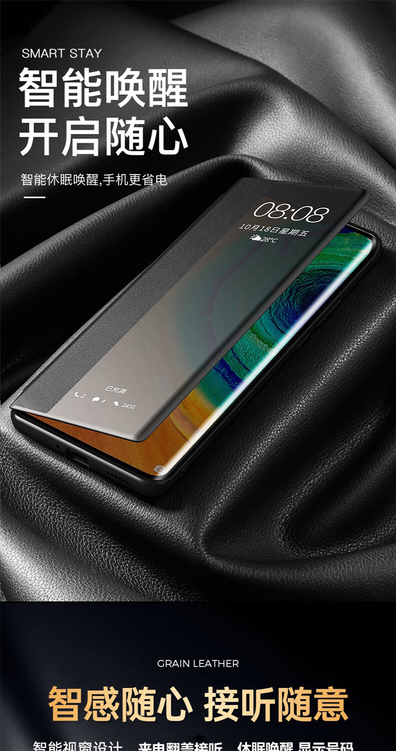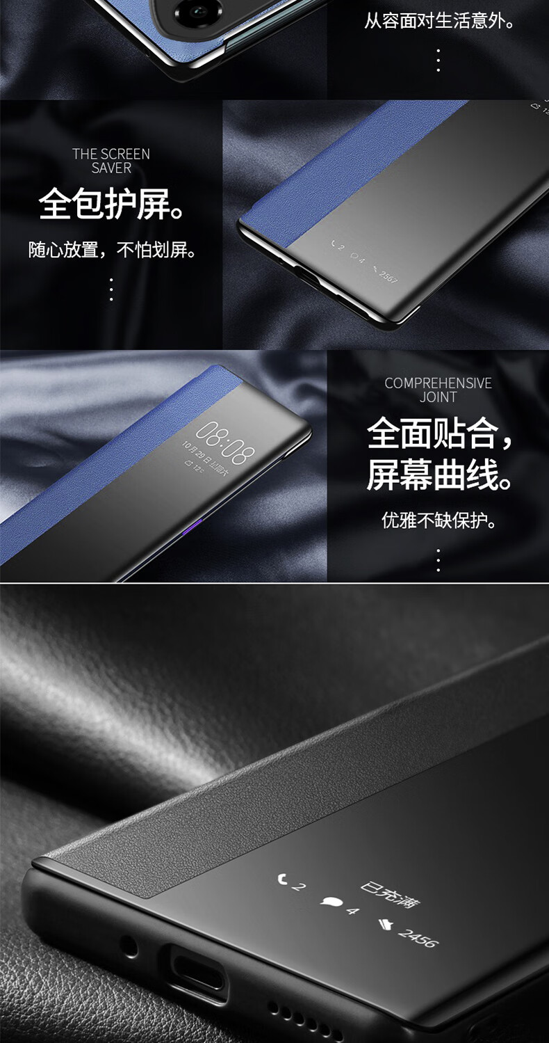 辛程优 适用于荣耀300Ultra手机壳皮套翻盖式智能视窗素皮保护套外壳防摔软硅胶全包 【静夜黑】高档素皮套+配钢化膜+镜头膜 荣耀300 Ultra