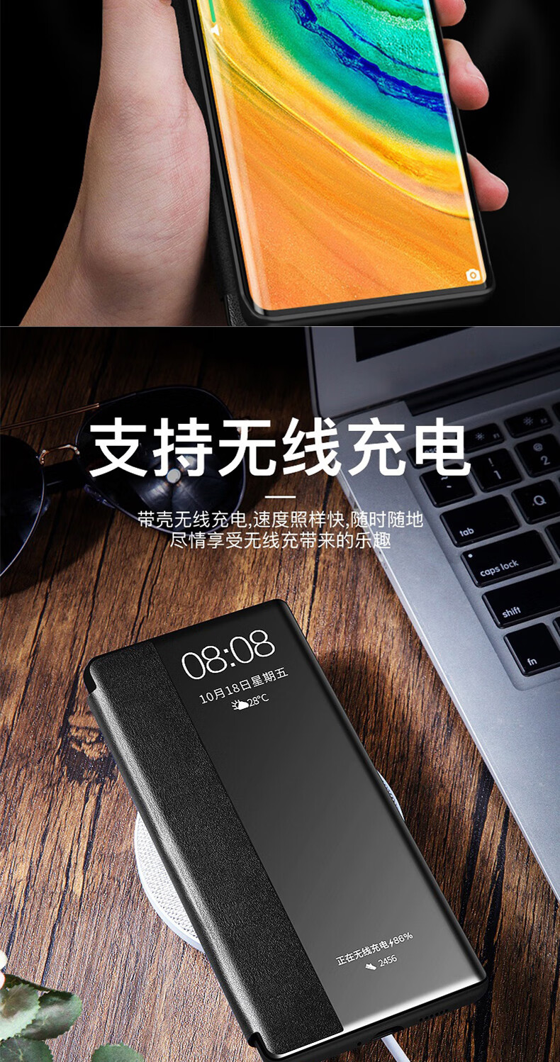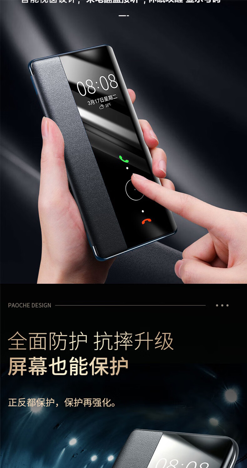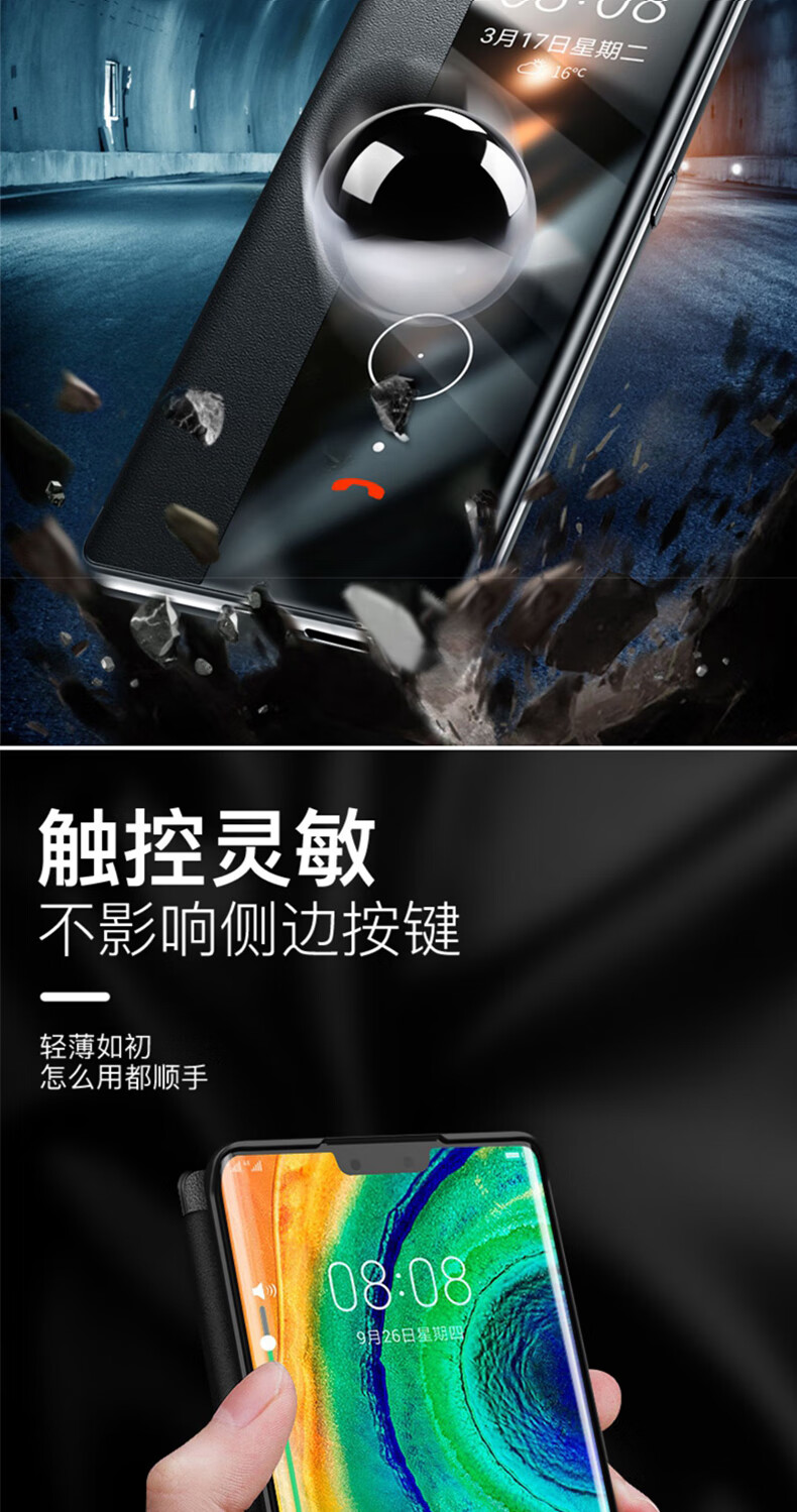 辛程优 适用于荣耀300Ultra手机壳皮套翻盖式智能视窗素皮保护套外壳防摔软硅胶全包 【静夜黑】高档素皮套+配钢化膜+镜头膜 荣耀300 Ultra