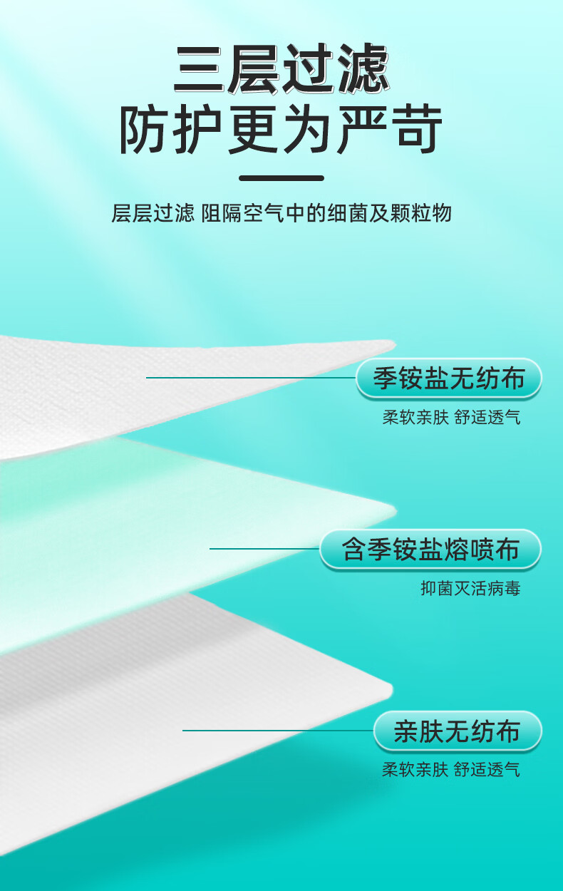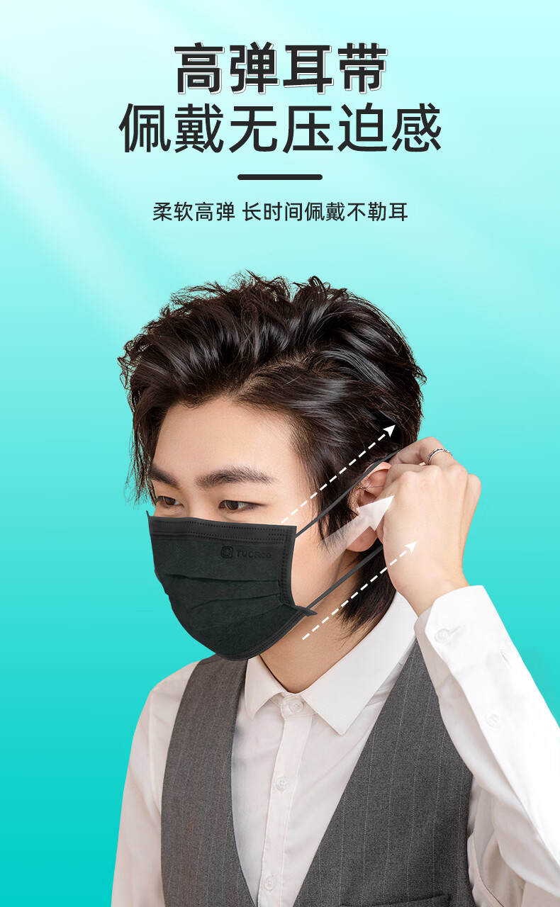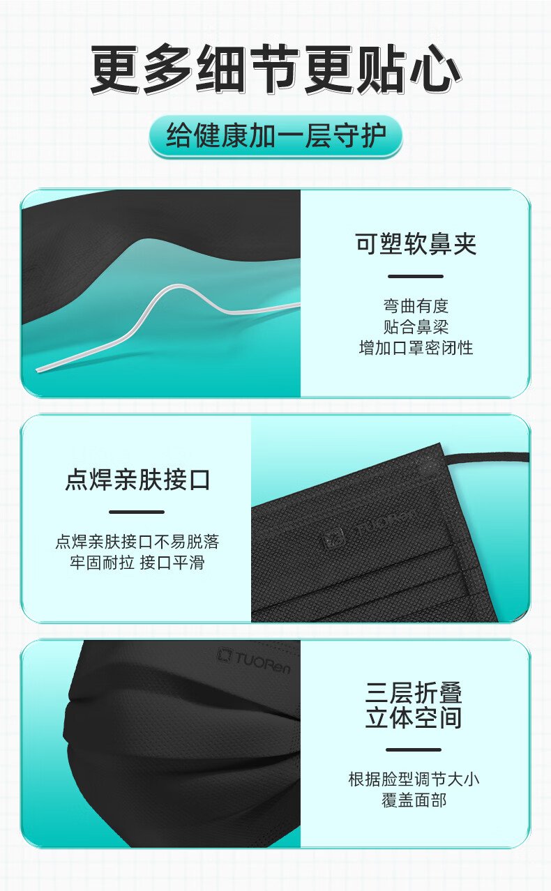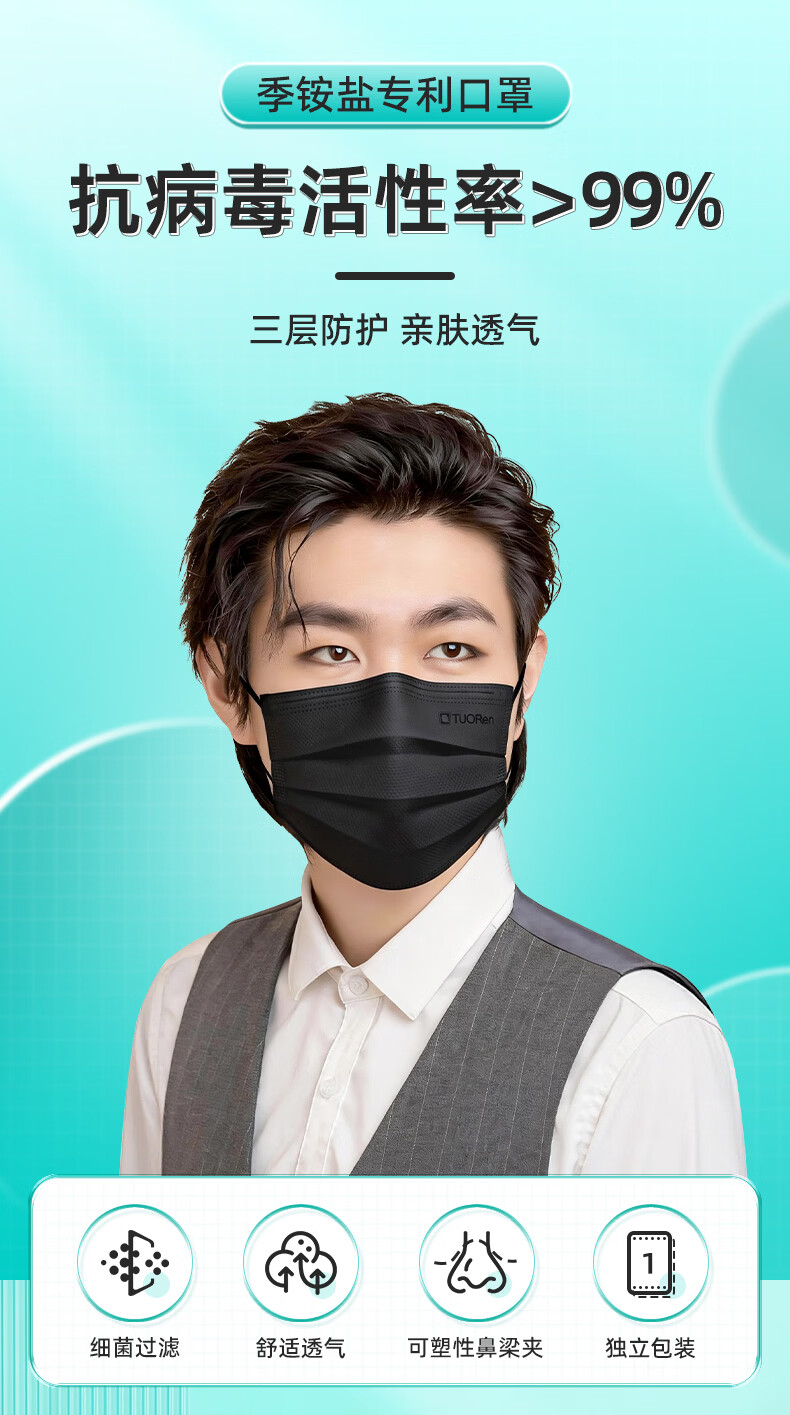 驼人康君季铵盐黑色一次性口罩男女士成人情侣高颜值冬季防风防寒独立包装 【买1盒送1盒共100支】成人平面黑色