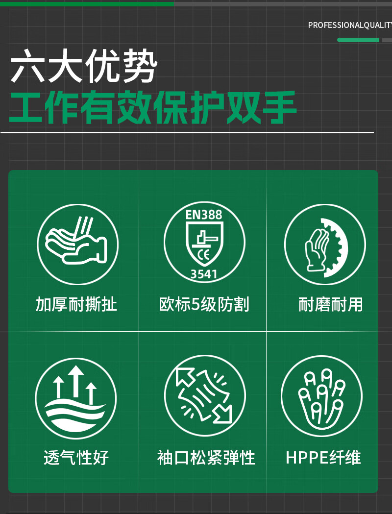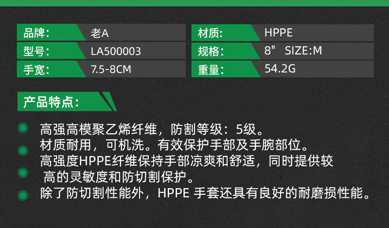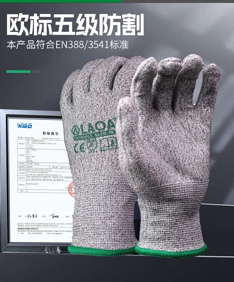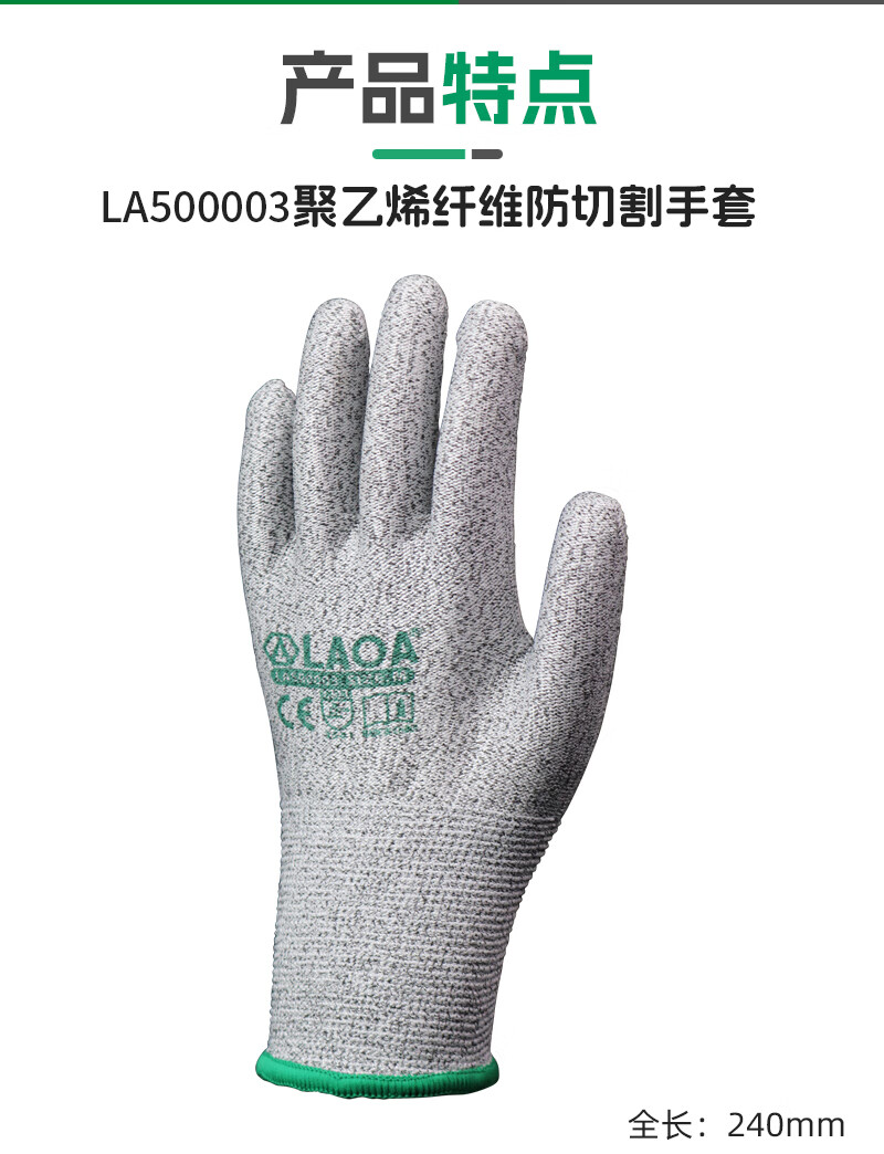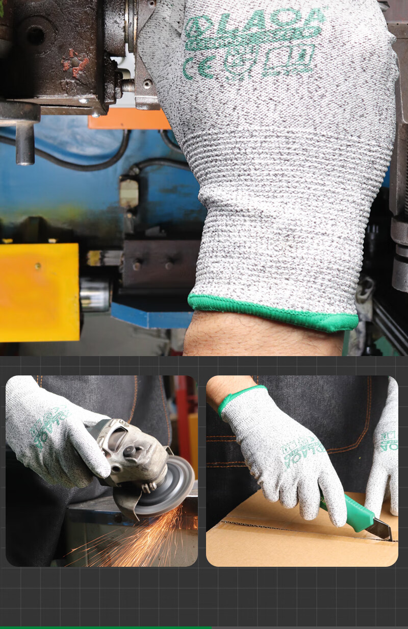 LAOA防割手套劳保5级防耐磨手套切割 木工防刺防扎防割伤防护LA500003 13针HPPE防切割PU涂掌防割手套