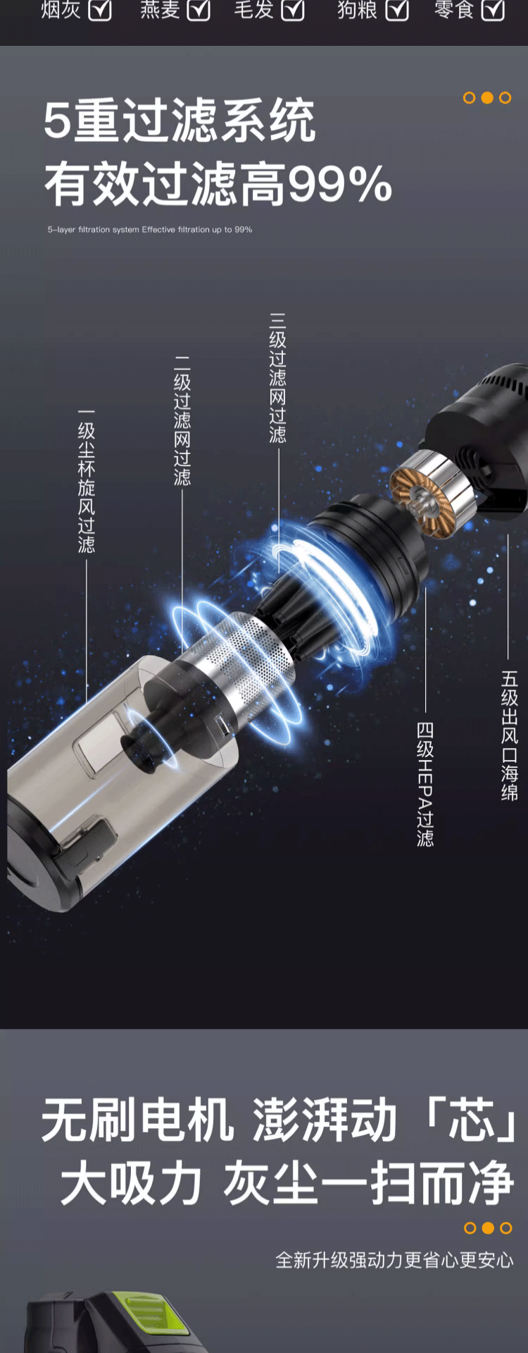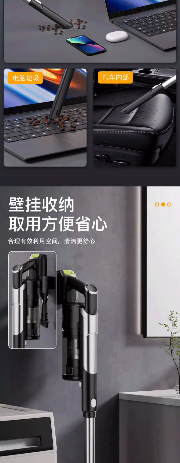 MOTOFEEL车载吸尘器车家两用猫毛地毯吸尘美缝大功率小体积轻巧便携吸拖一体 蓝色全屋清洁至尊版 - 42000Pa(1电池)