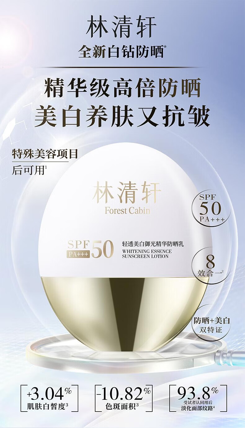 林清轩(Forest cabin)轻透美白御光精华防晒乳焕亮隔离紫外线SPF50PA+++防晒霜 【囤货推荐】买2得4(到手200g+2件礼)