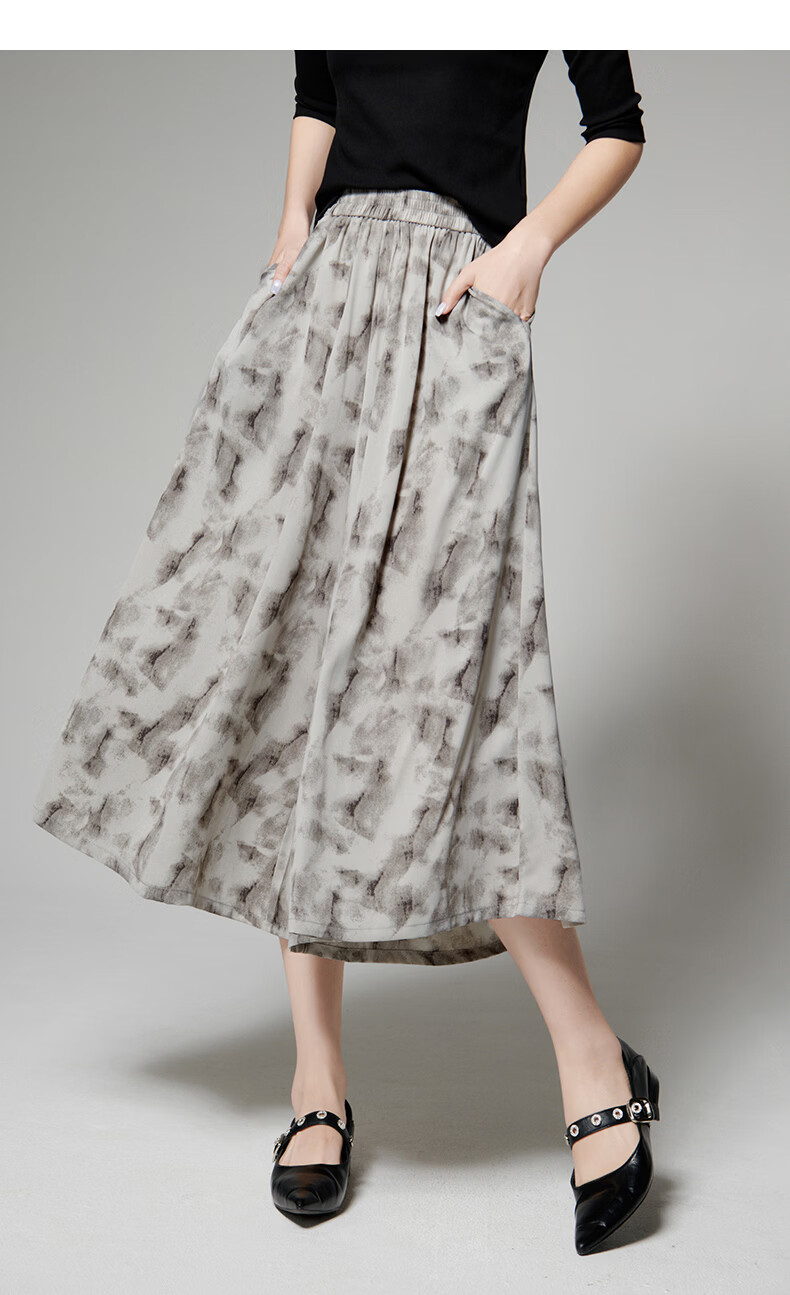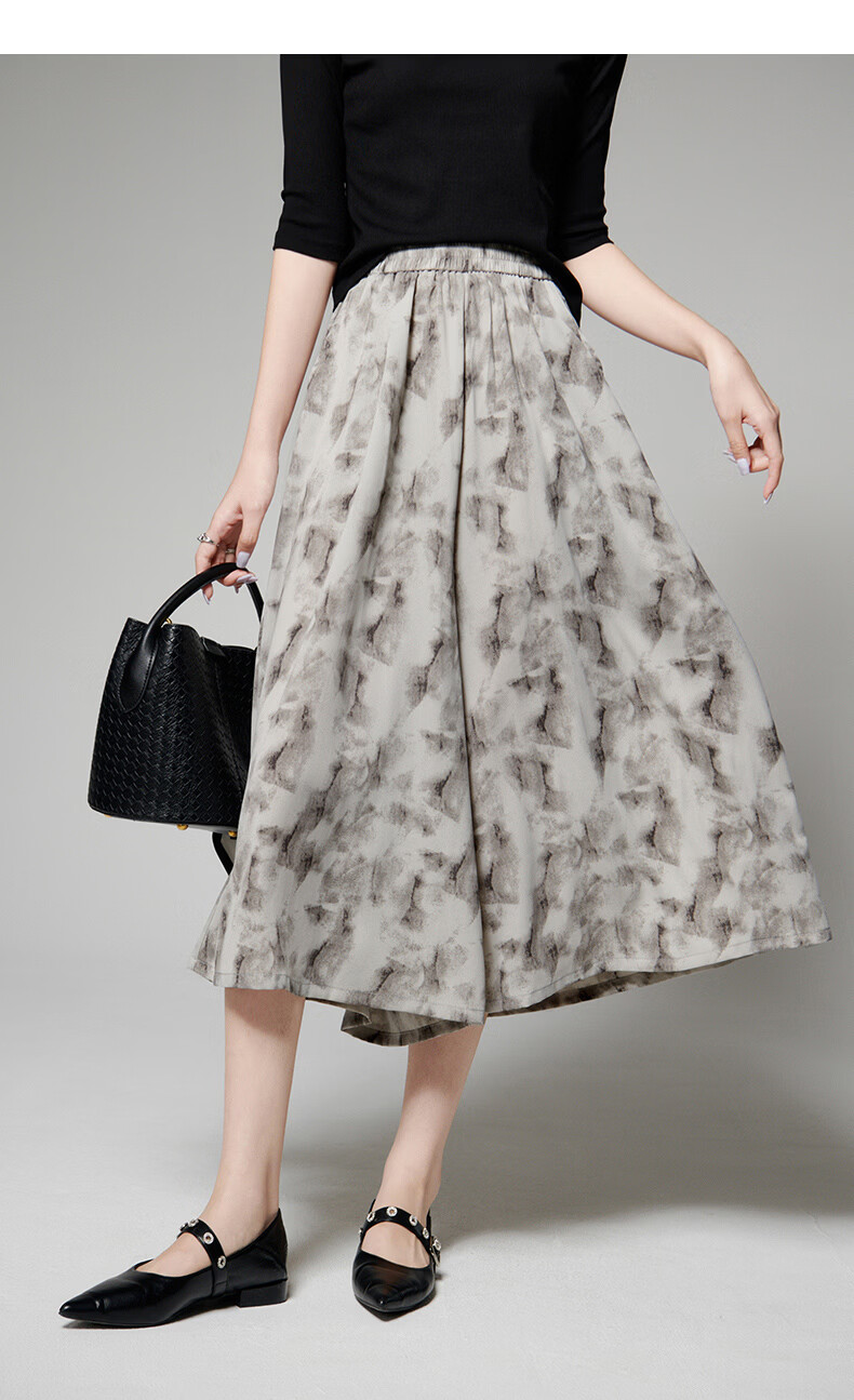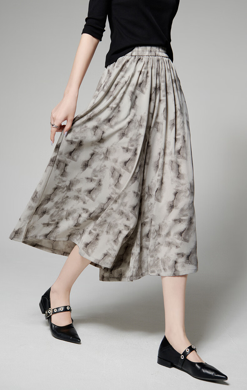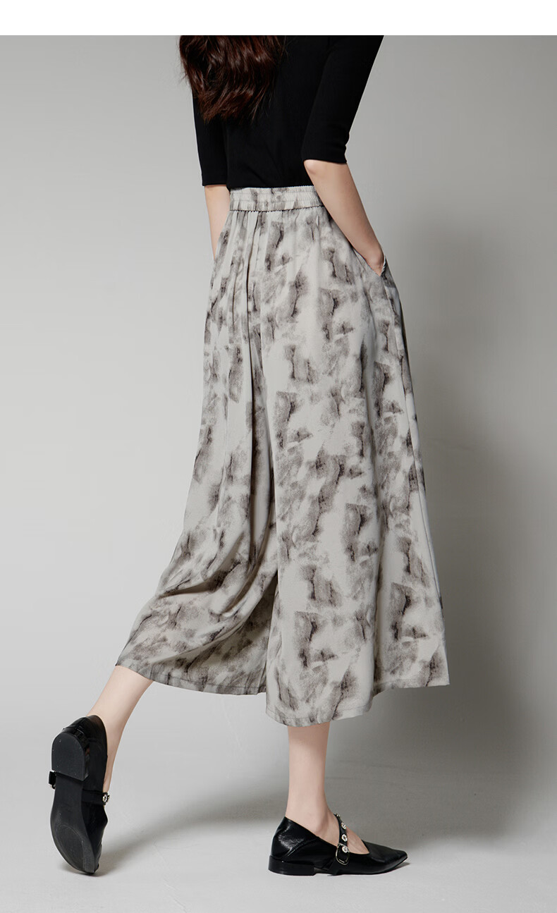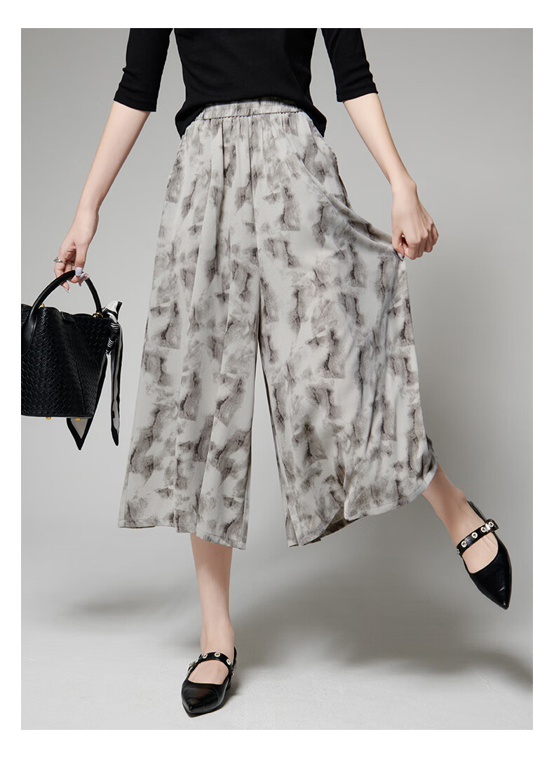 晚白【新品】2026年春款休闲高腰裤子利落显瘦雪纺印花阔腿裤女 花色 26